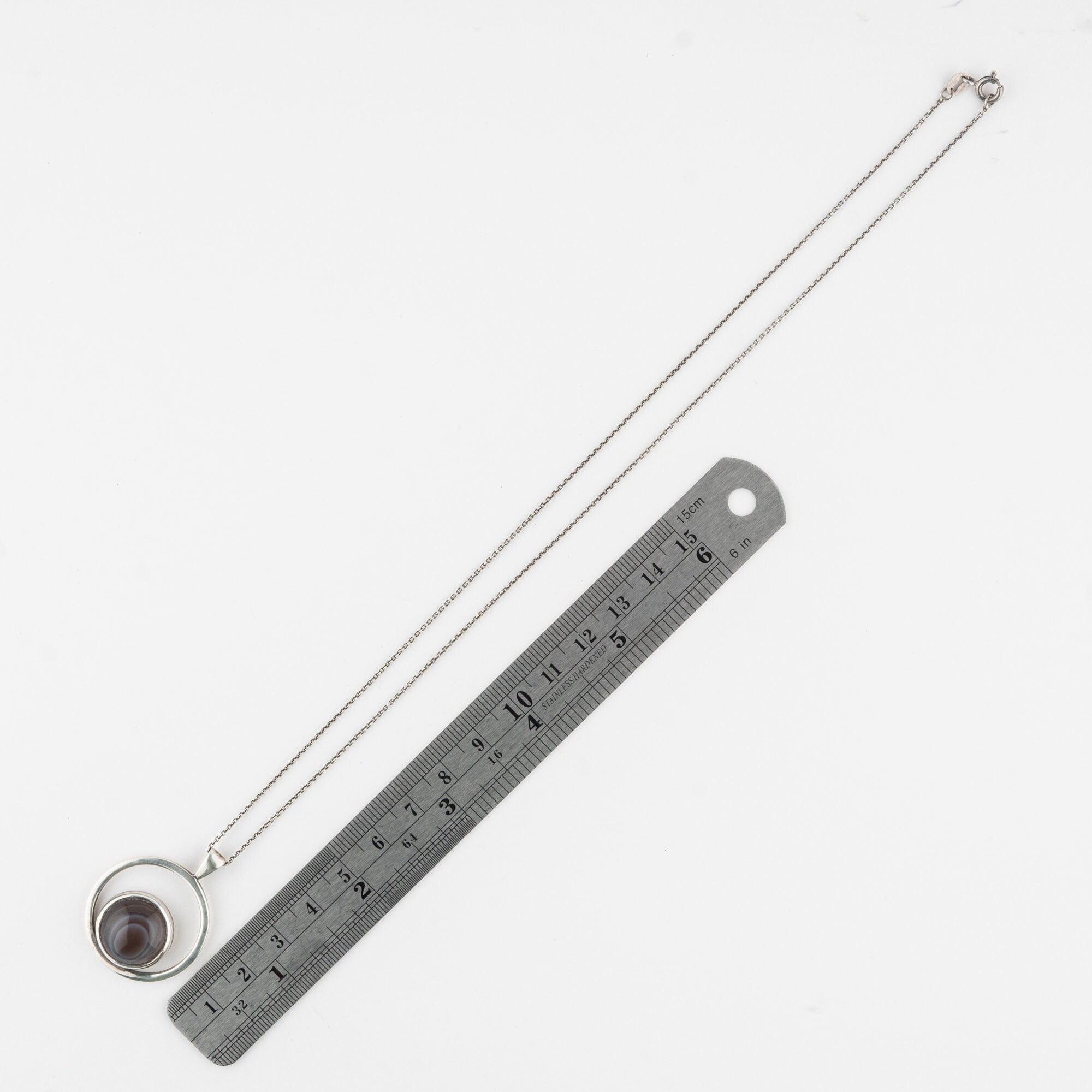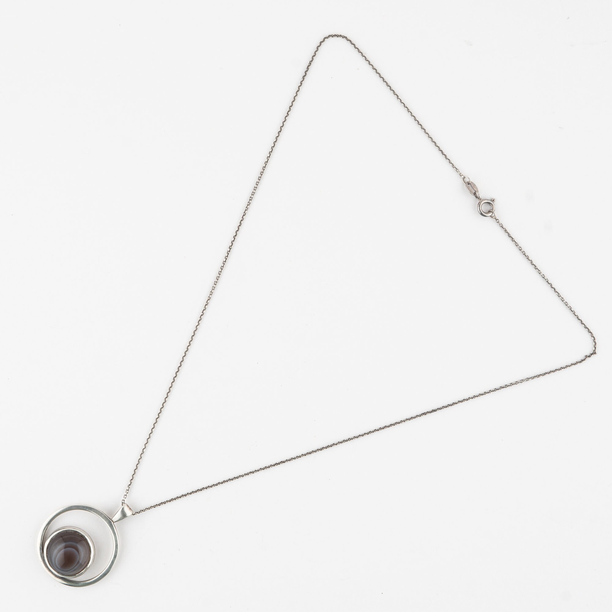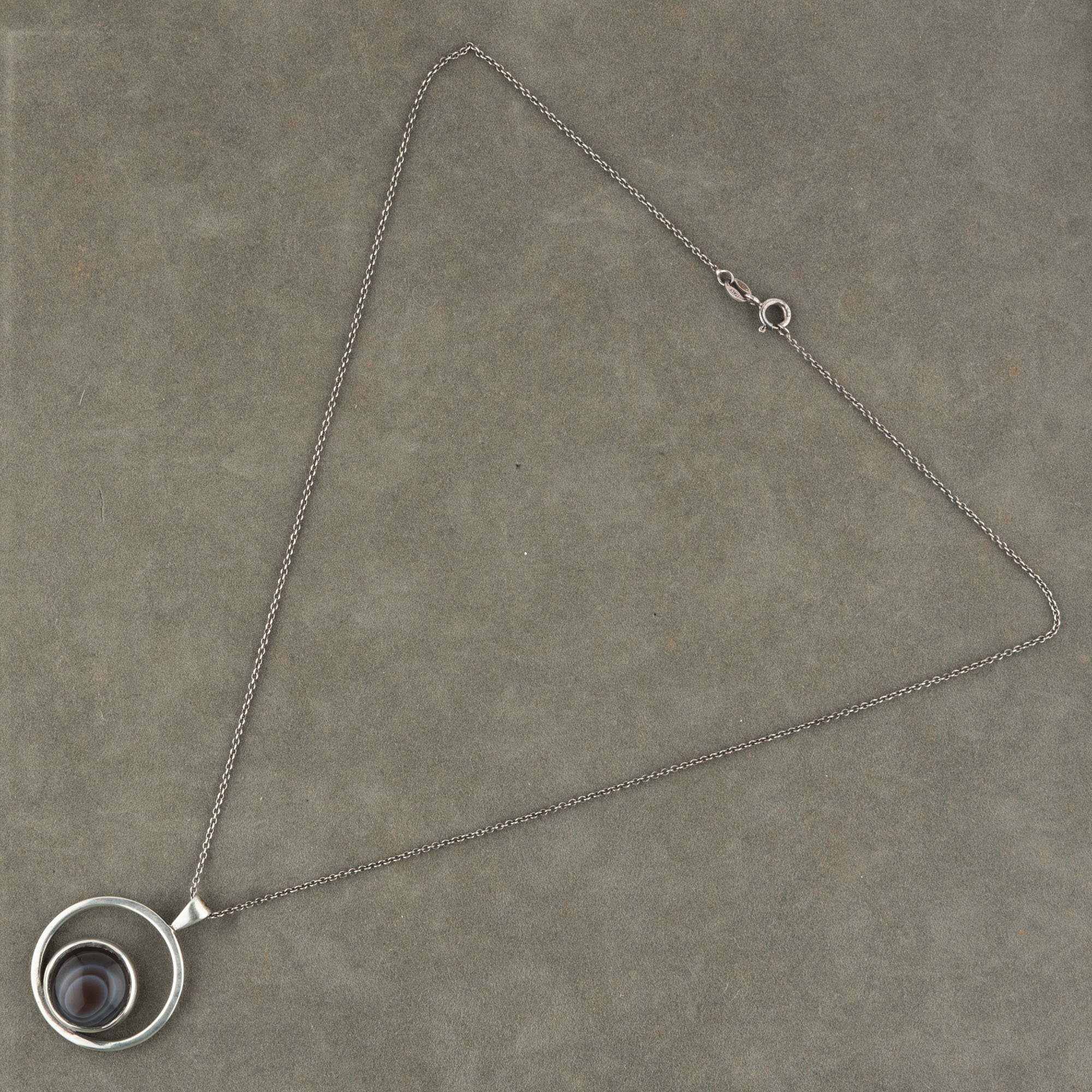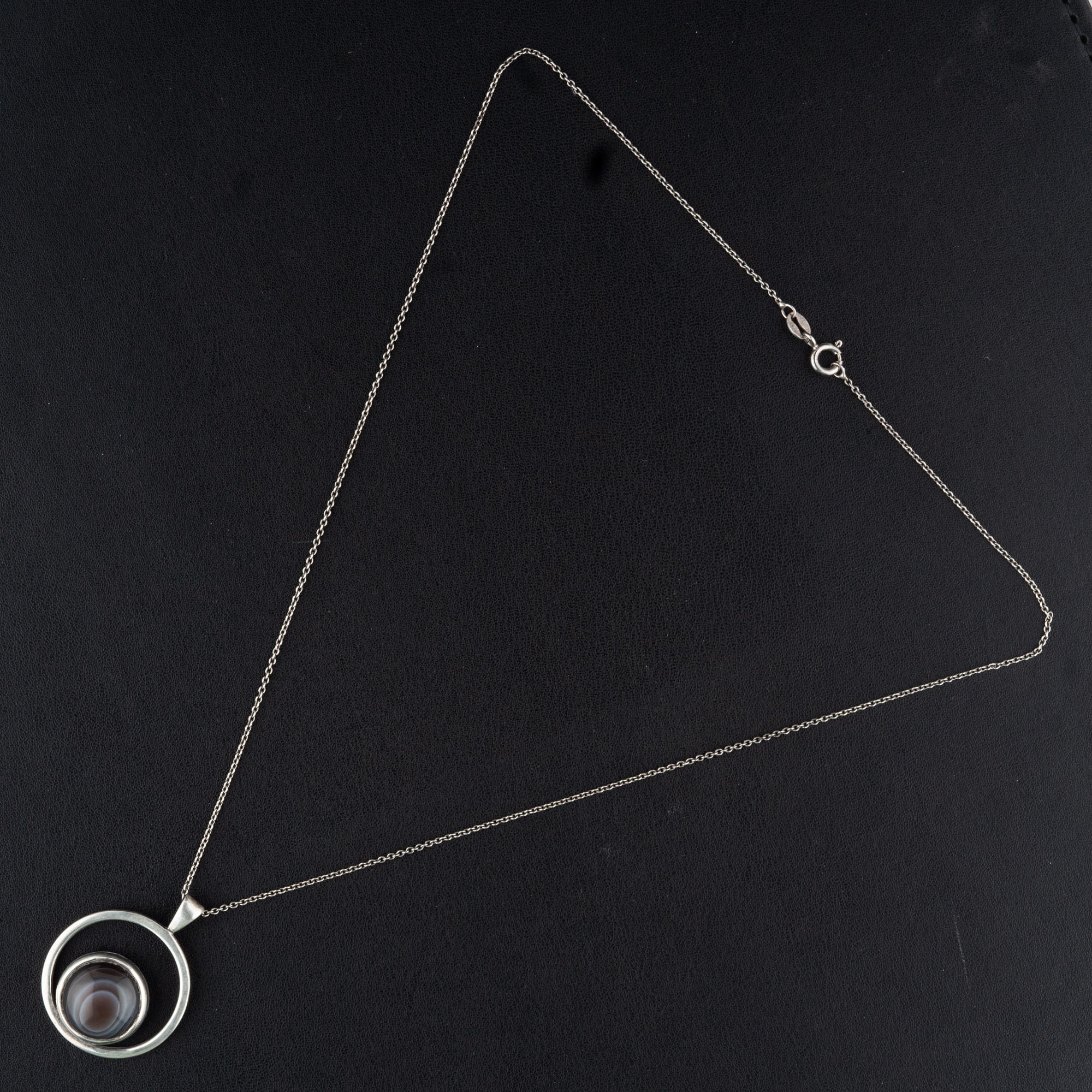 Striking Malcolm Gray Ortak C1970s Sterling Silver Agate Pendant Necklace