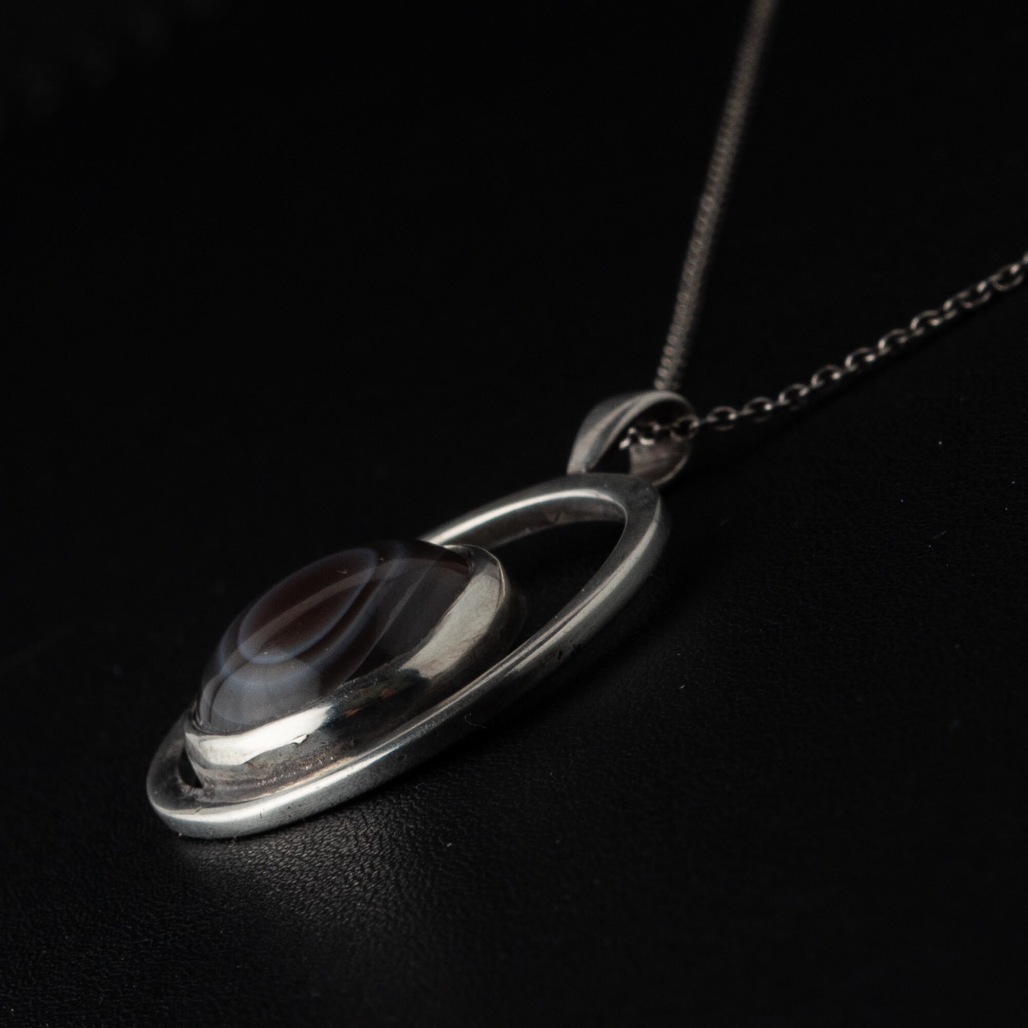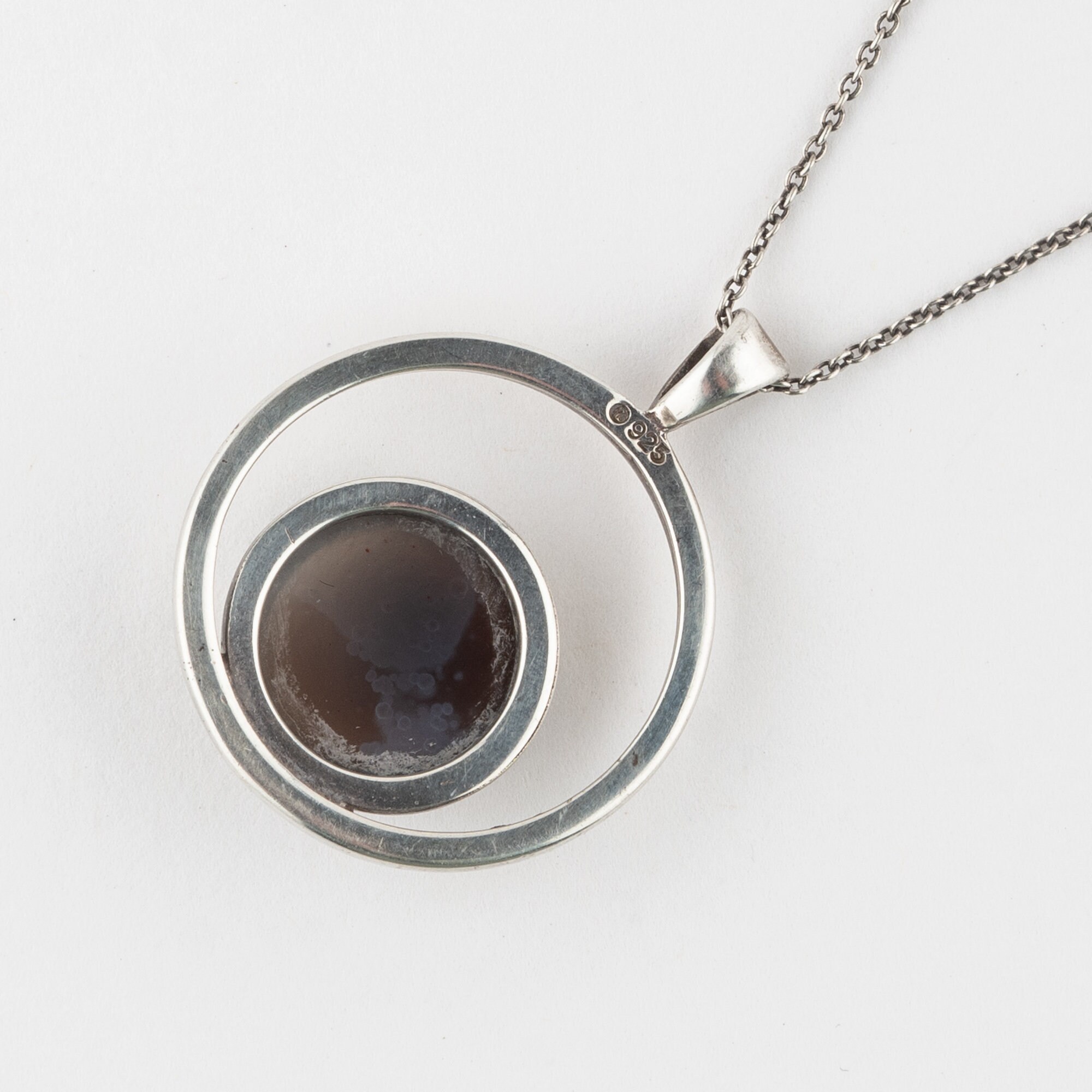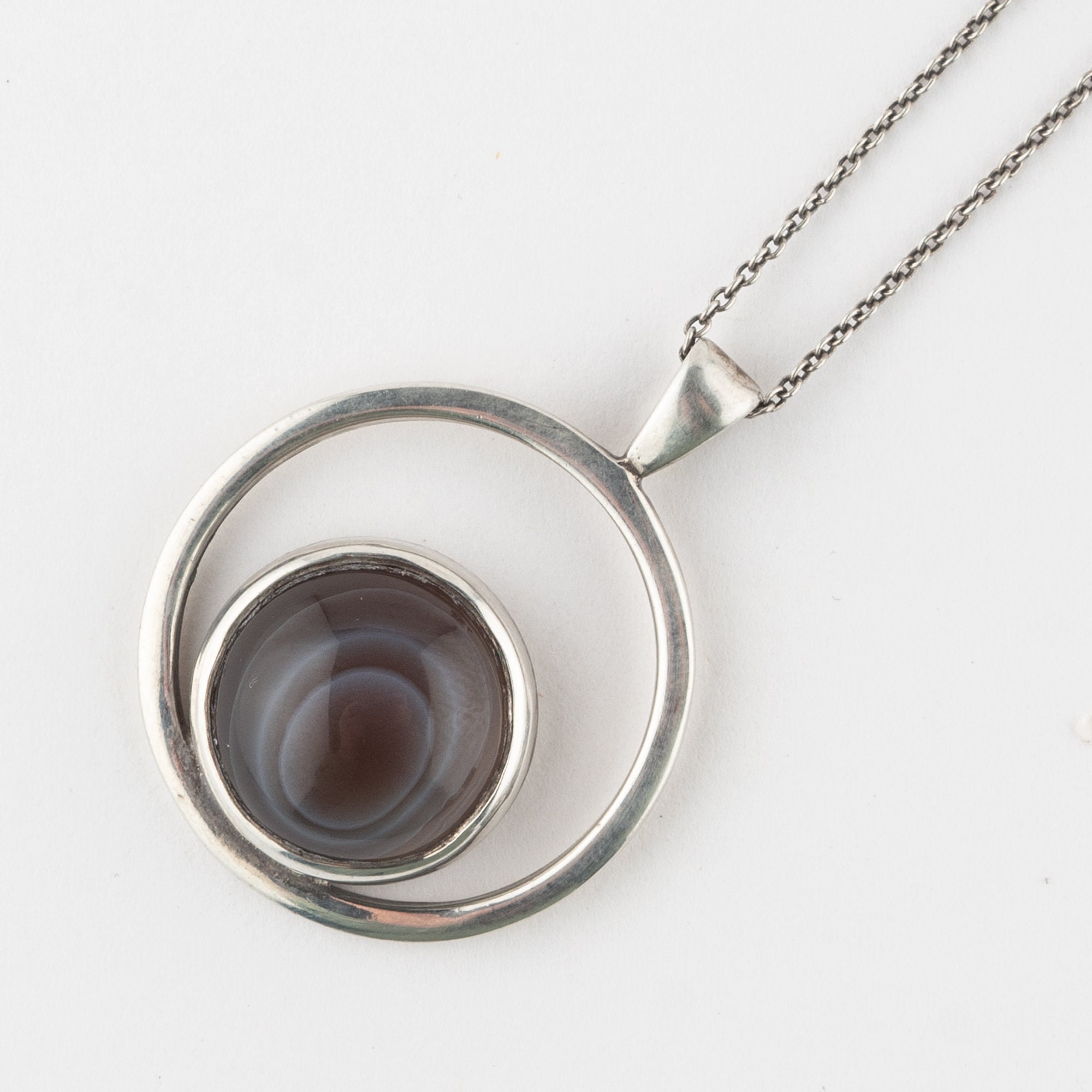 in good used condition. Pretty bullseye banded agate in silver by Orkney jeweller Malcolm Gray, Ortak.