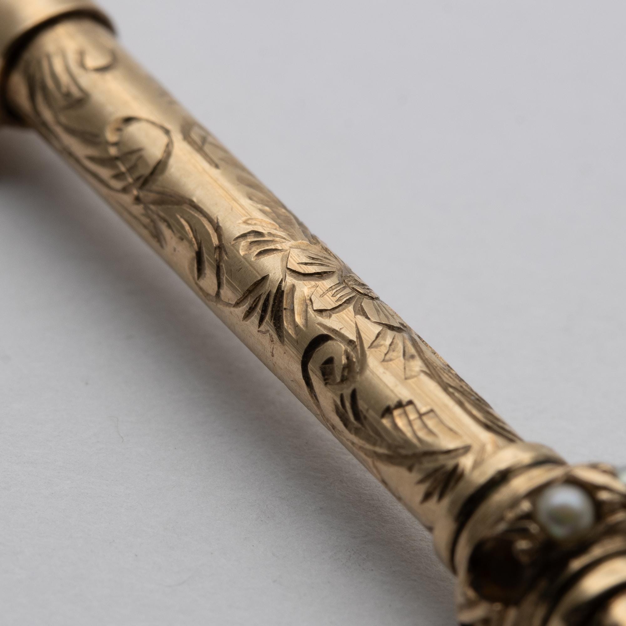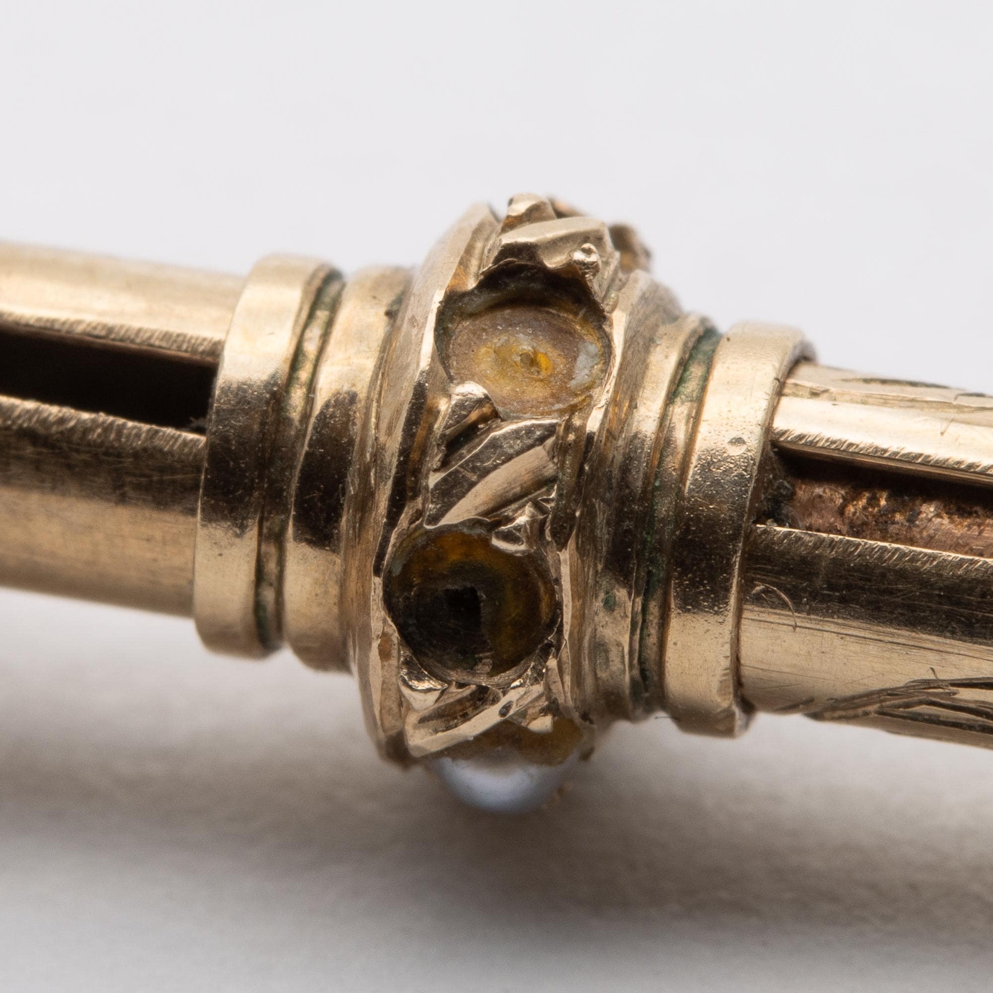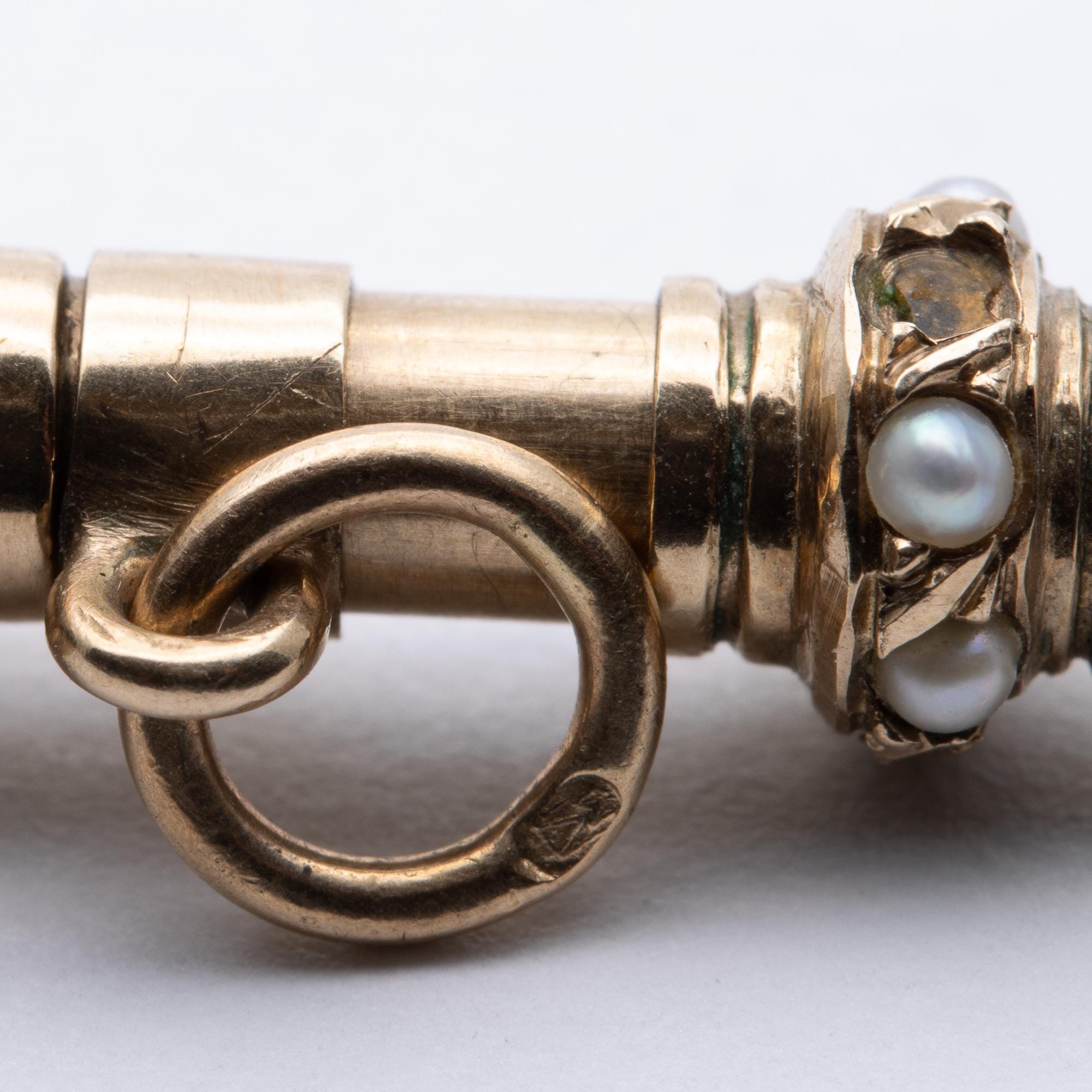 Attractive Antique 9ct Gold & Pearl Retractable Toothpick