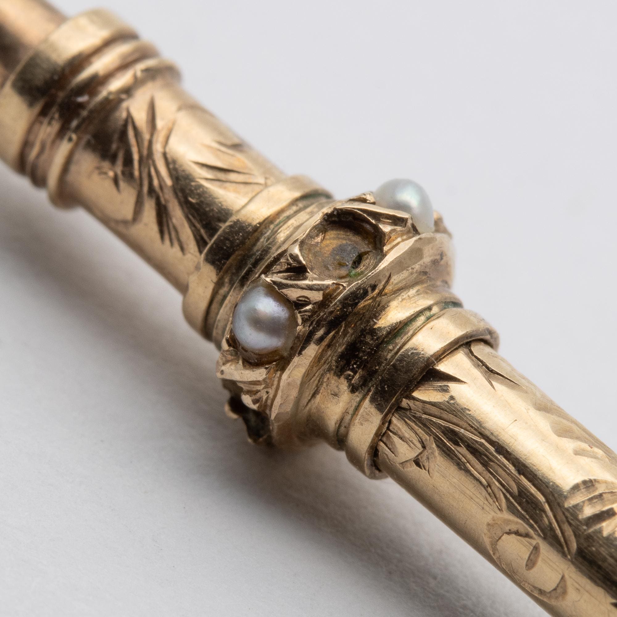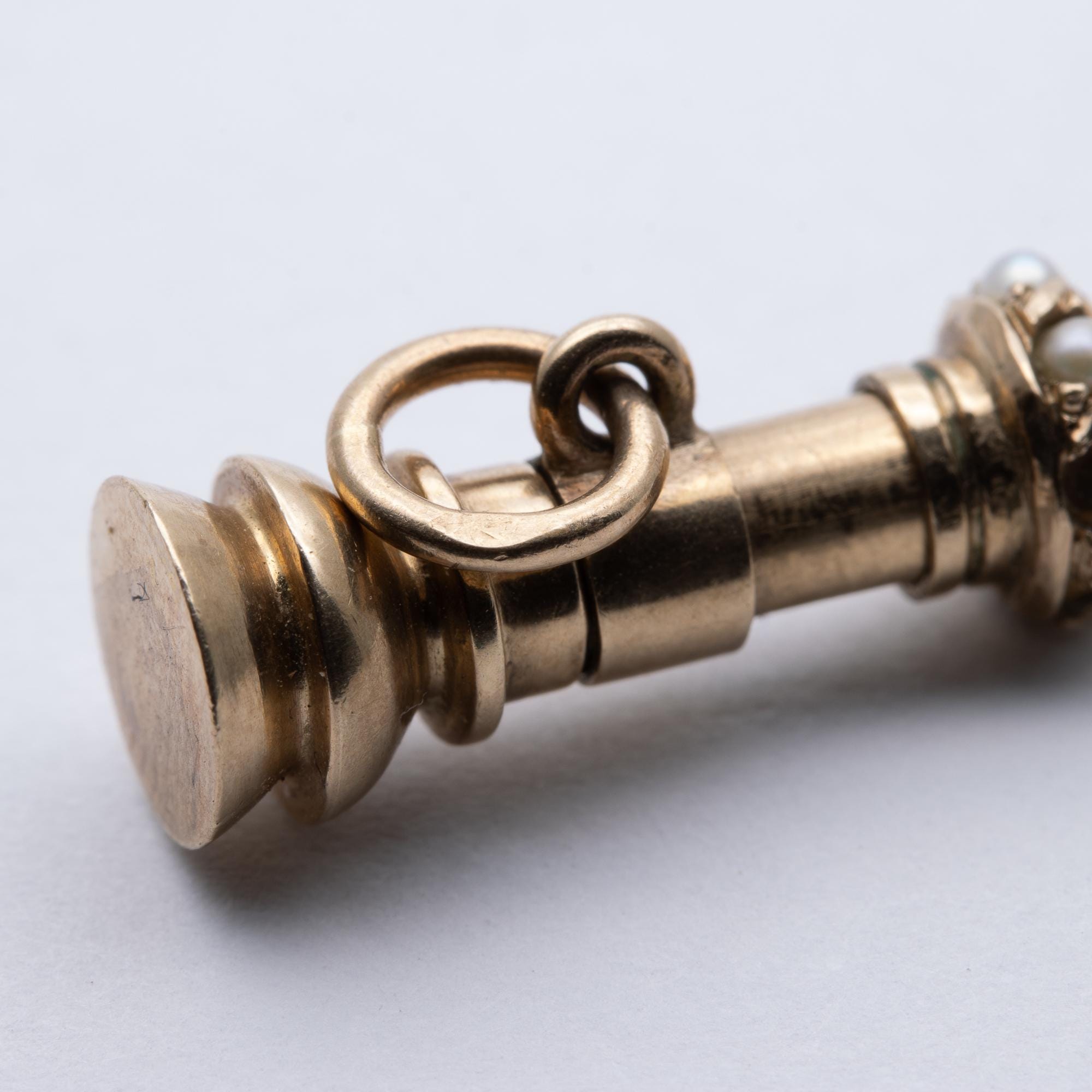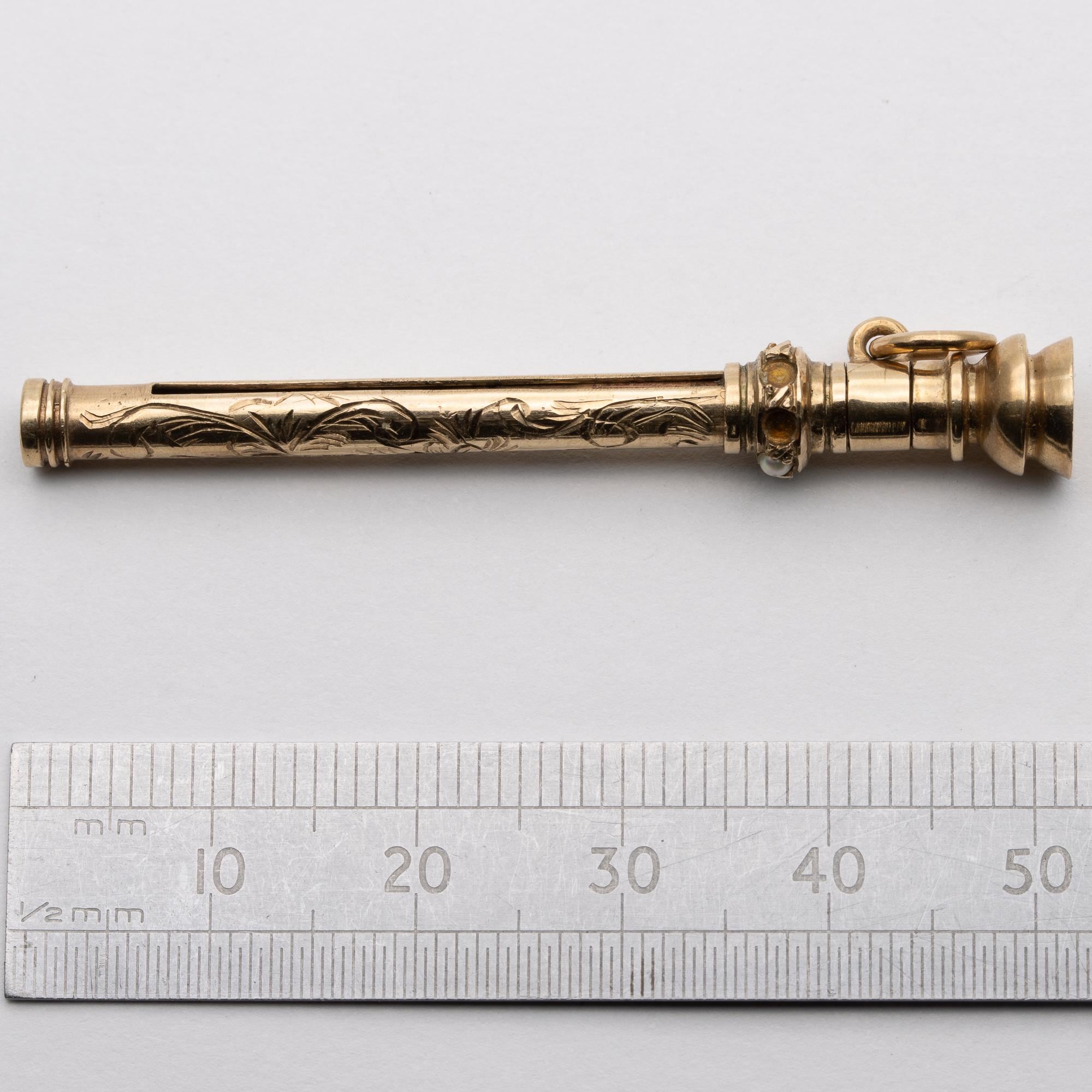 Attractive Antique 9ct Gold & Pearl Retractable Toothpick
