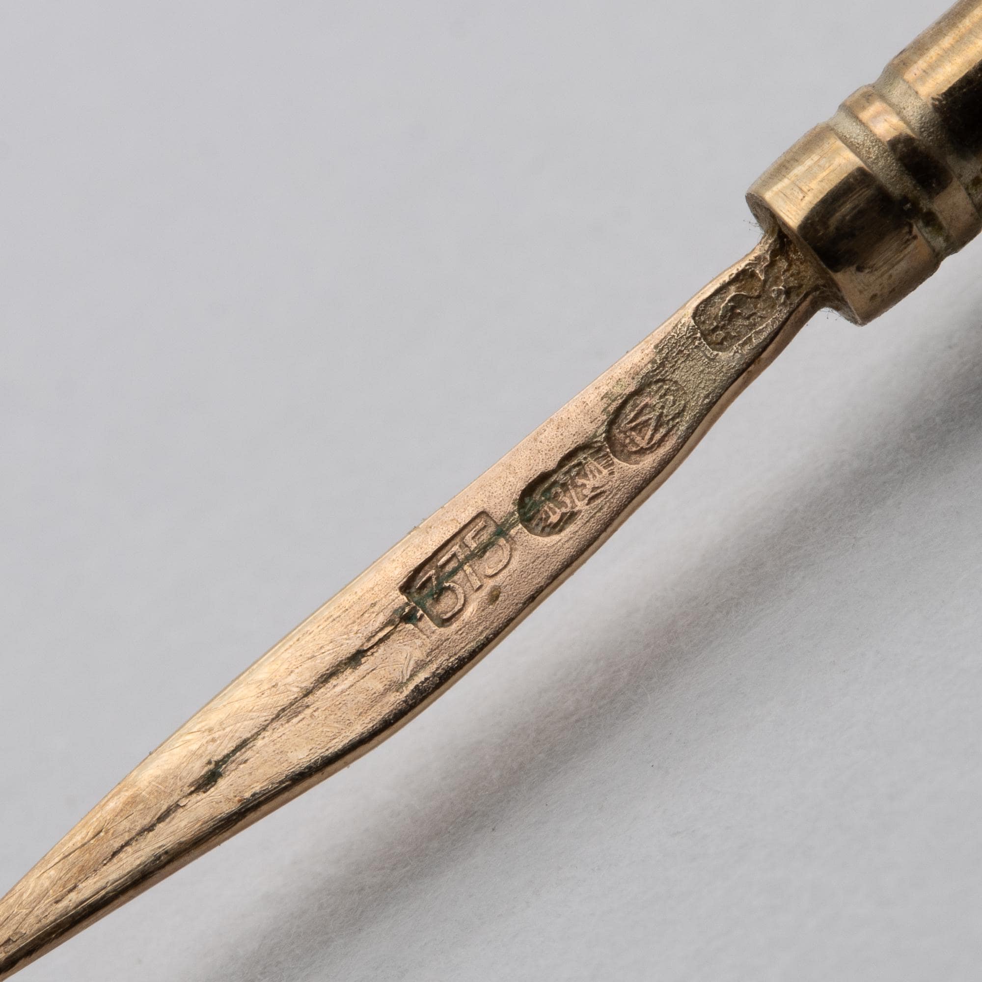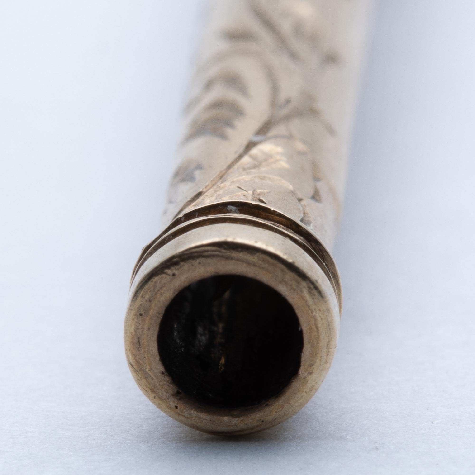 in good used condition. I believe this has been a pencil converted into a toothpick with a more modern hallmark