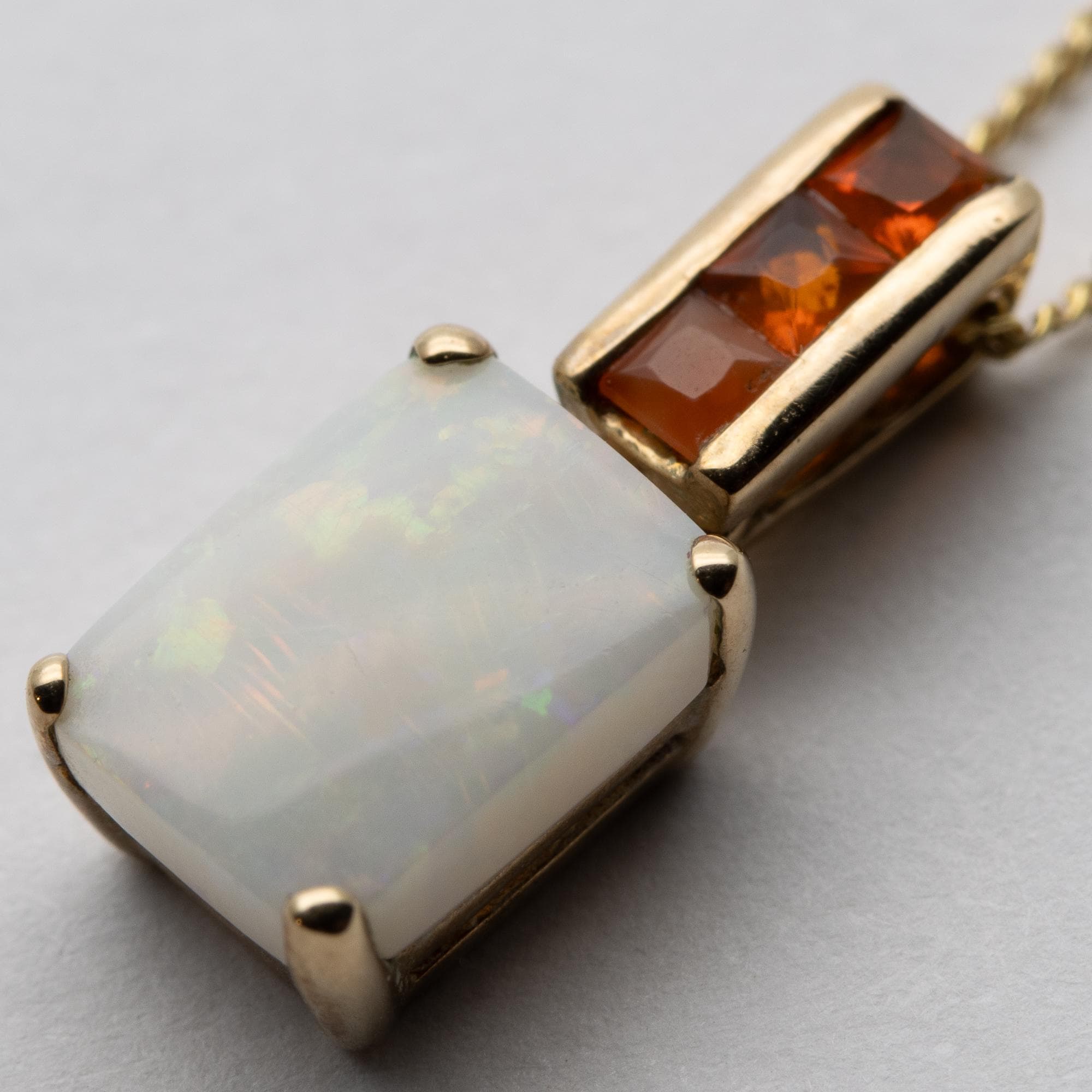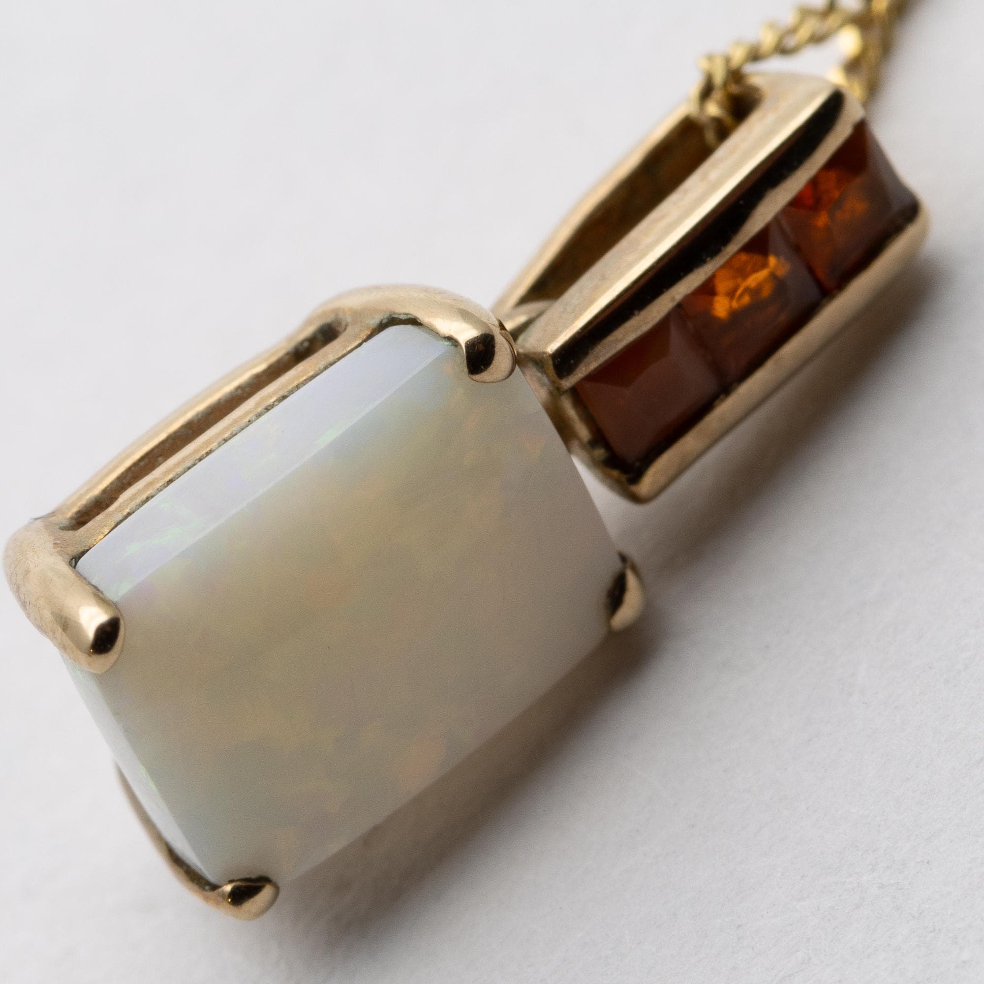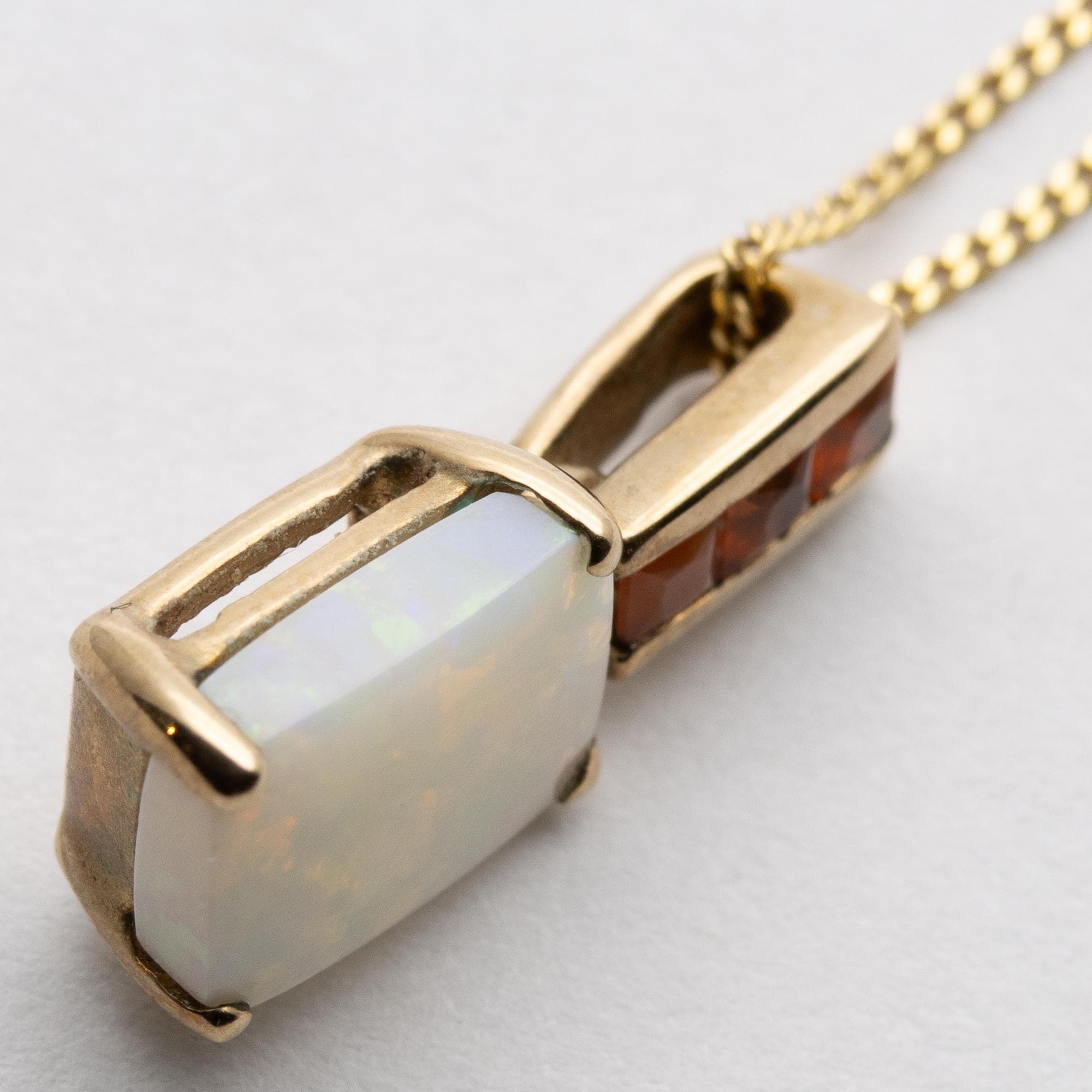 Pretty Vintage 9ct Yellow Gold Opal & Mexican Opal Pendant Necklace