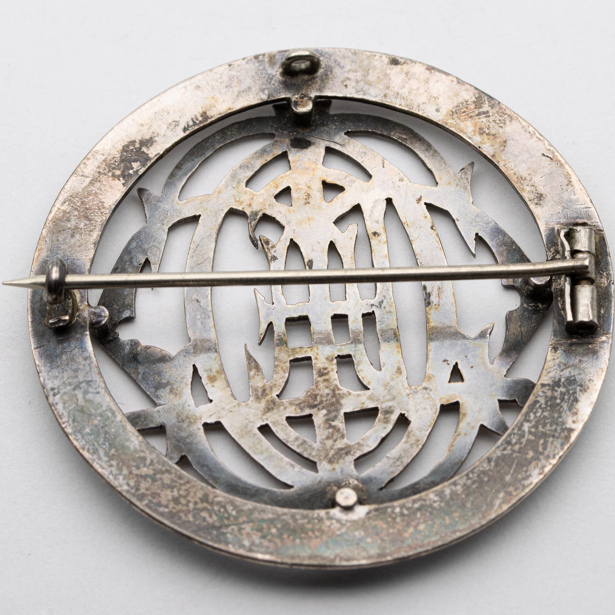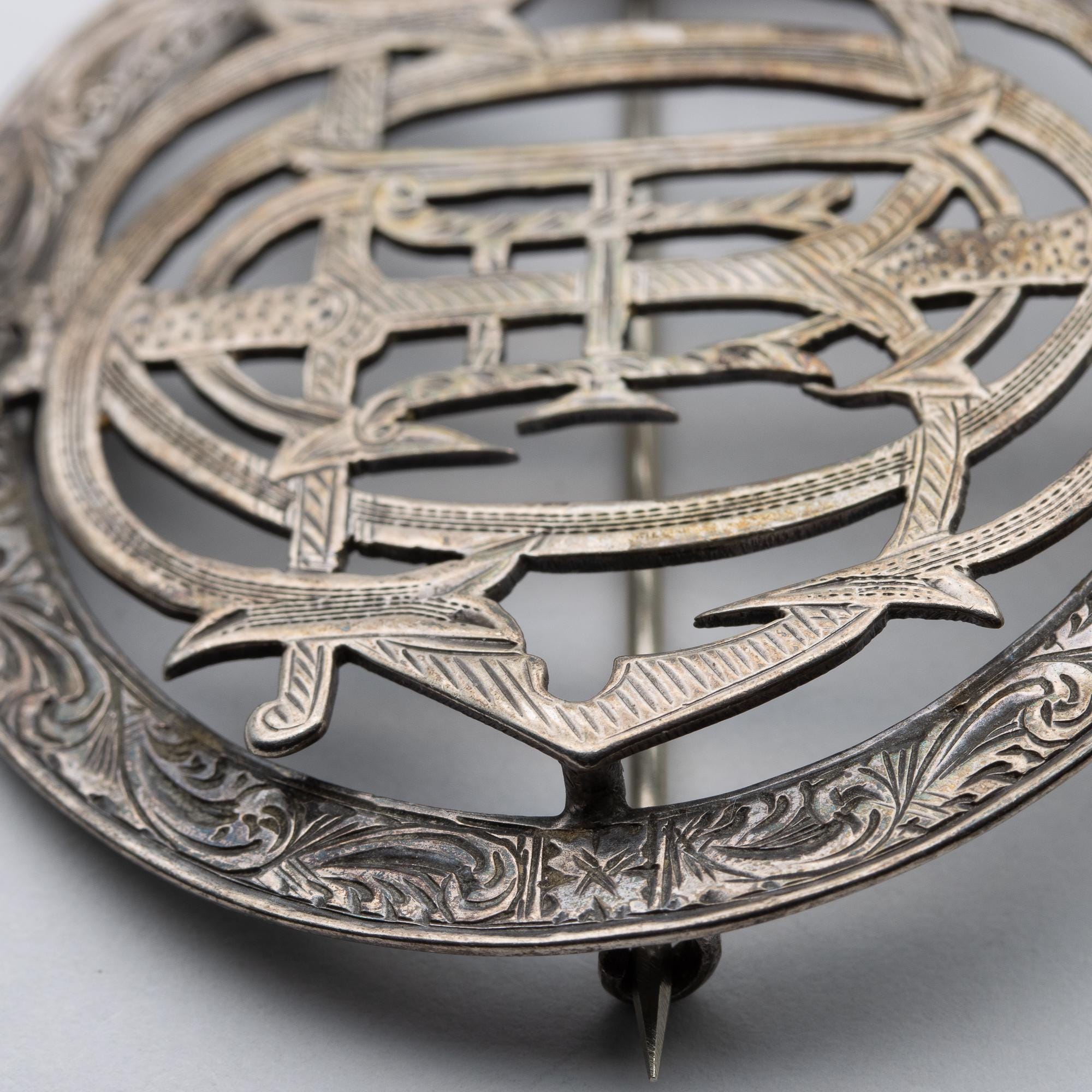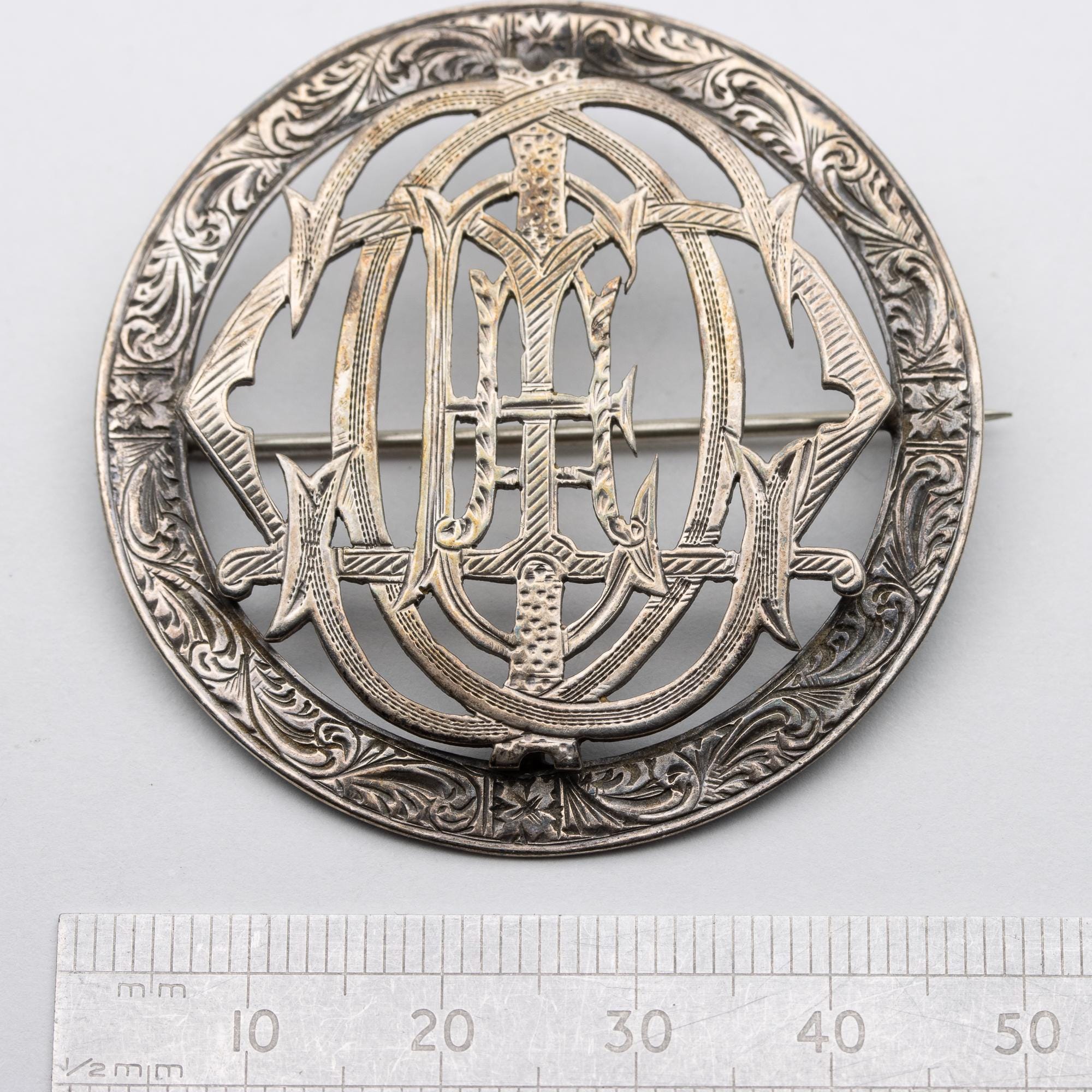 in good used condition. Highly ornate cut out initials brooch, possibly CCEM?