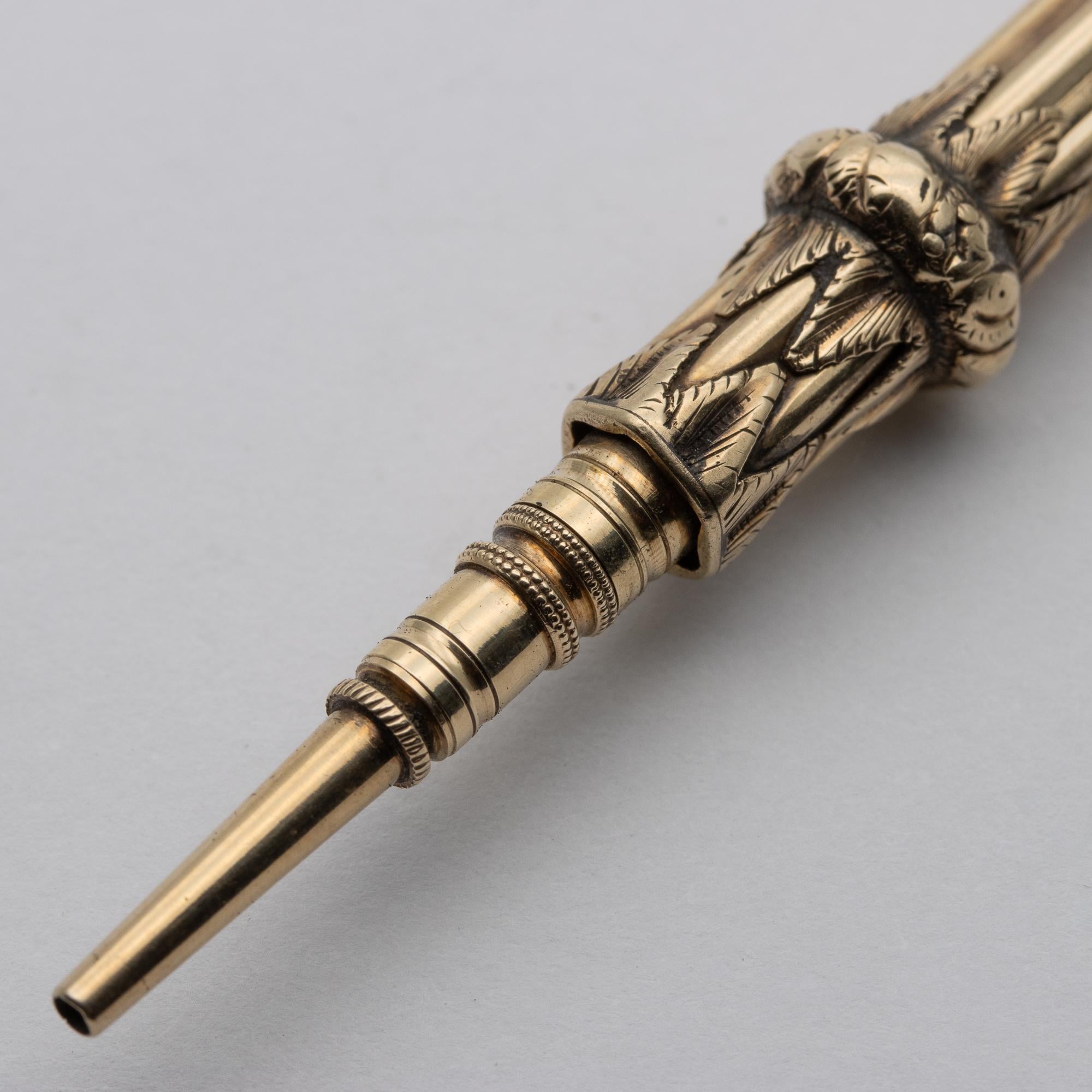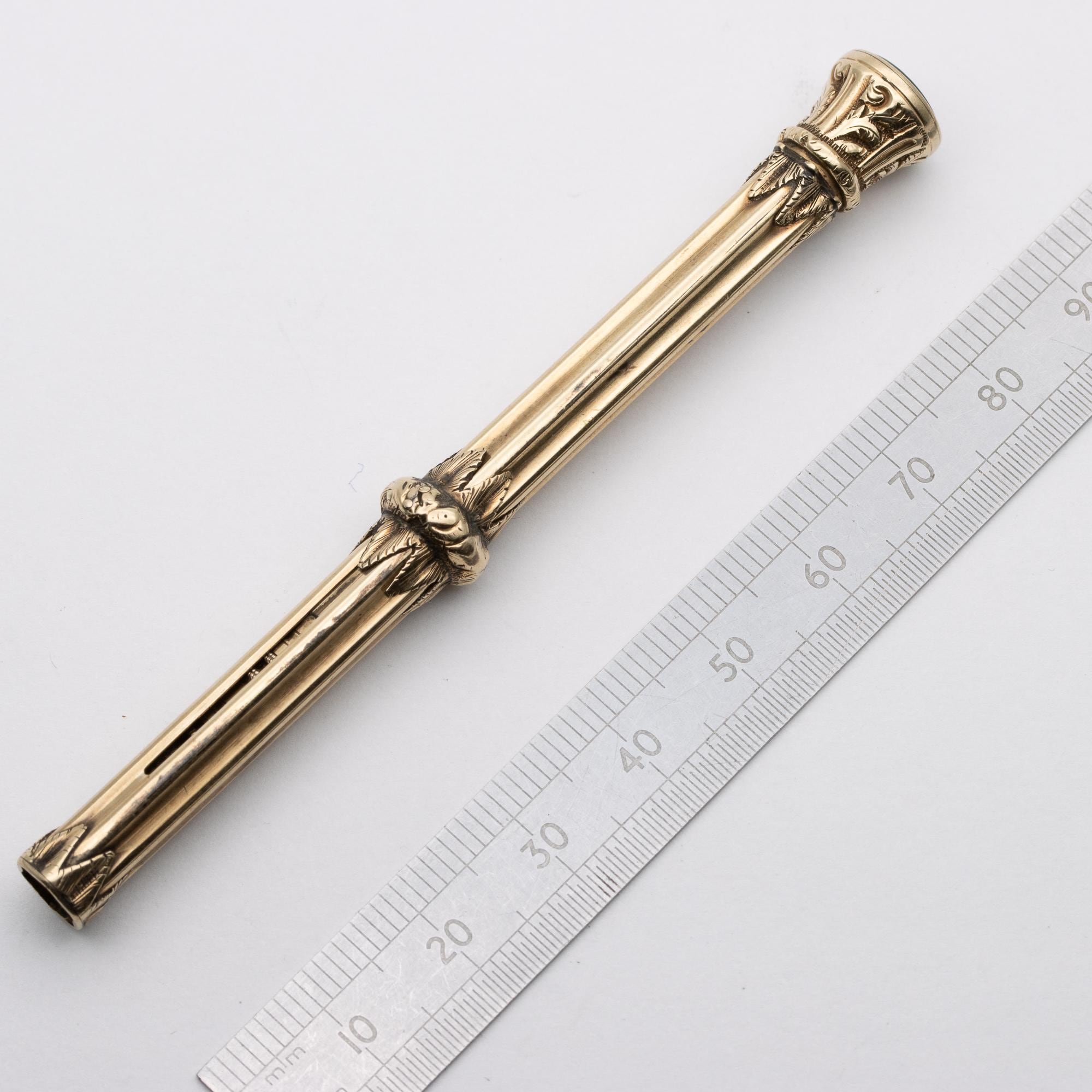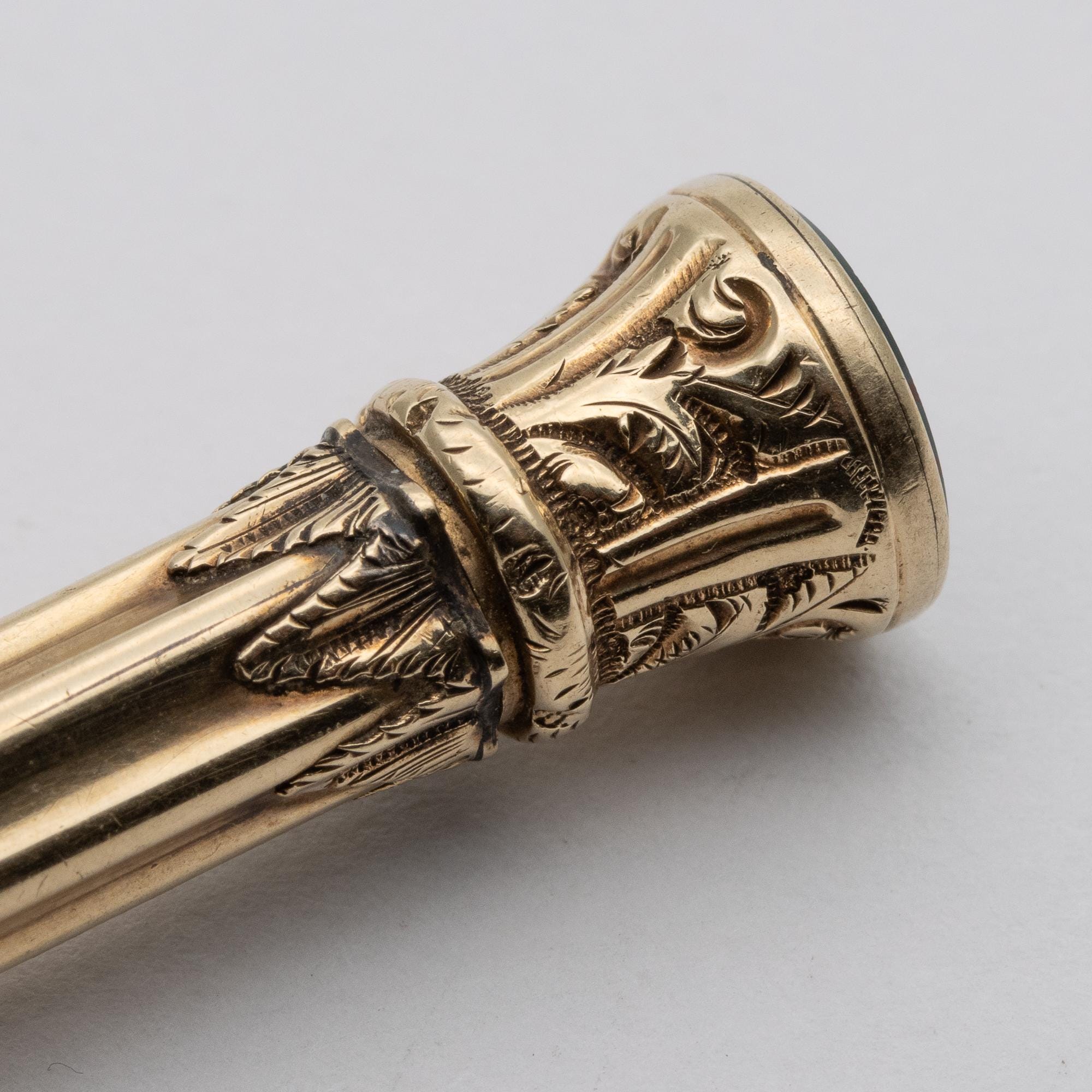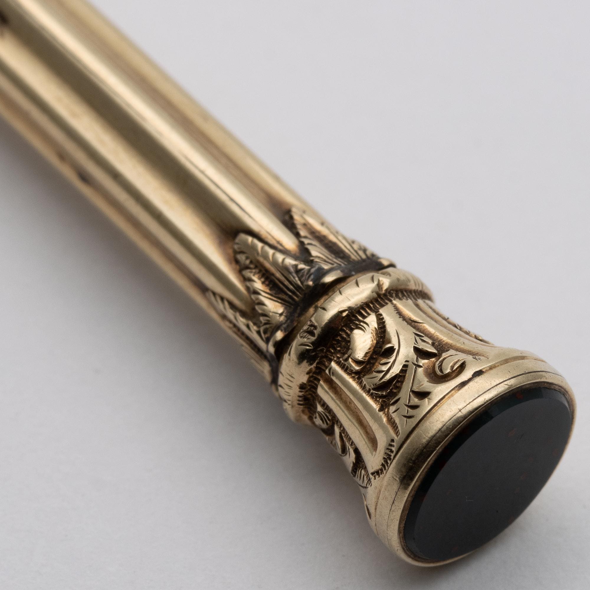 Handsome Antique Victorian Gold Cased Sliding Retractable Pencil with Bloodstone Finial