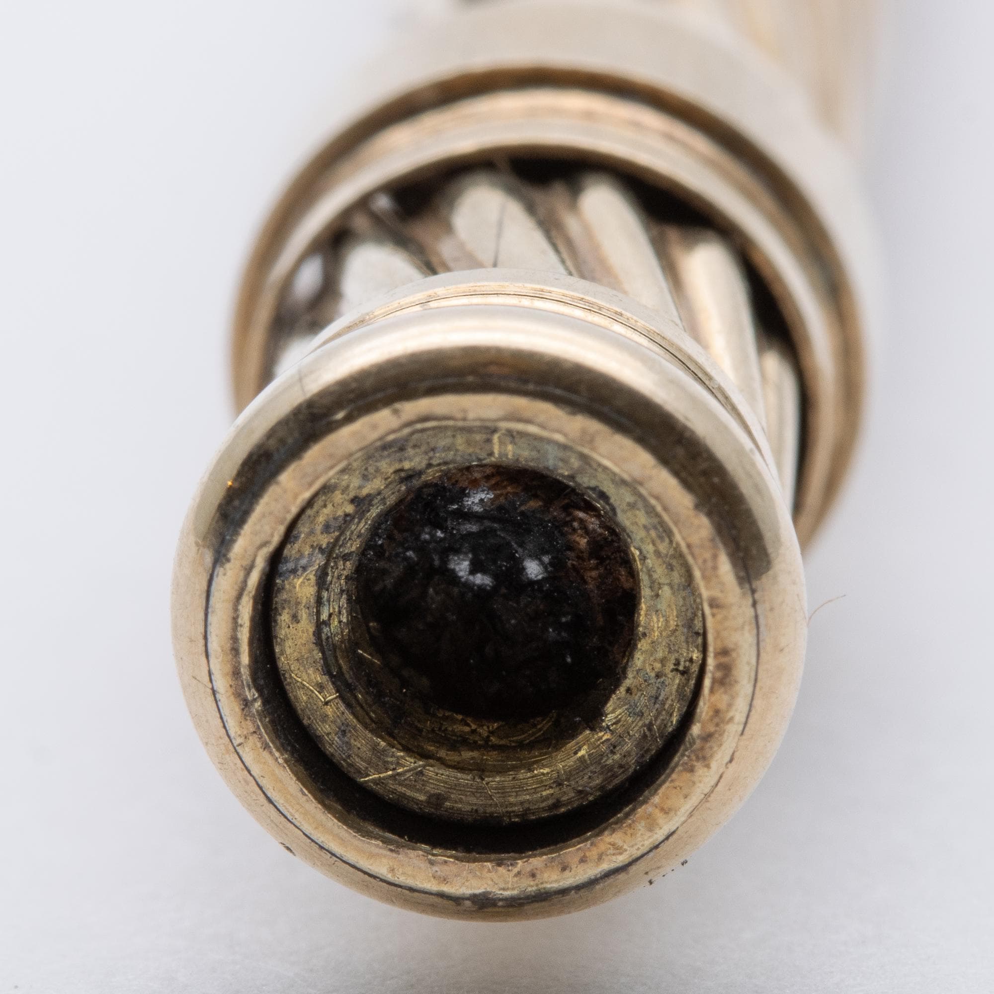 in used condition. Nice sliding mechanism toothpick end missing, case has minimal wear, could have a new toothpick end added.