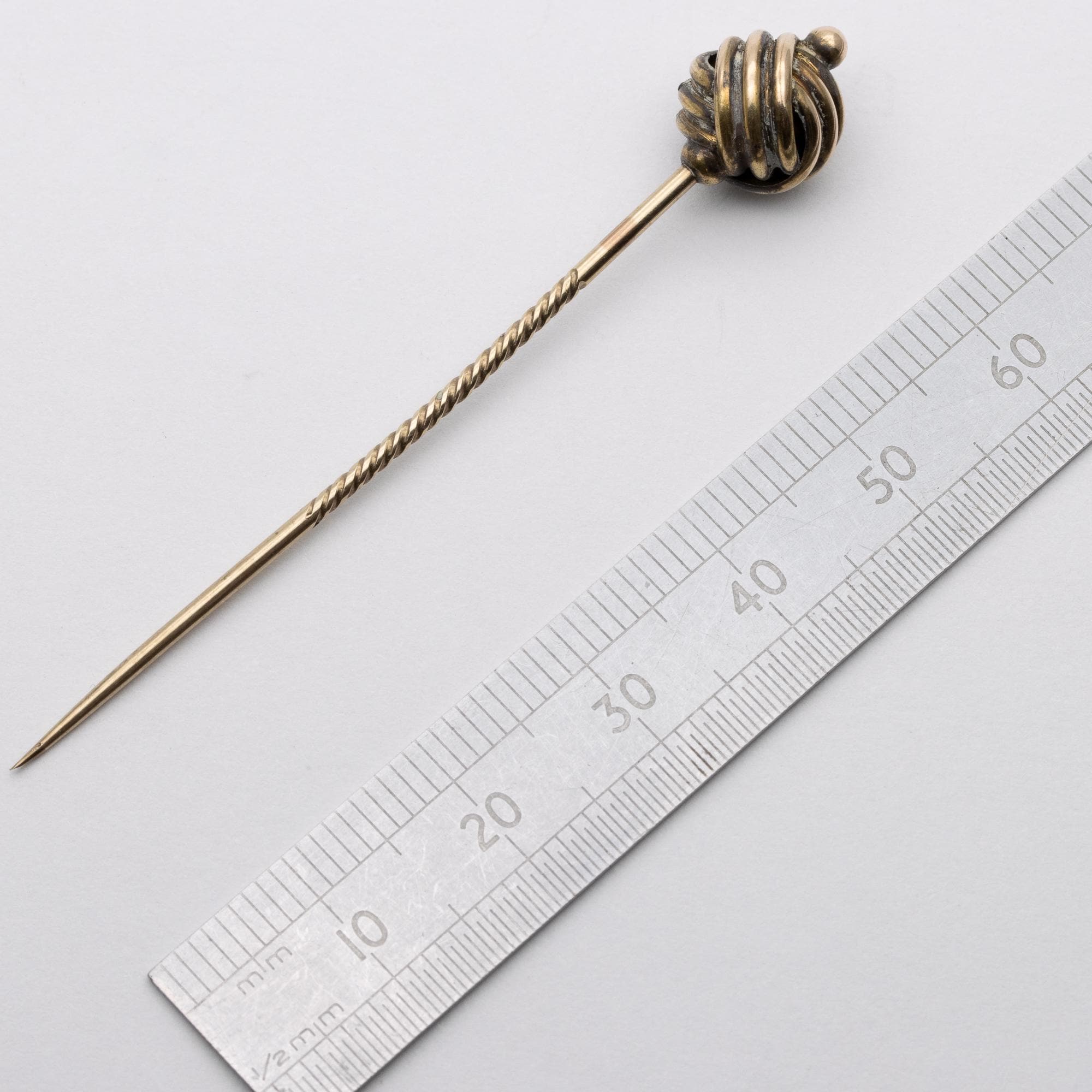 Hallmarks – unmarked, knot test as 9ct, stick is not