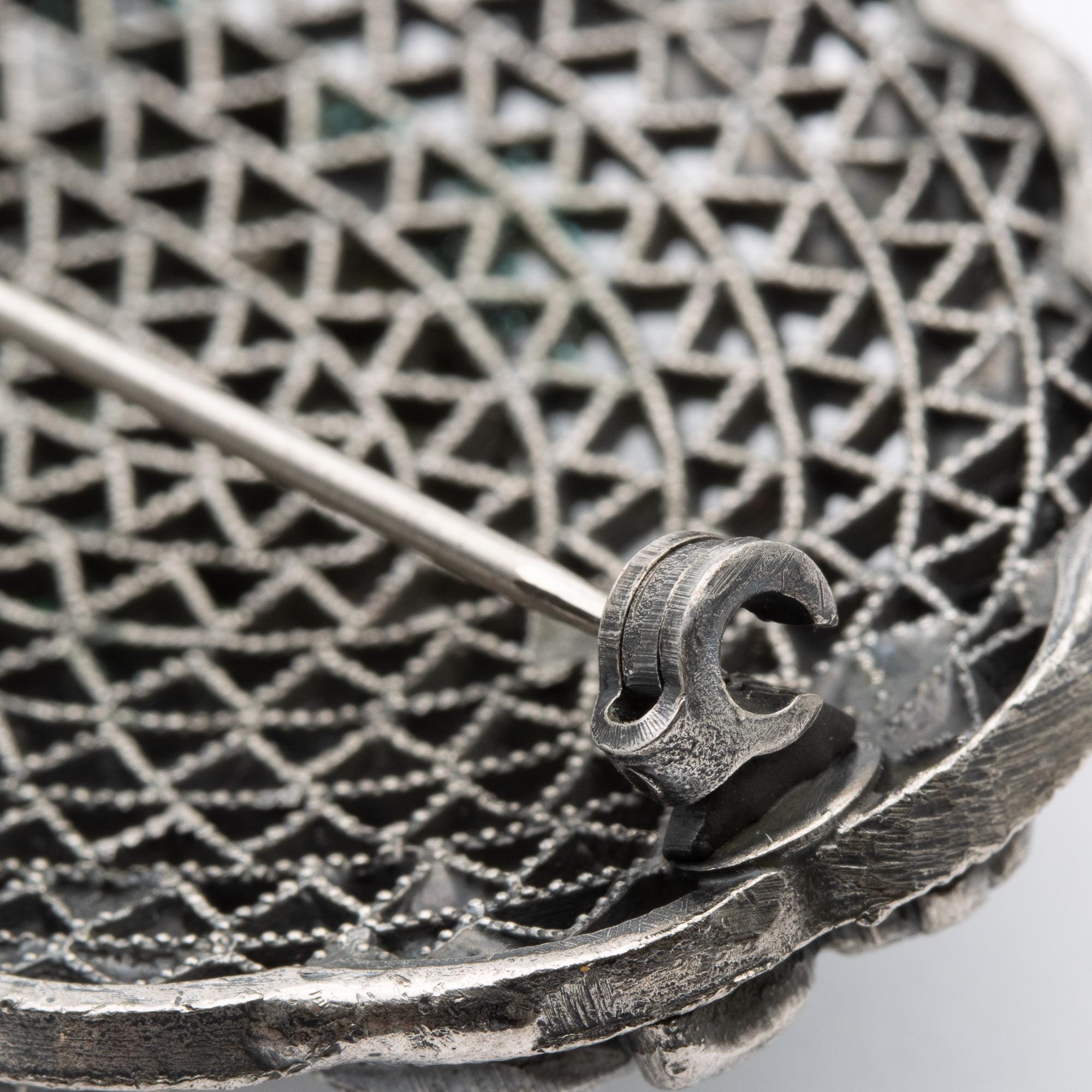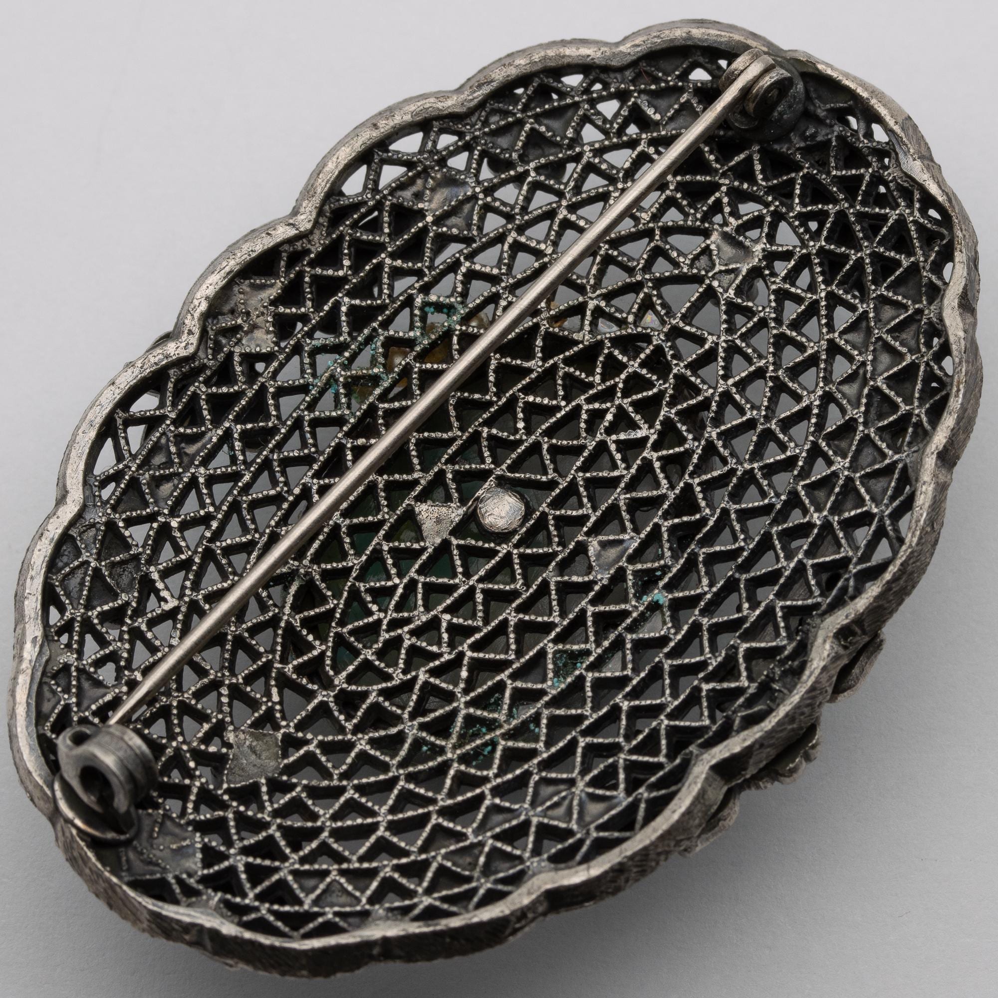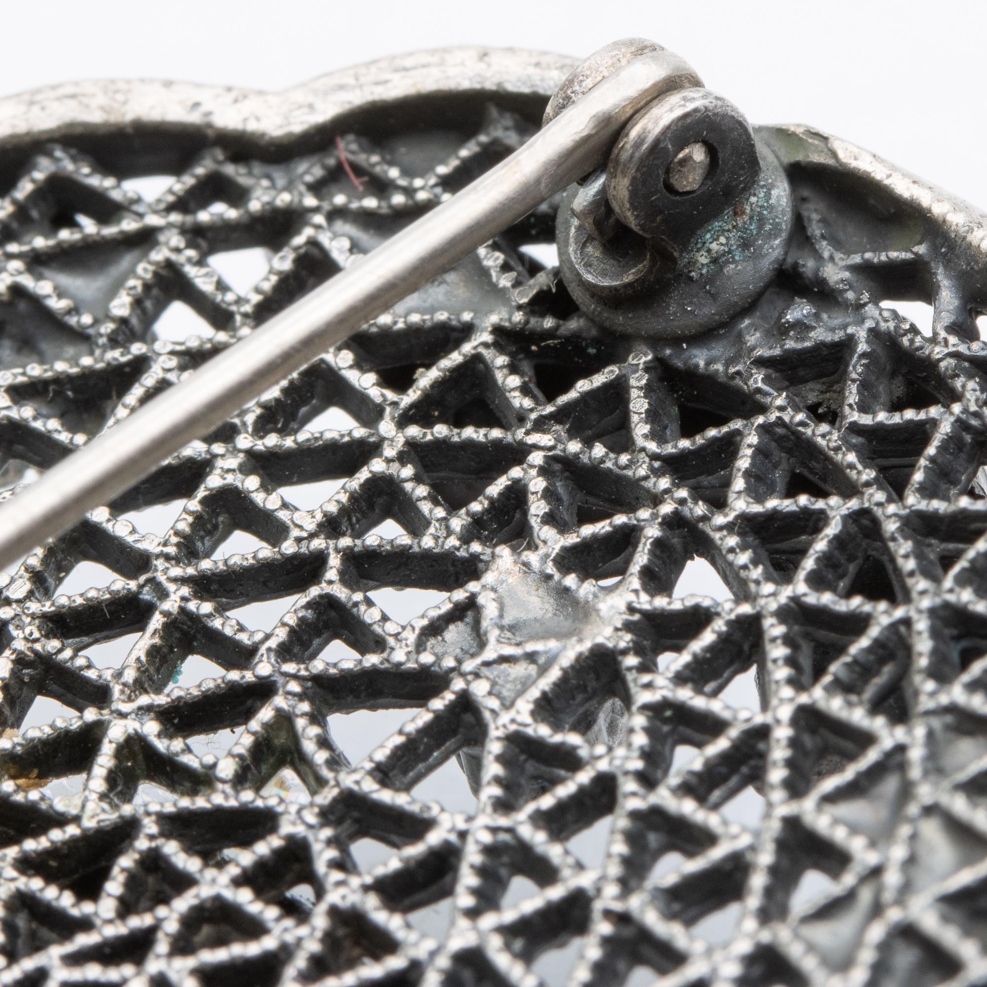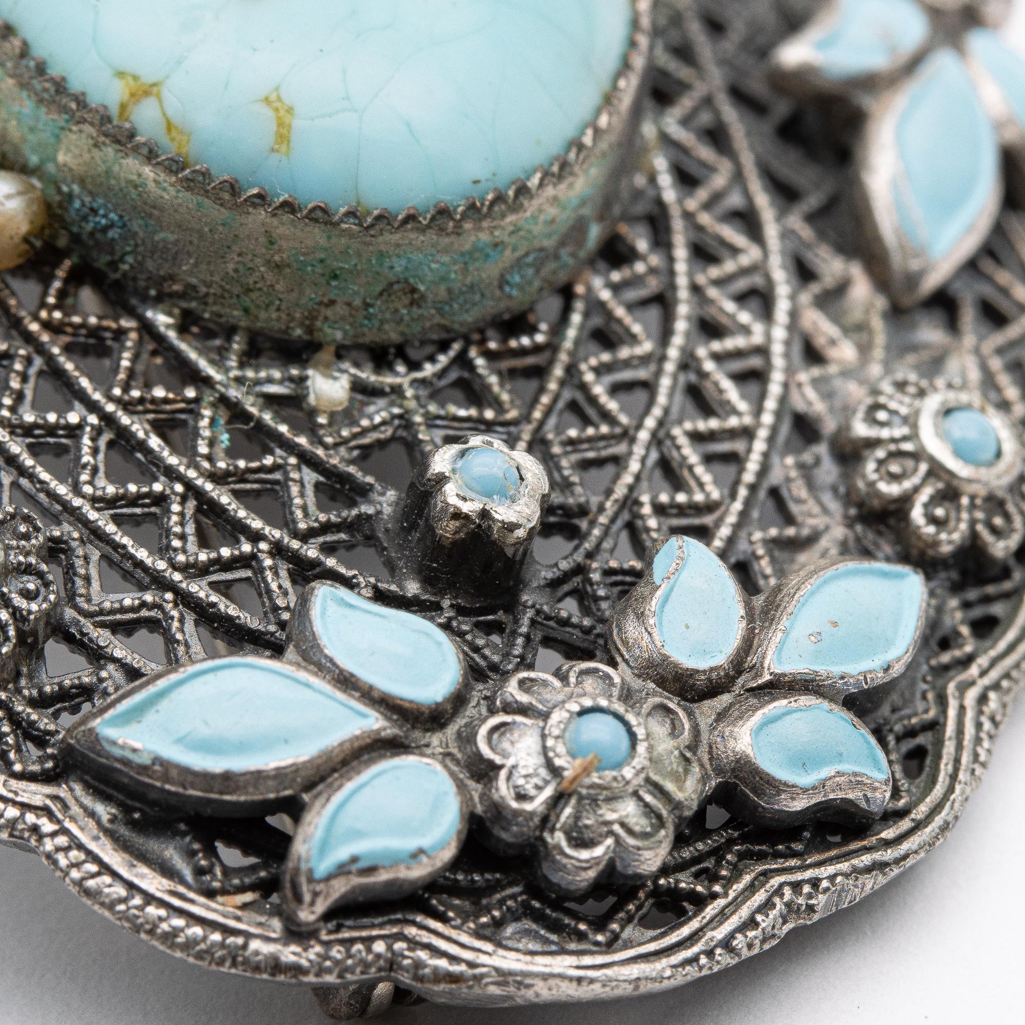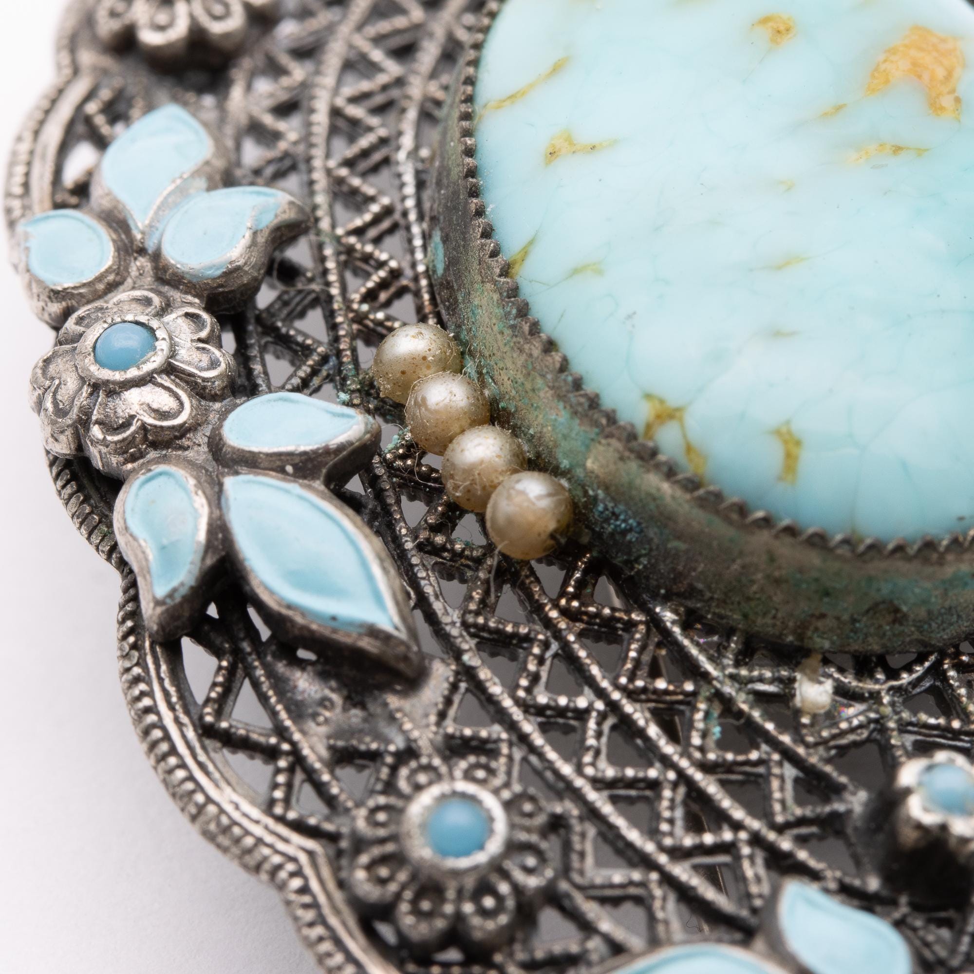 Pretty Vintage Czech Hubbell Glass Faux Turquoise Enamel Filigree Brooch