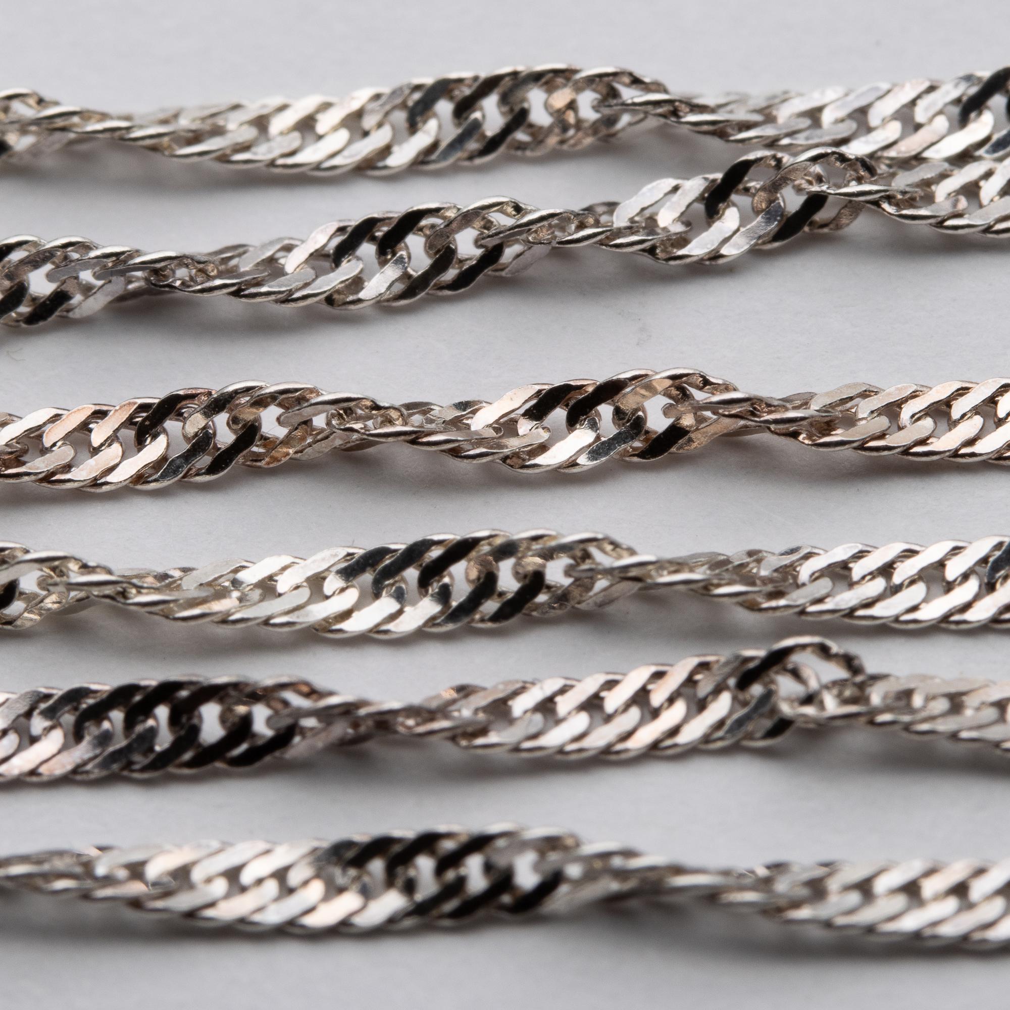 in good used condition. Closes securely, nice clean insides with frame, Italian silver twisted curb link chain.