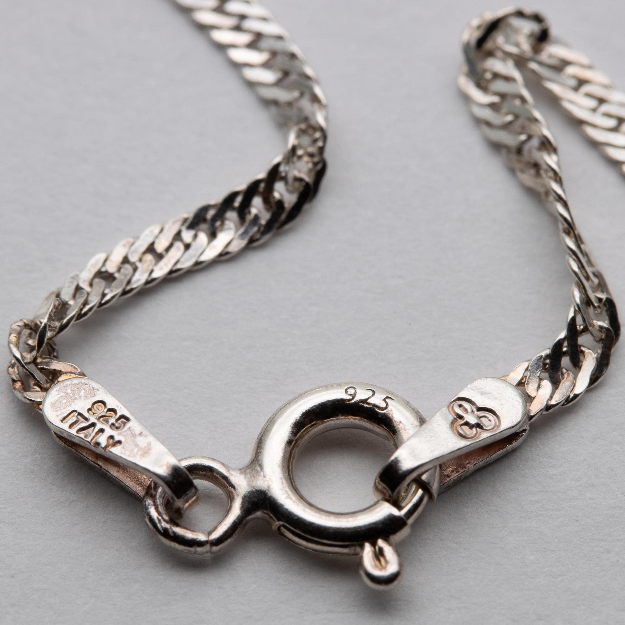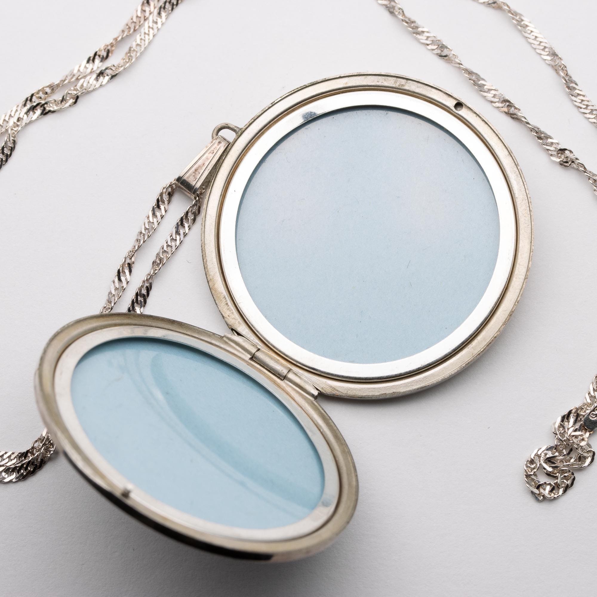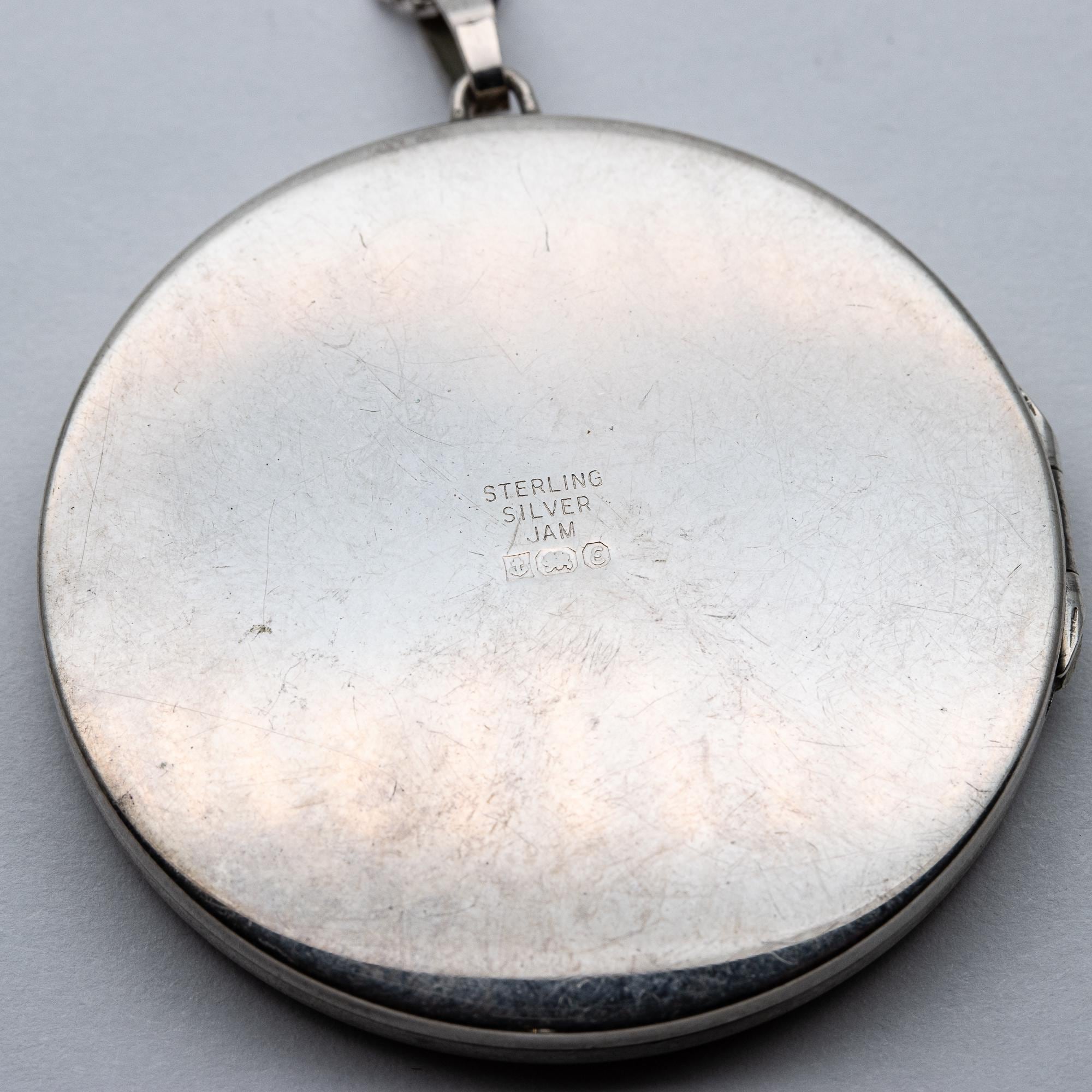 Hallmarks – full UK hallmarks on locket, Birmngham 1979, maker JAM, chain marked 925, Italy IBB