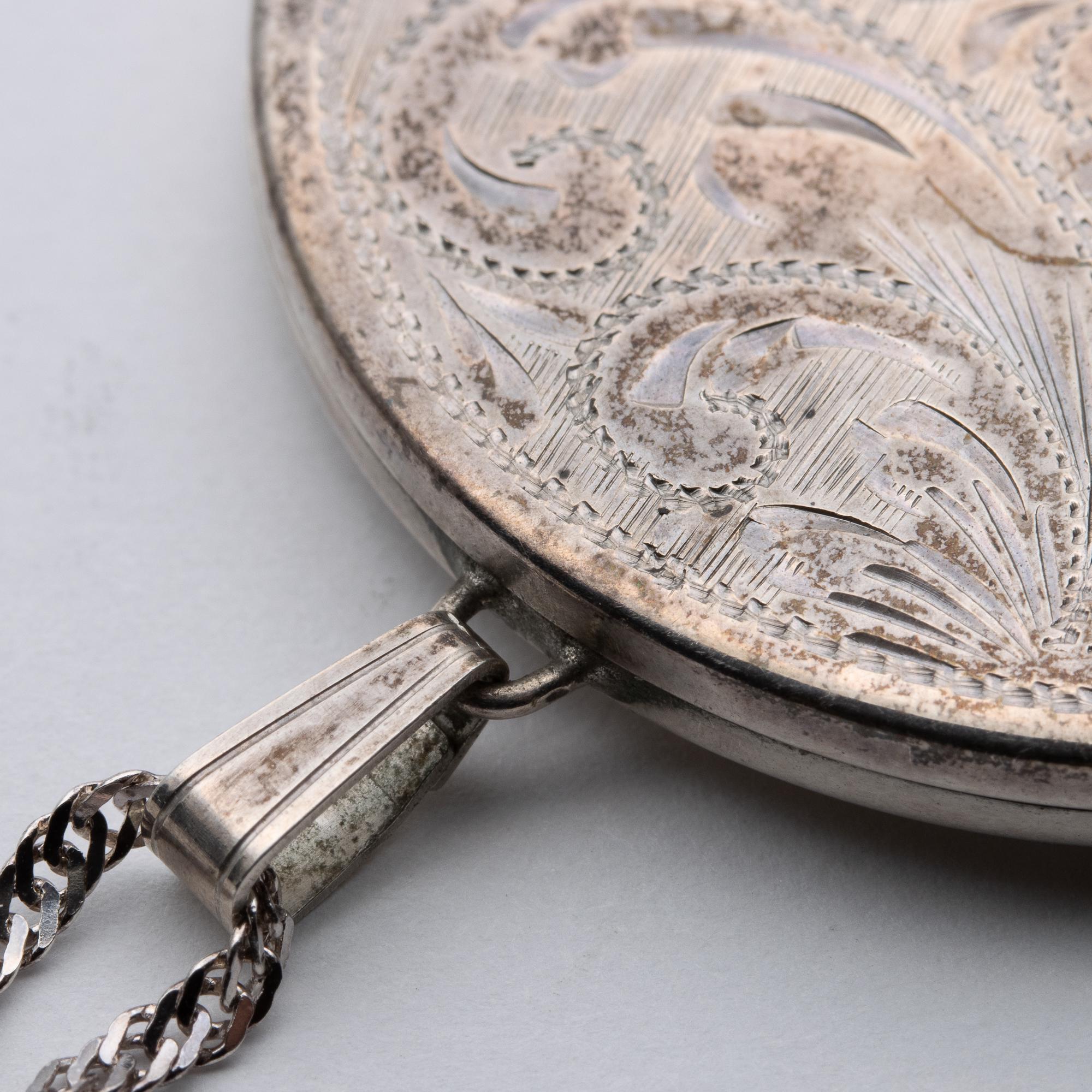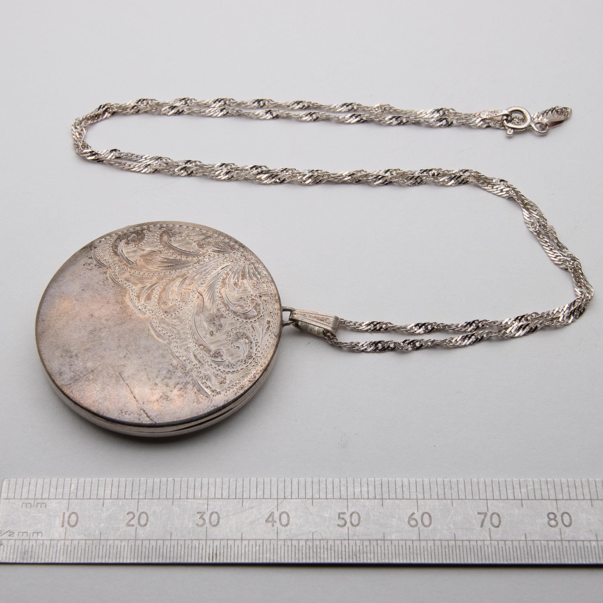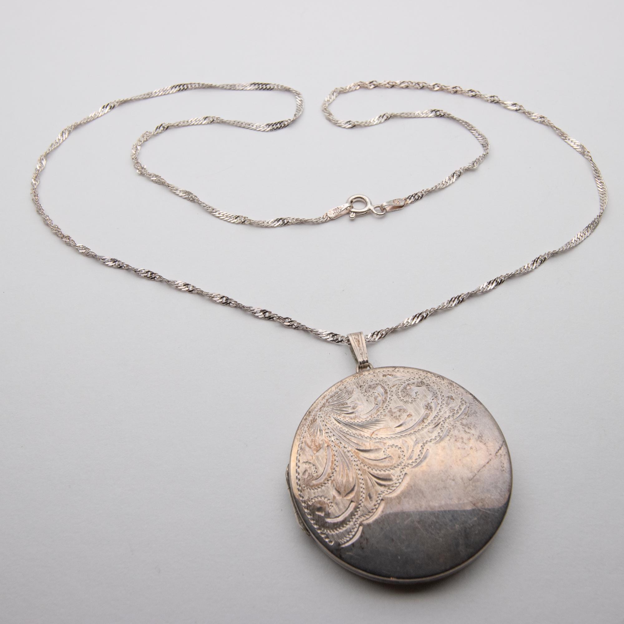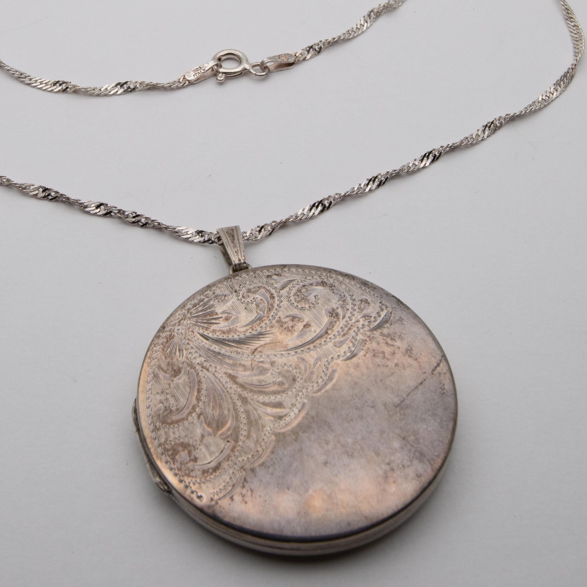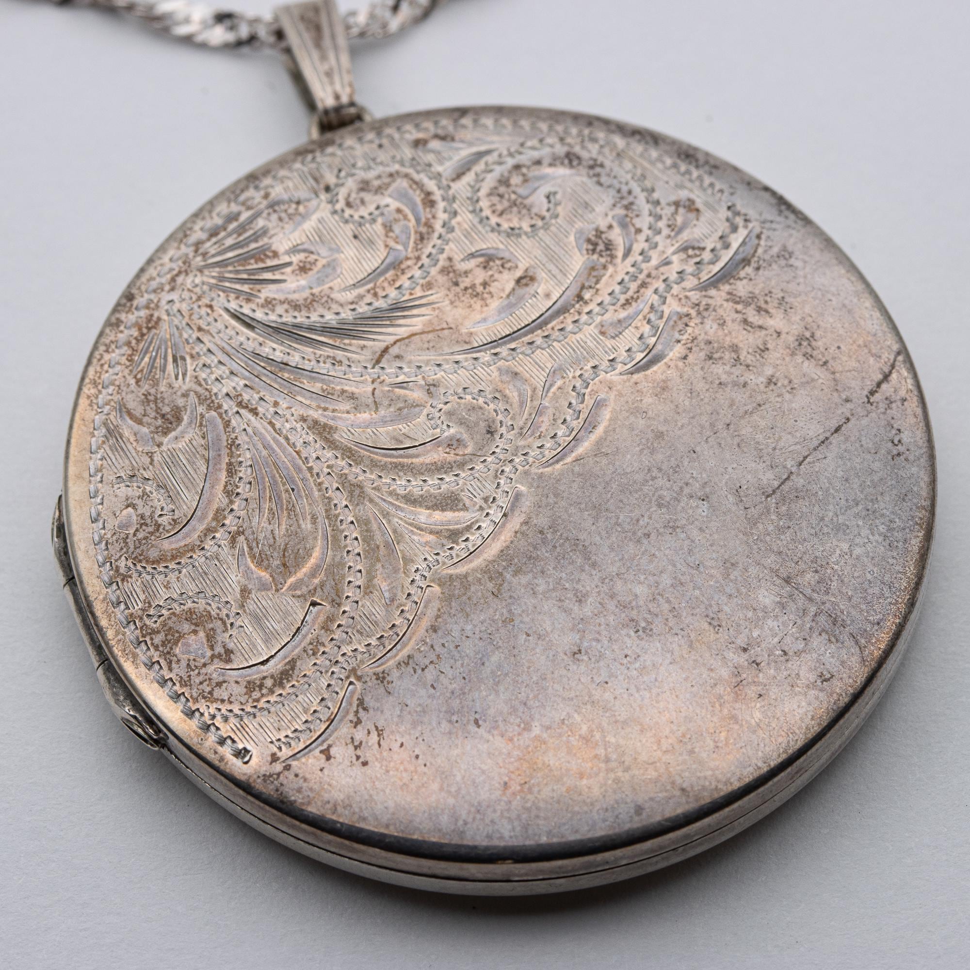 Pretty Vintage Large Round Sterling Silver Locket & Chain