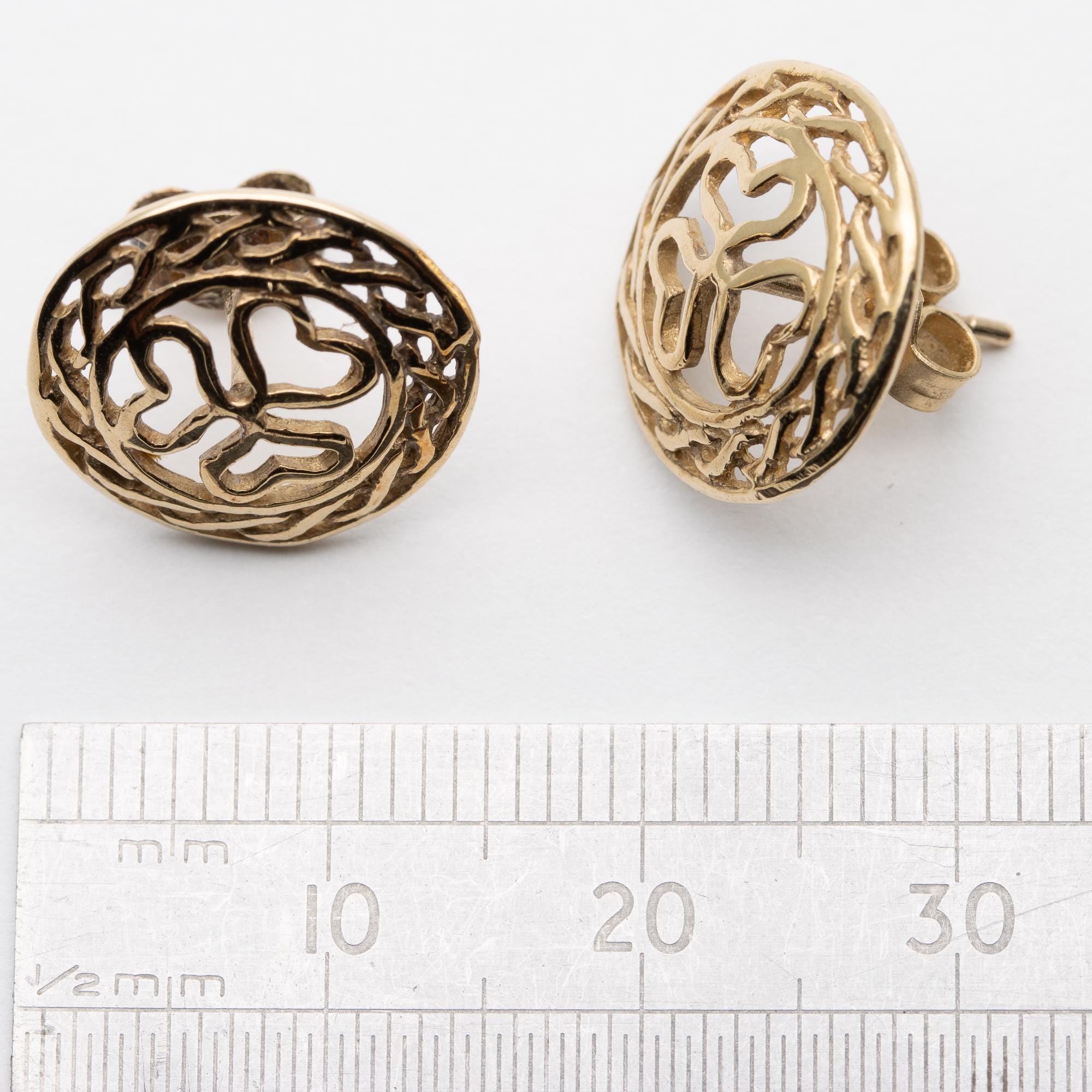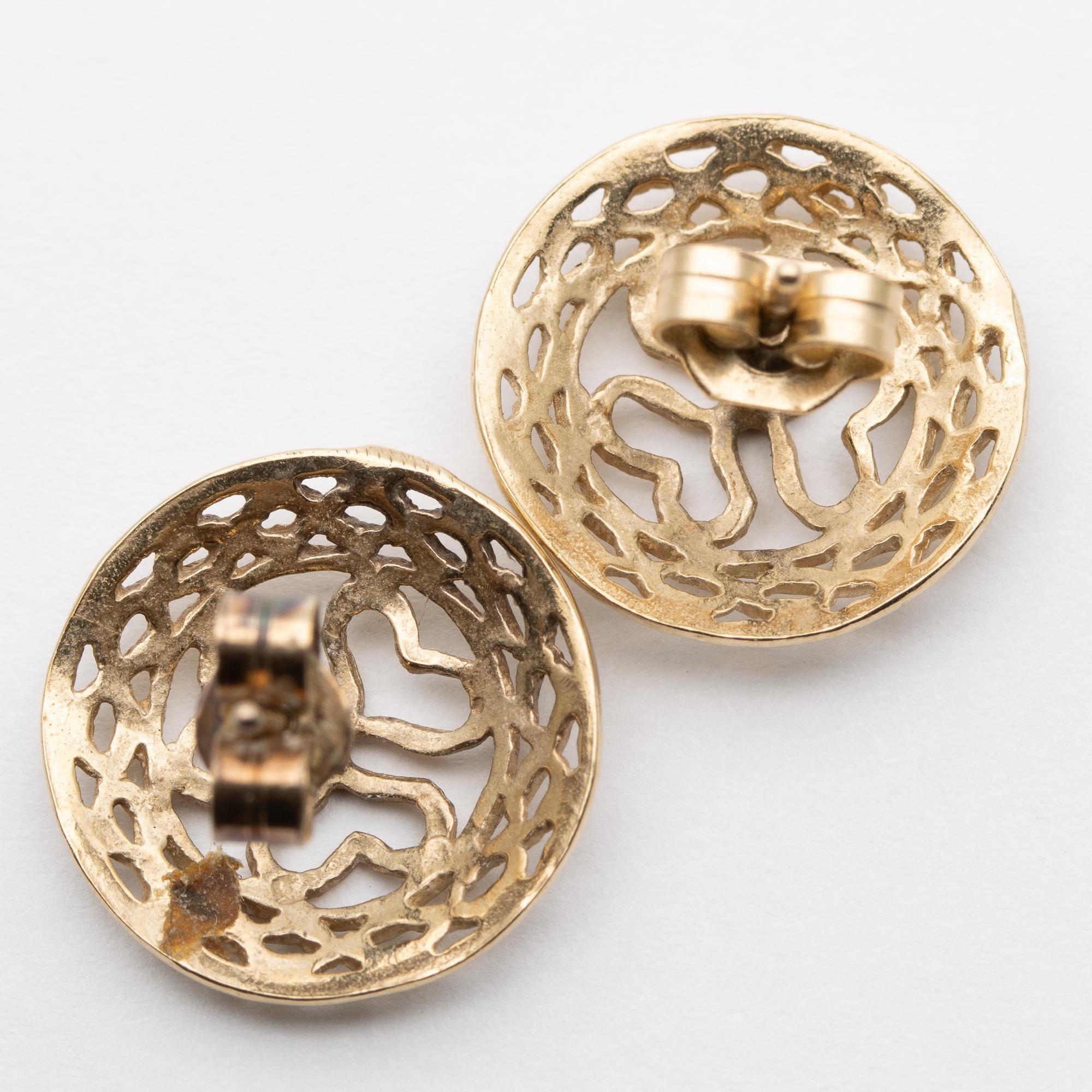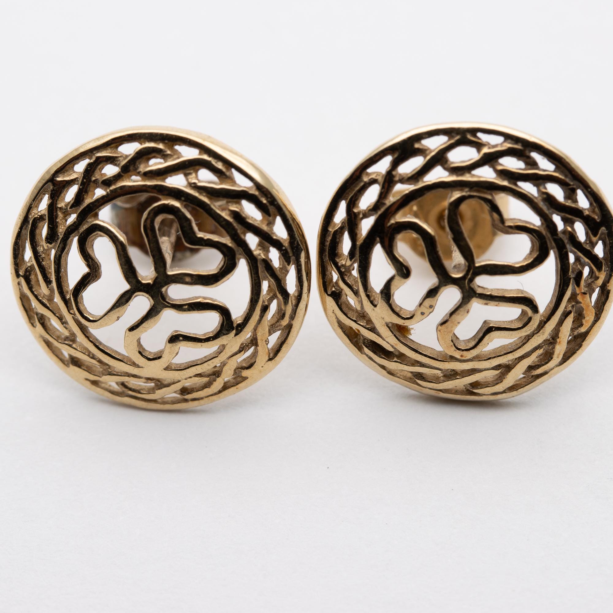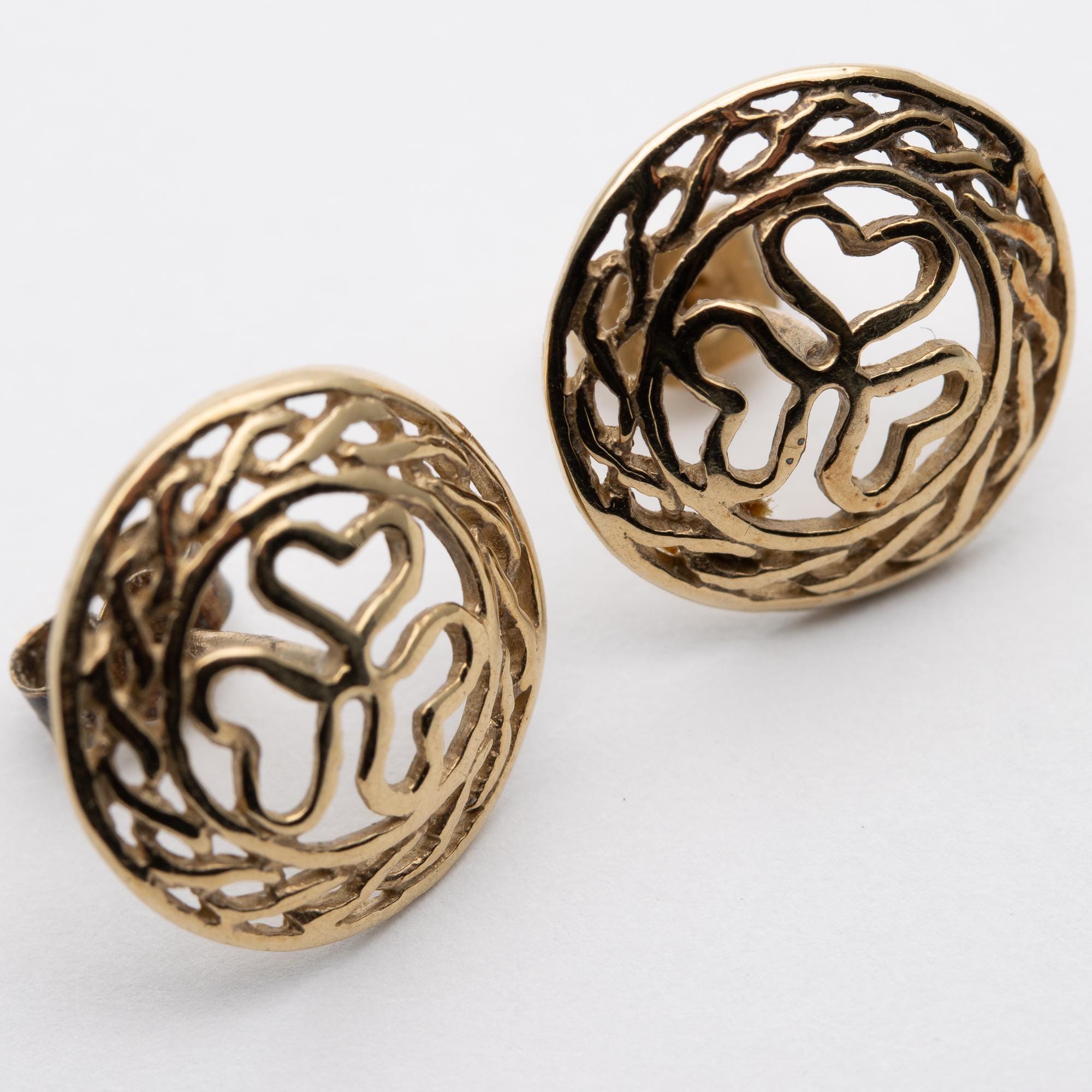Pretty Vintage 9ct Yellow Gold Celtic Lovers Endless Knot Lucky Shamrock Heart Stud Earrings