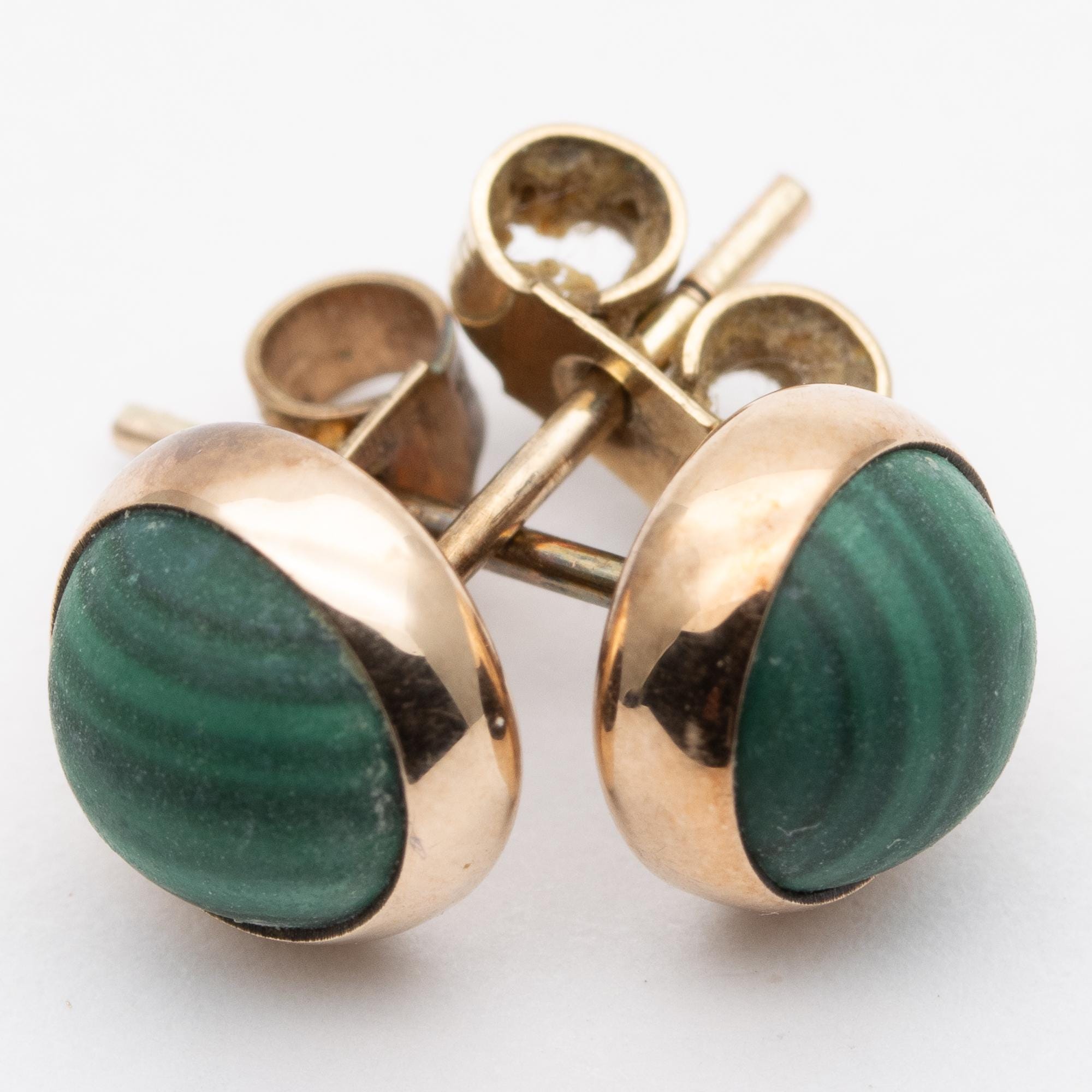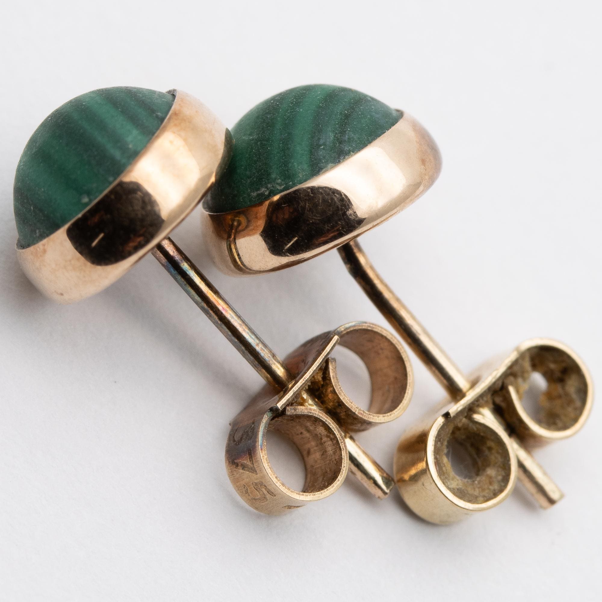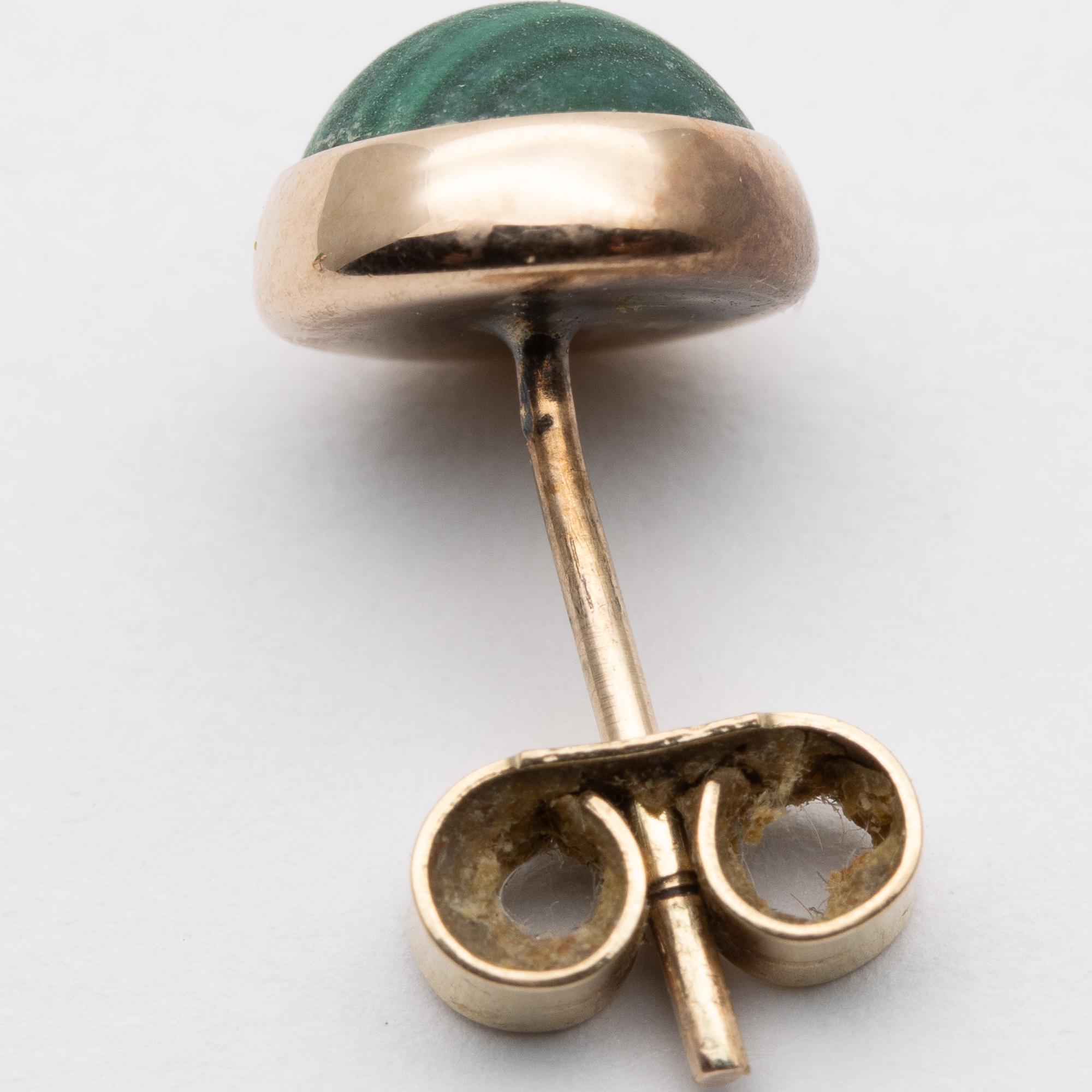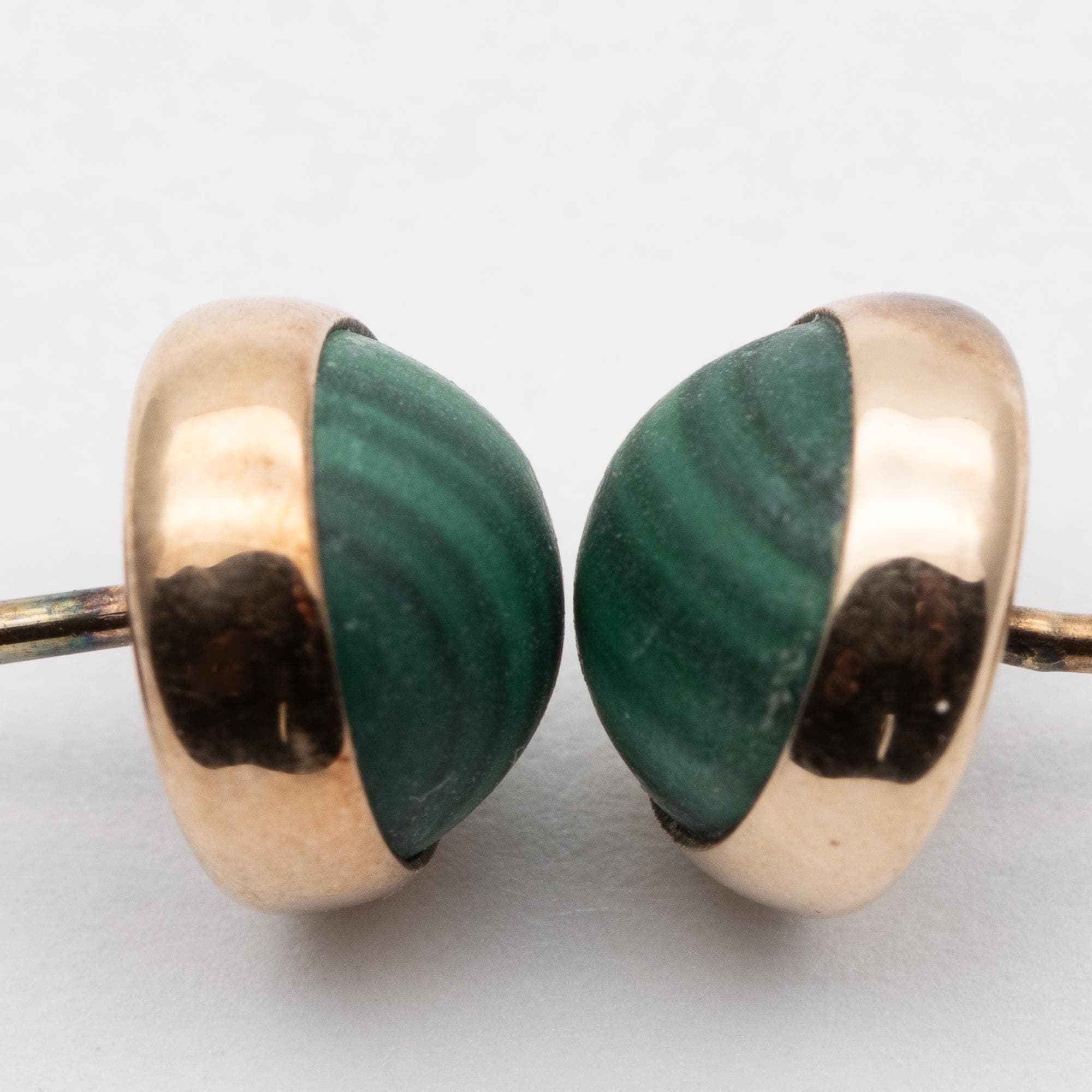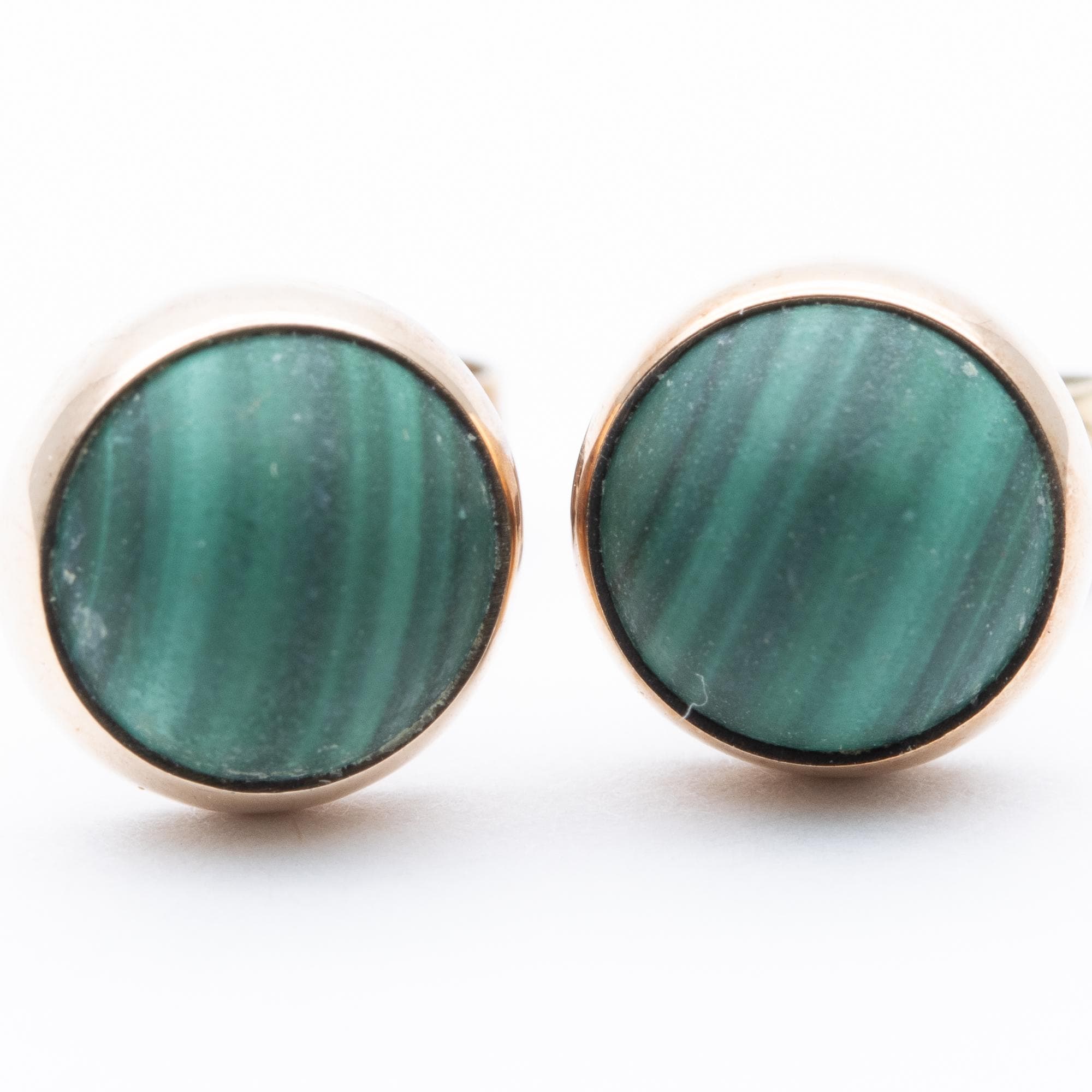 in good used condition. Elegant green malachite earrings in rose gold for pierced ears with butterfly backs.