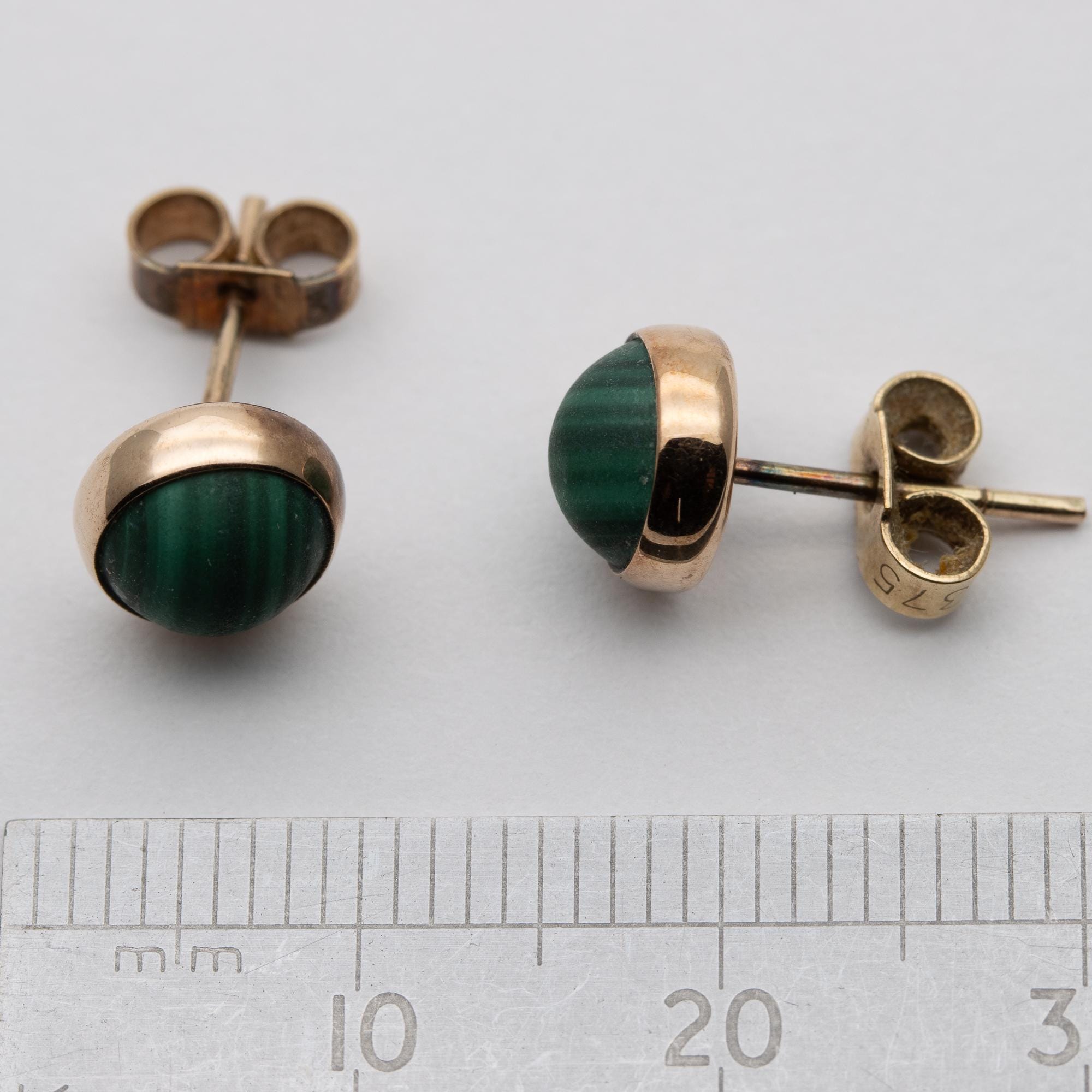 Pretty Vintage 9ct Rose Gold Malachite Stud Earrings