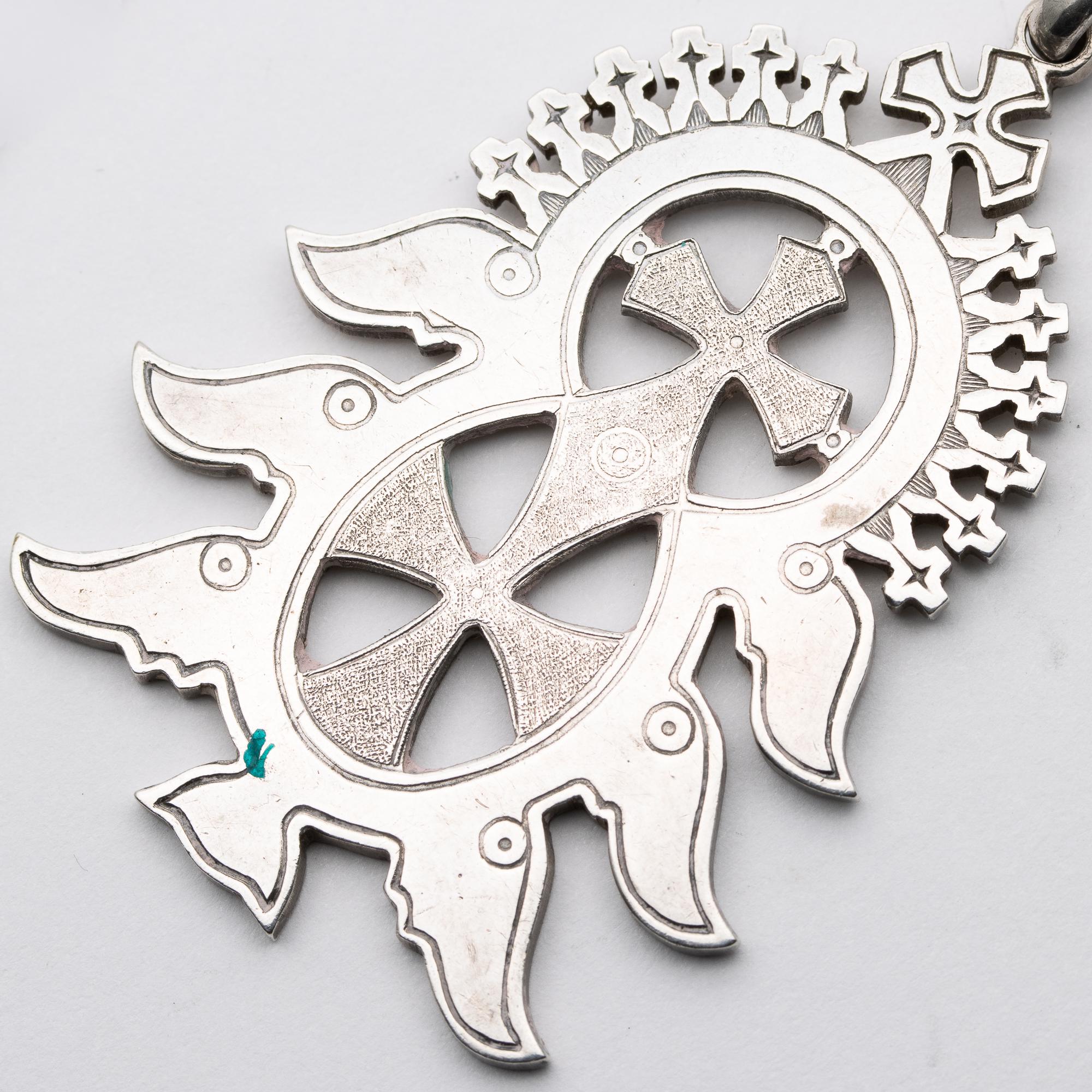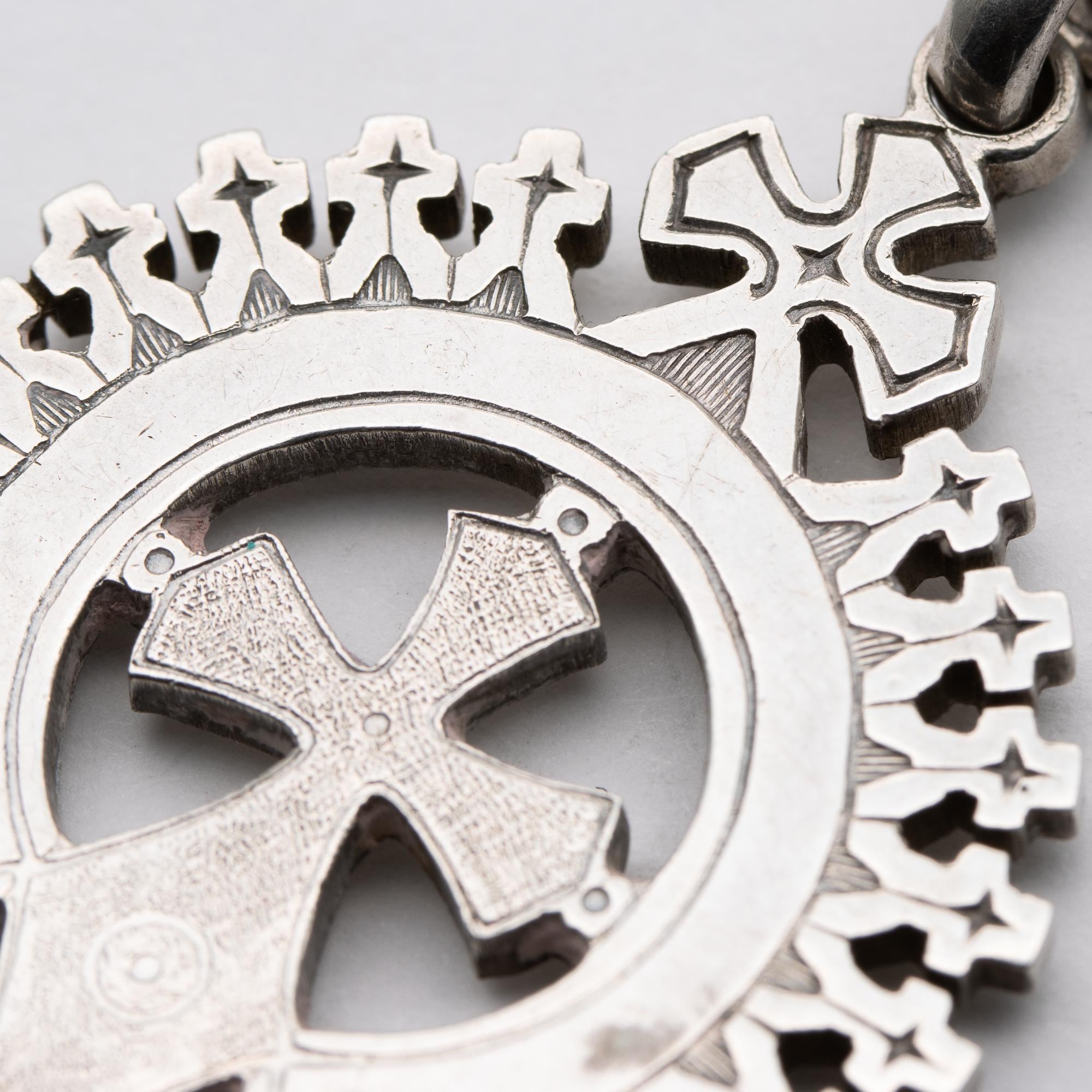 Striking Vintage Ethiopian Silver Coptic Cross Pendant Necklace