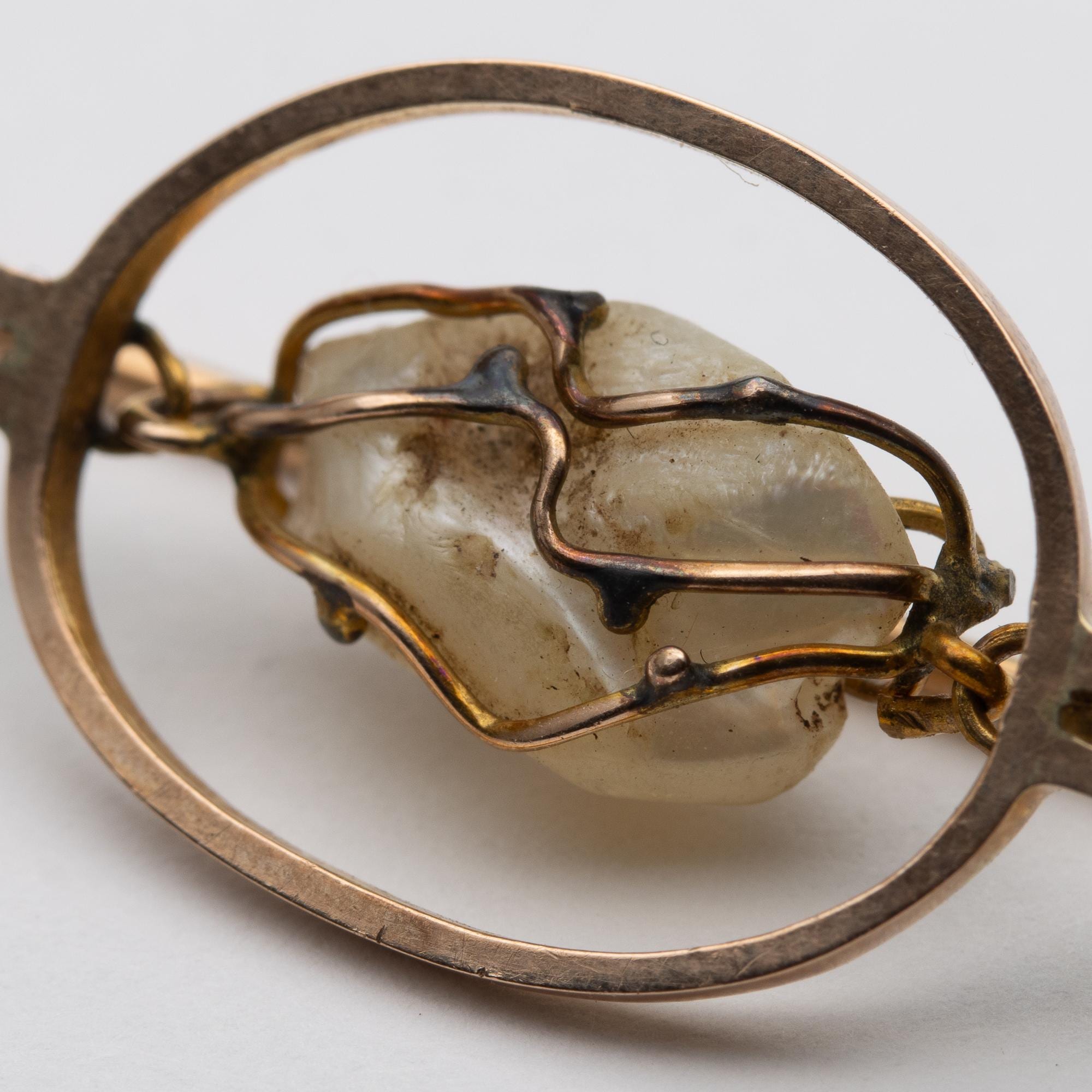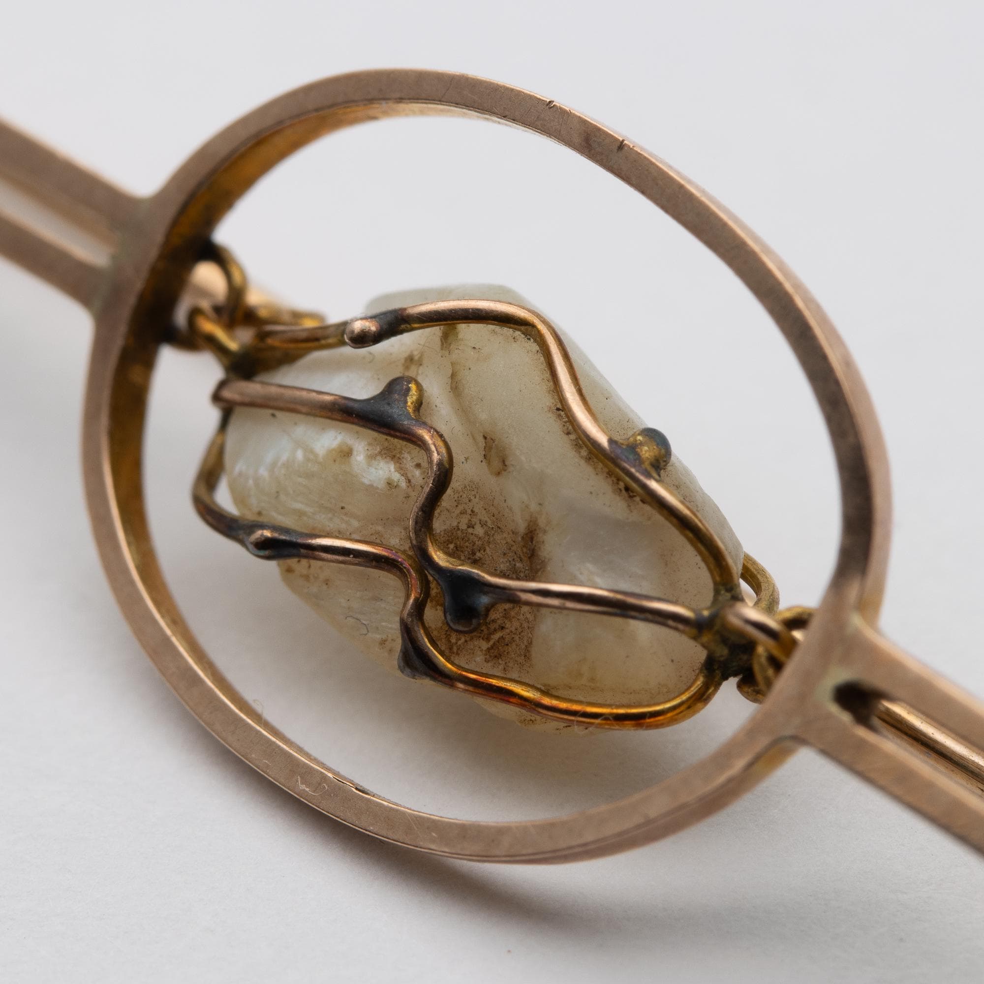Pretty Antique Art Deco 9ct Rose Gold Baroque Freshwater Pearl Brooch