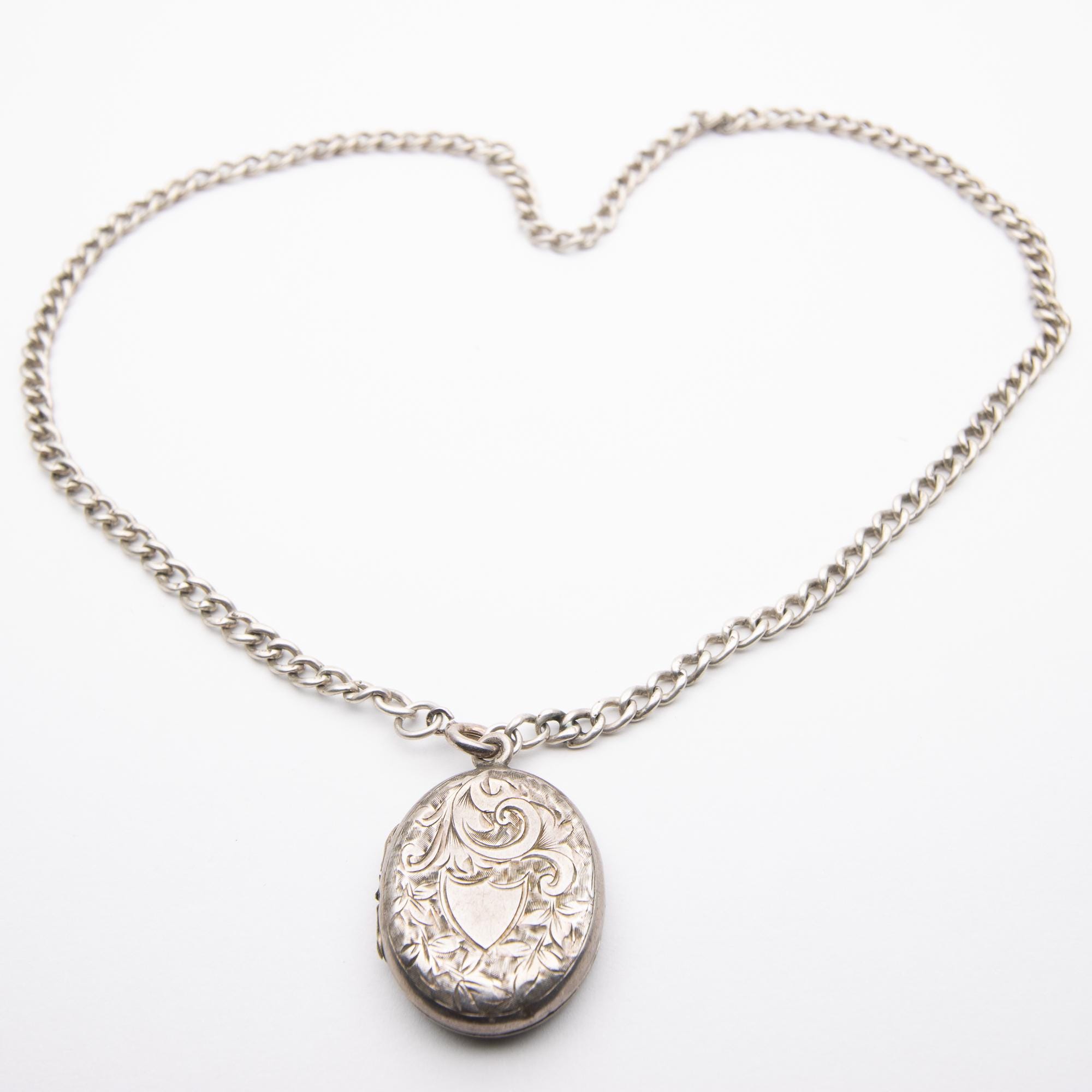 Sweet Antique Edwardian Chester Silver Locket & Chain