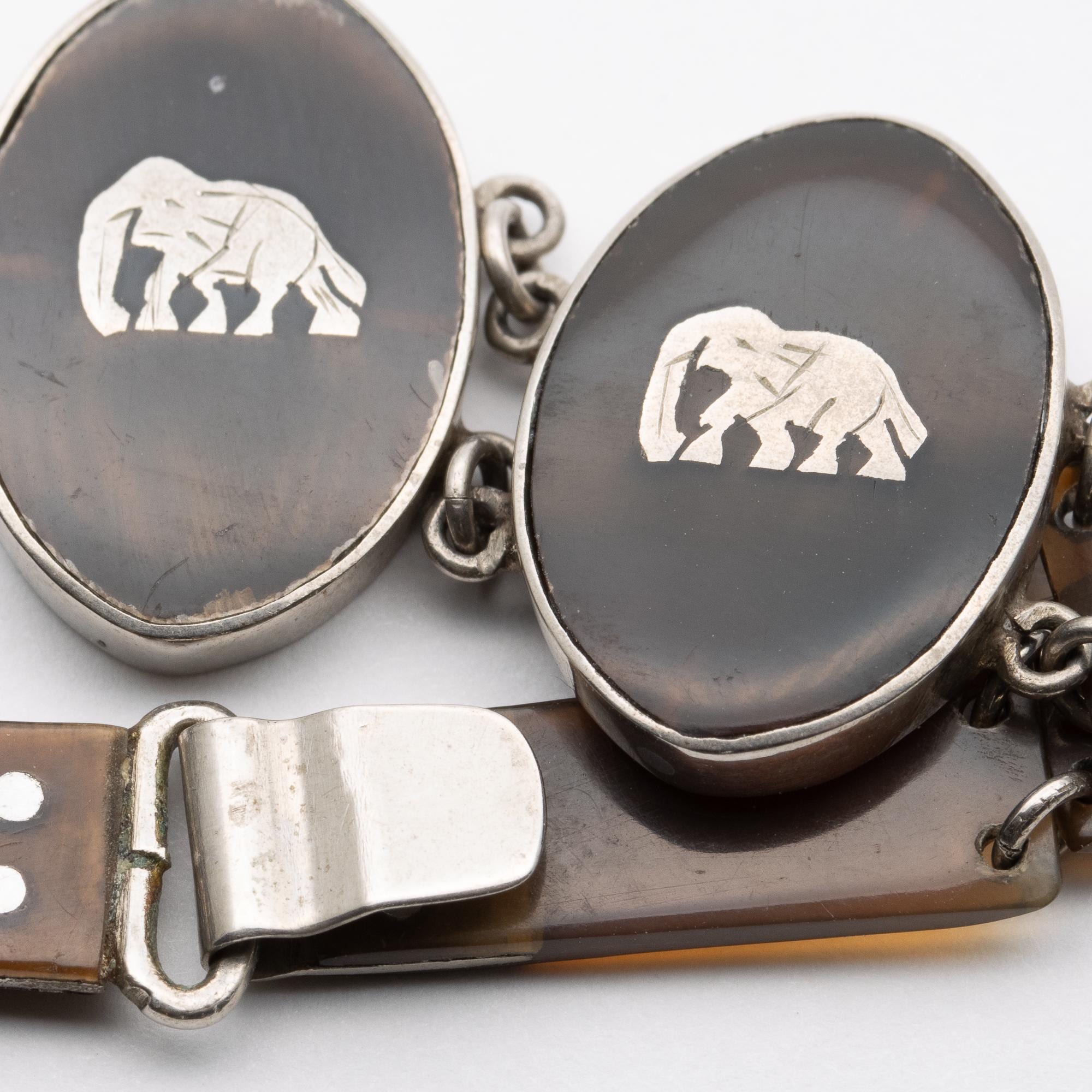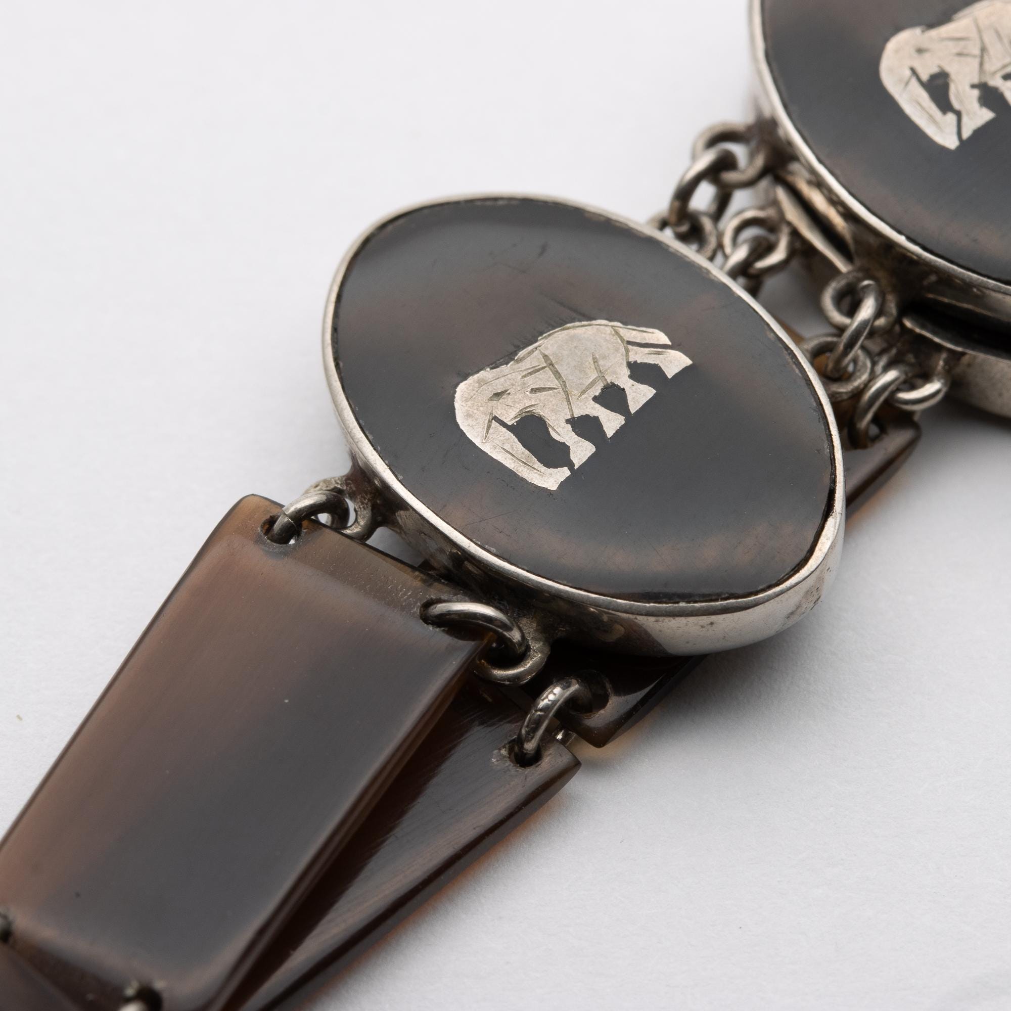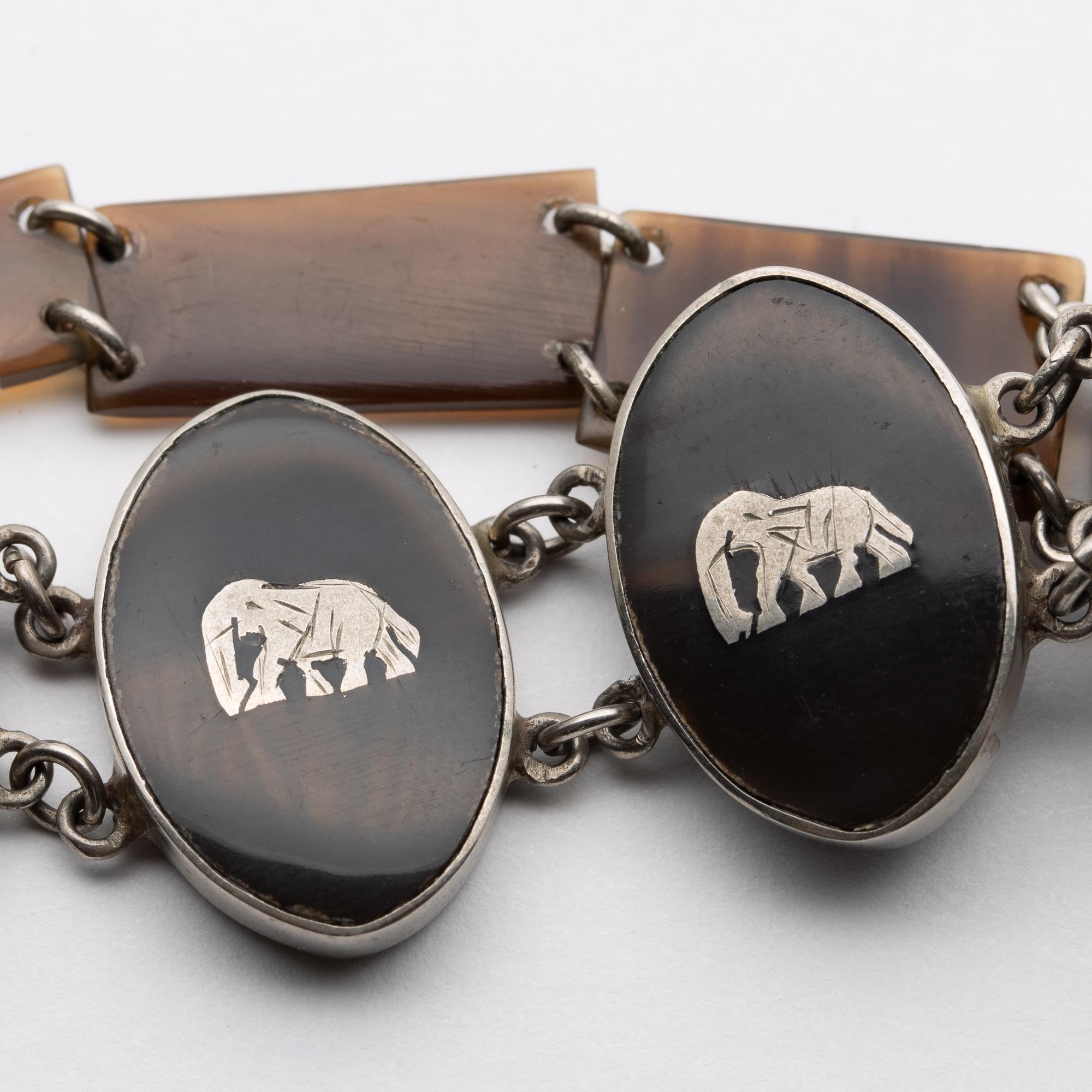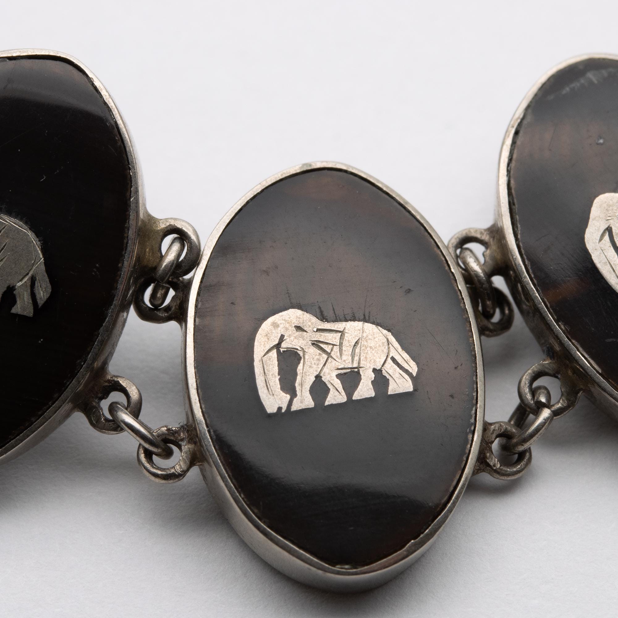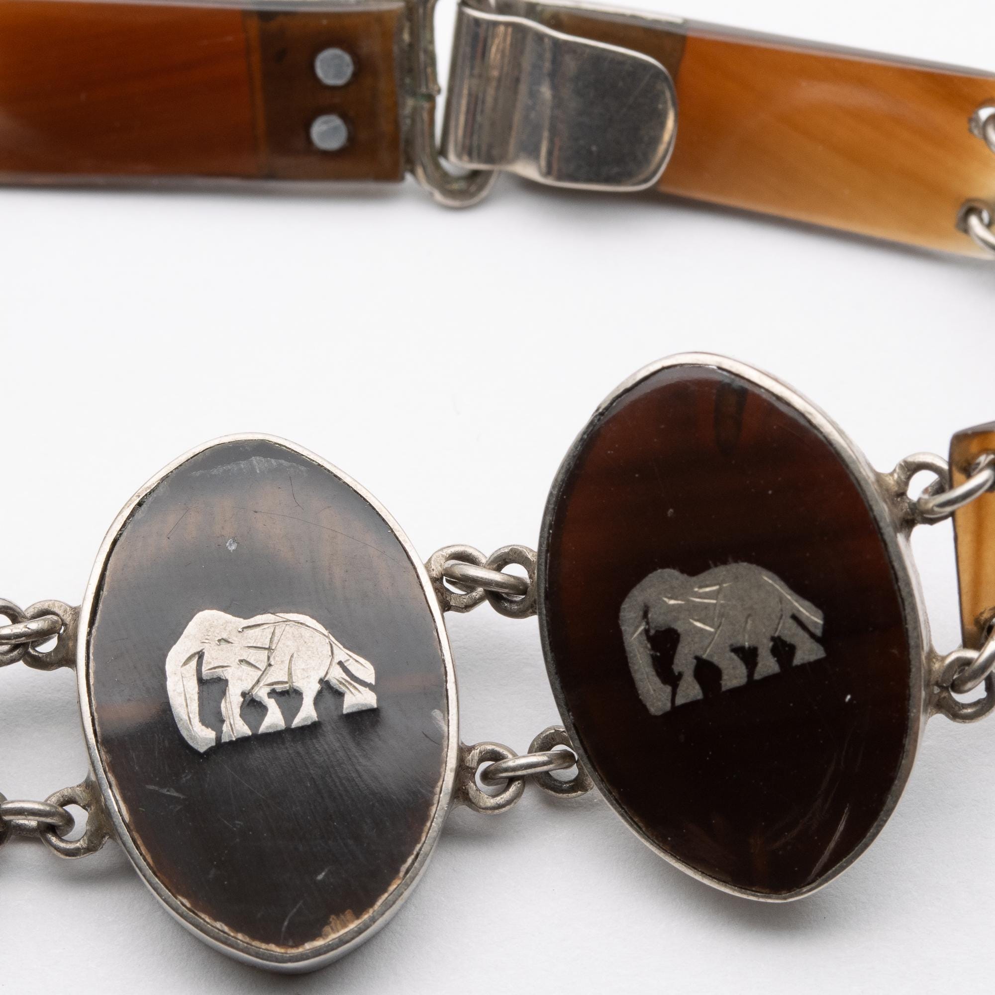 Gorgeous Antique Art Deco African Silver Celluloid Elephant Bracelet