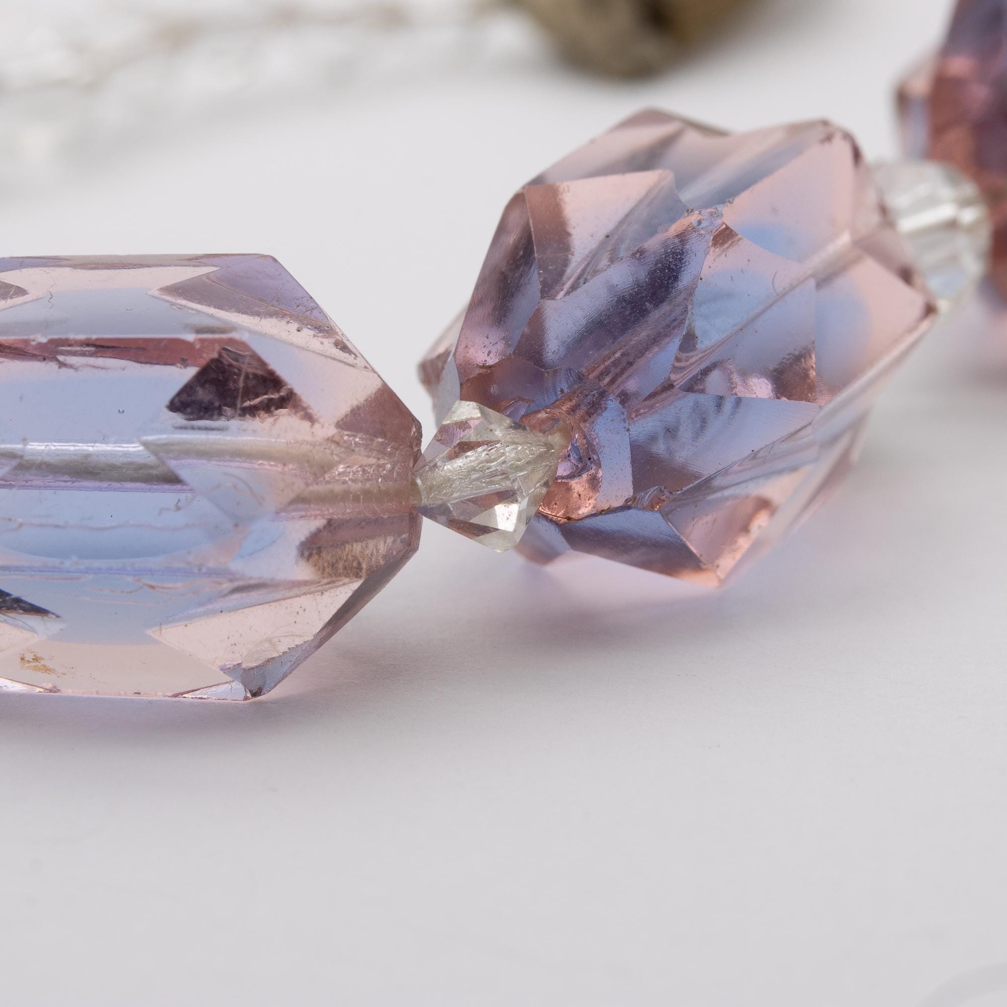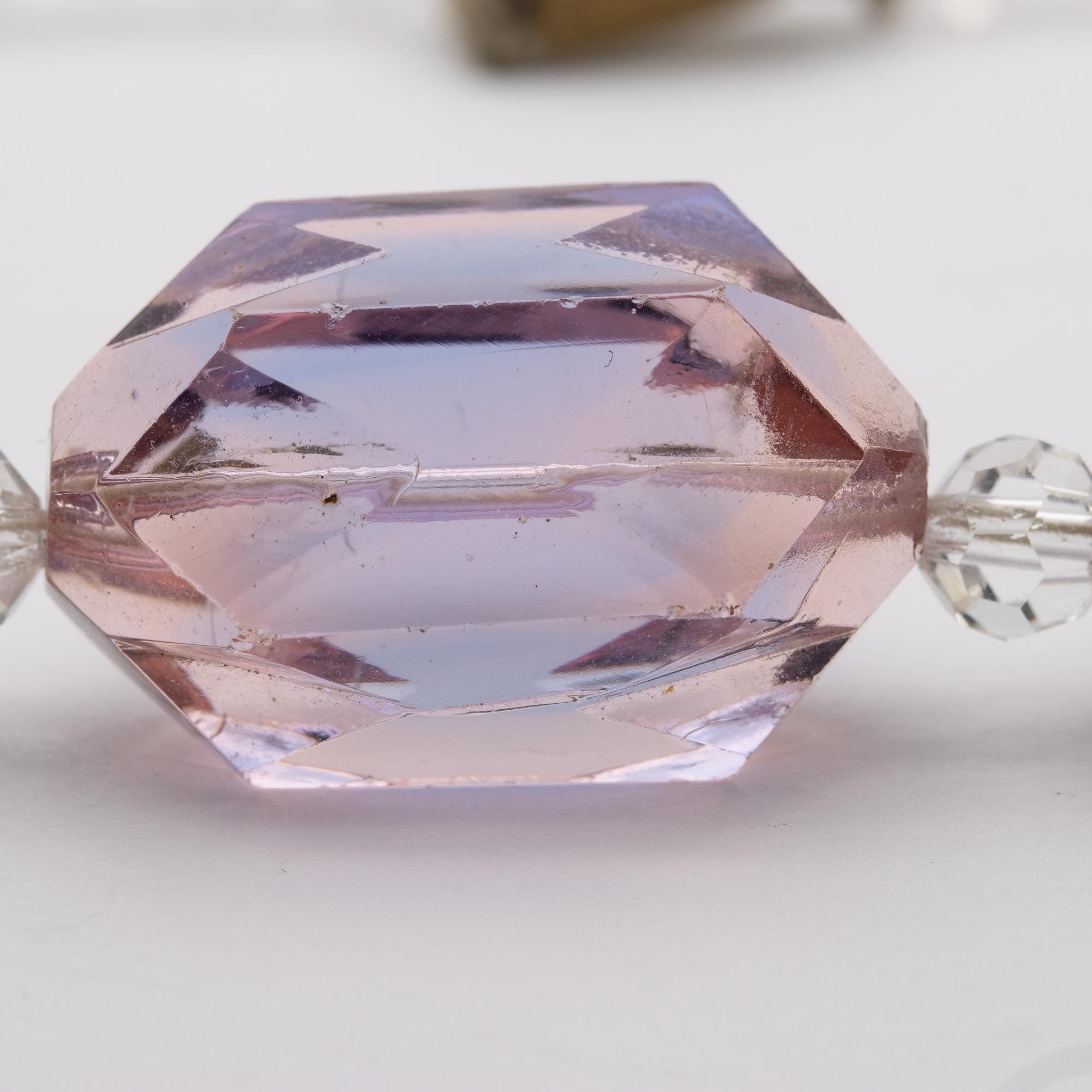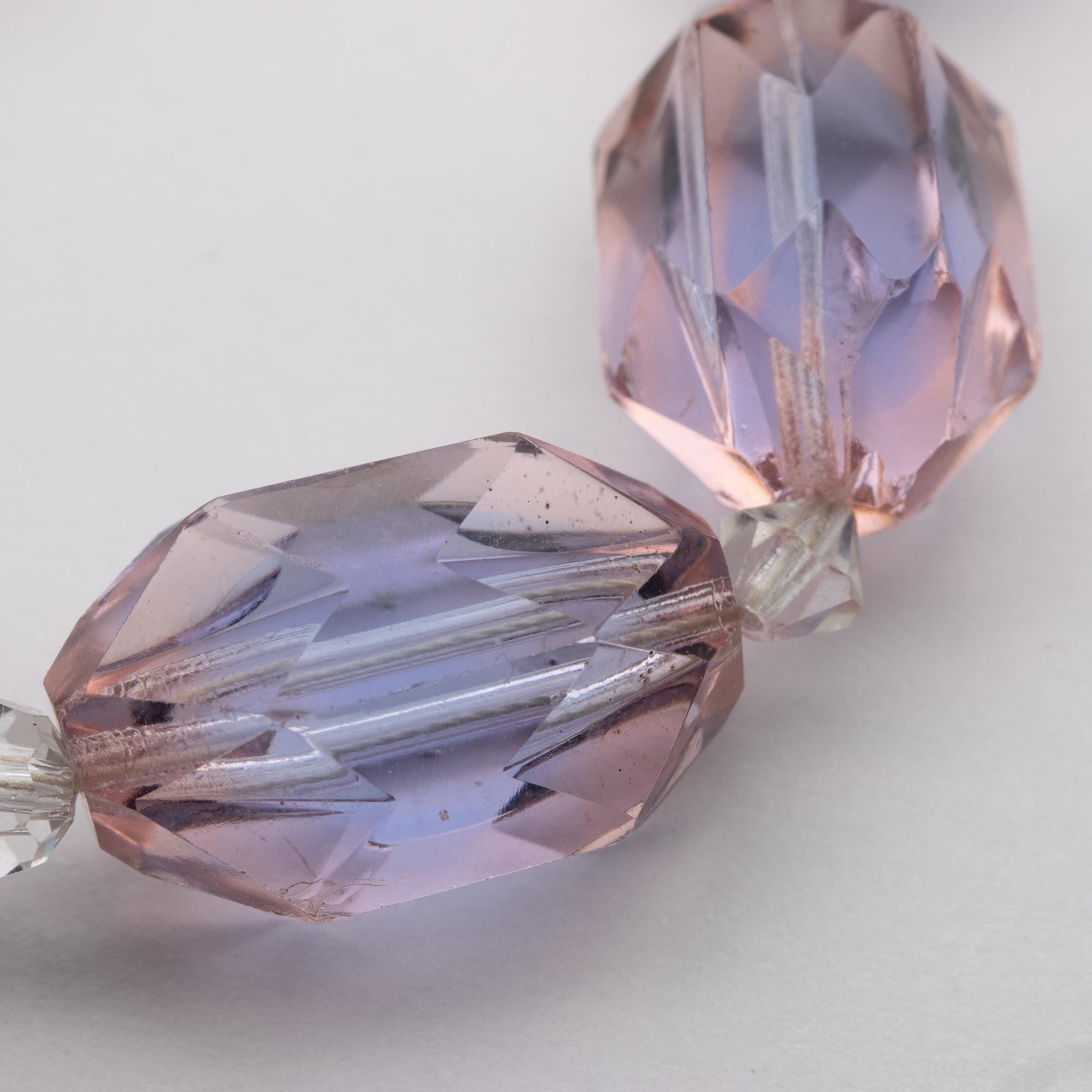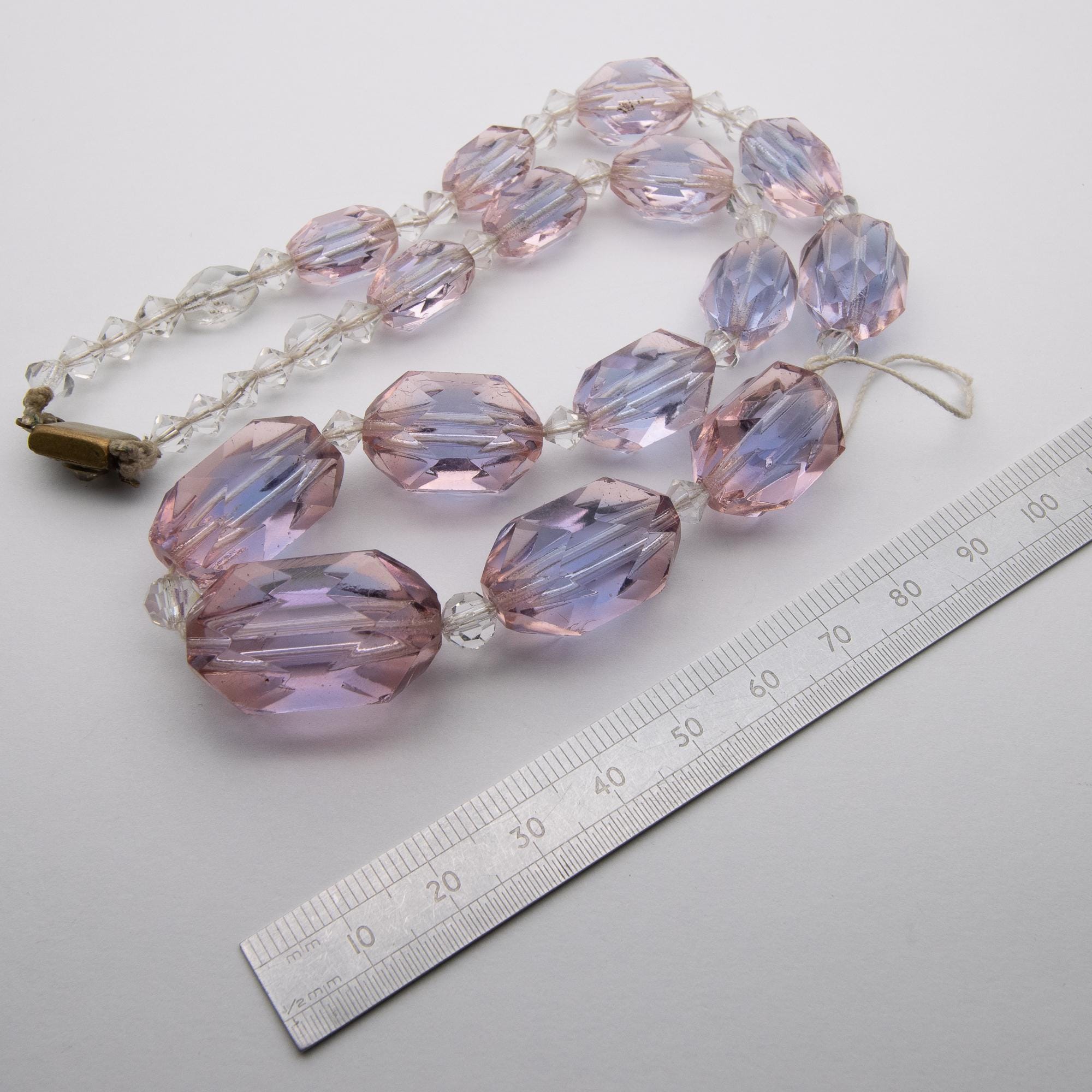 Striking Antique Art Deco UV Selenium Pink Purple Fluorescent Glass Bead Necklace - Restring