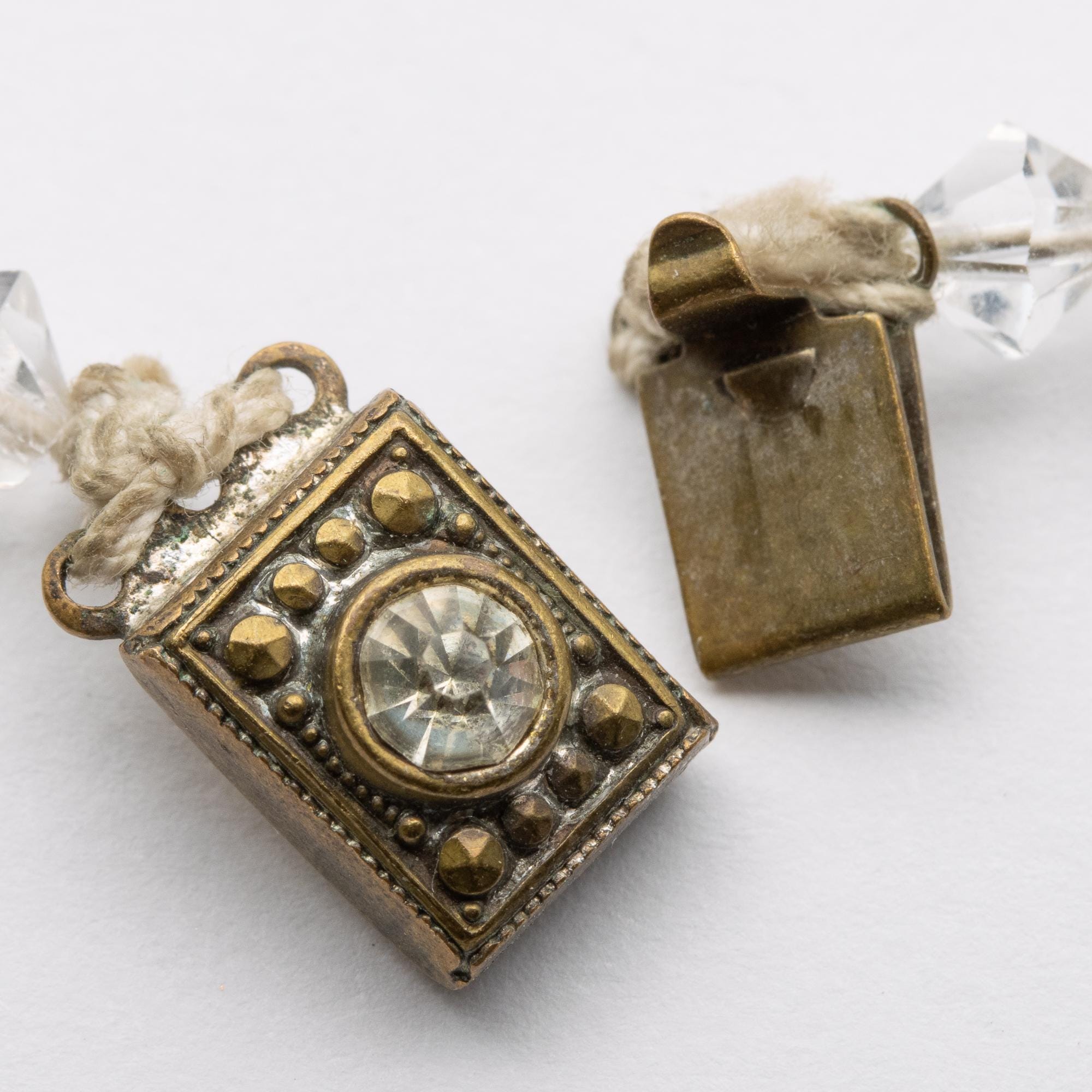 in good used condition. Cool UV glass beads likely doped with selenium as they fluoresce purple.