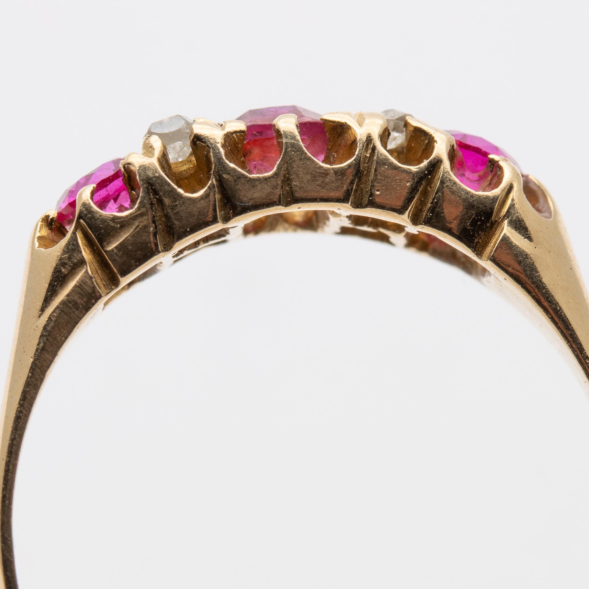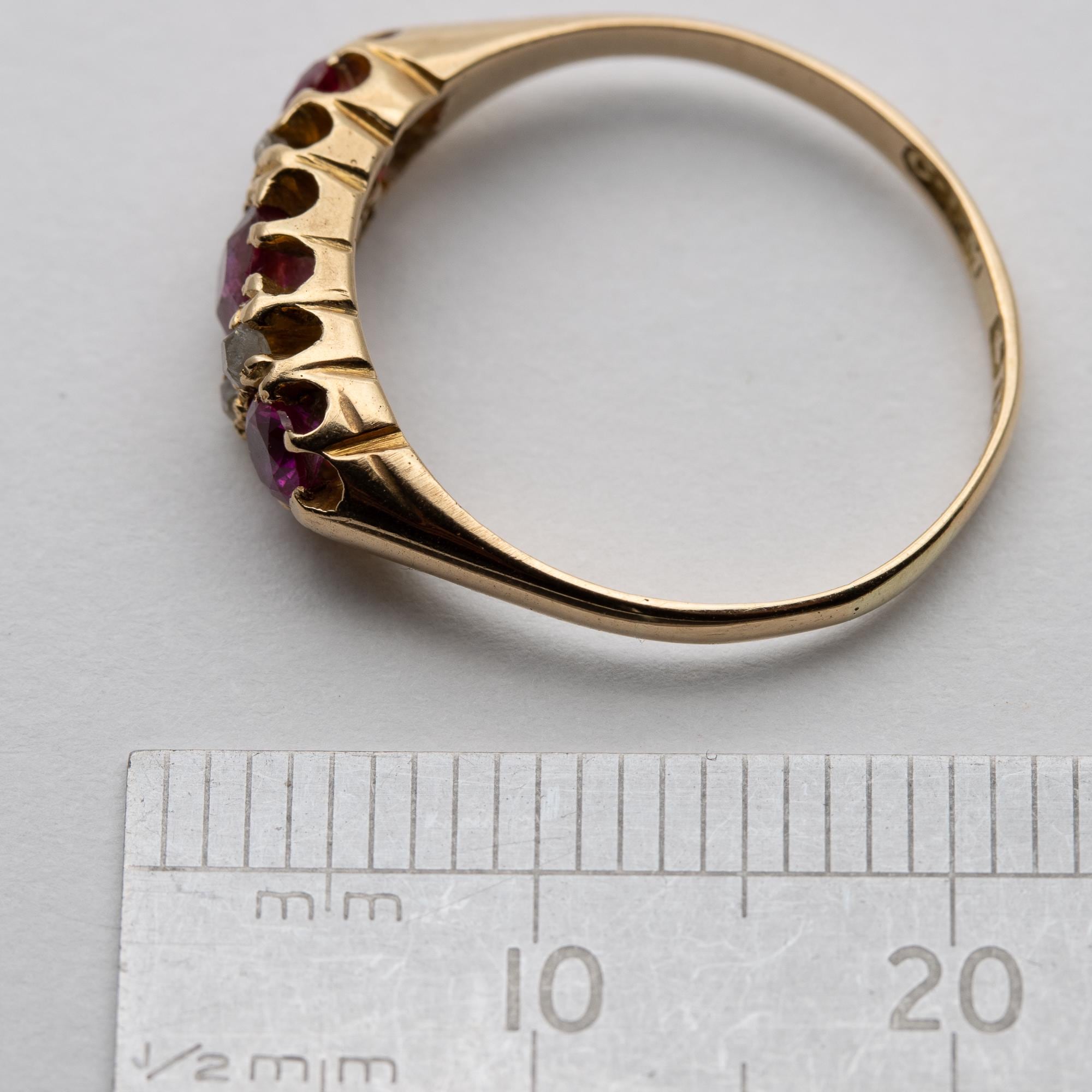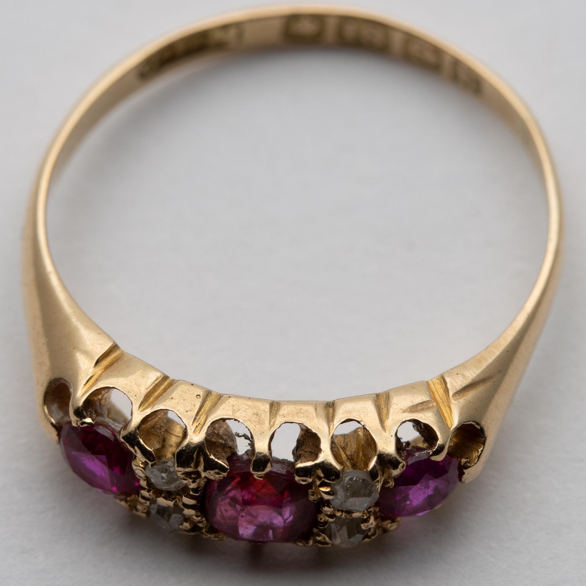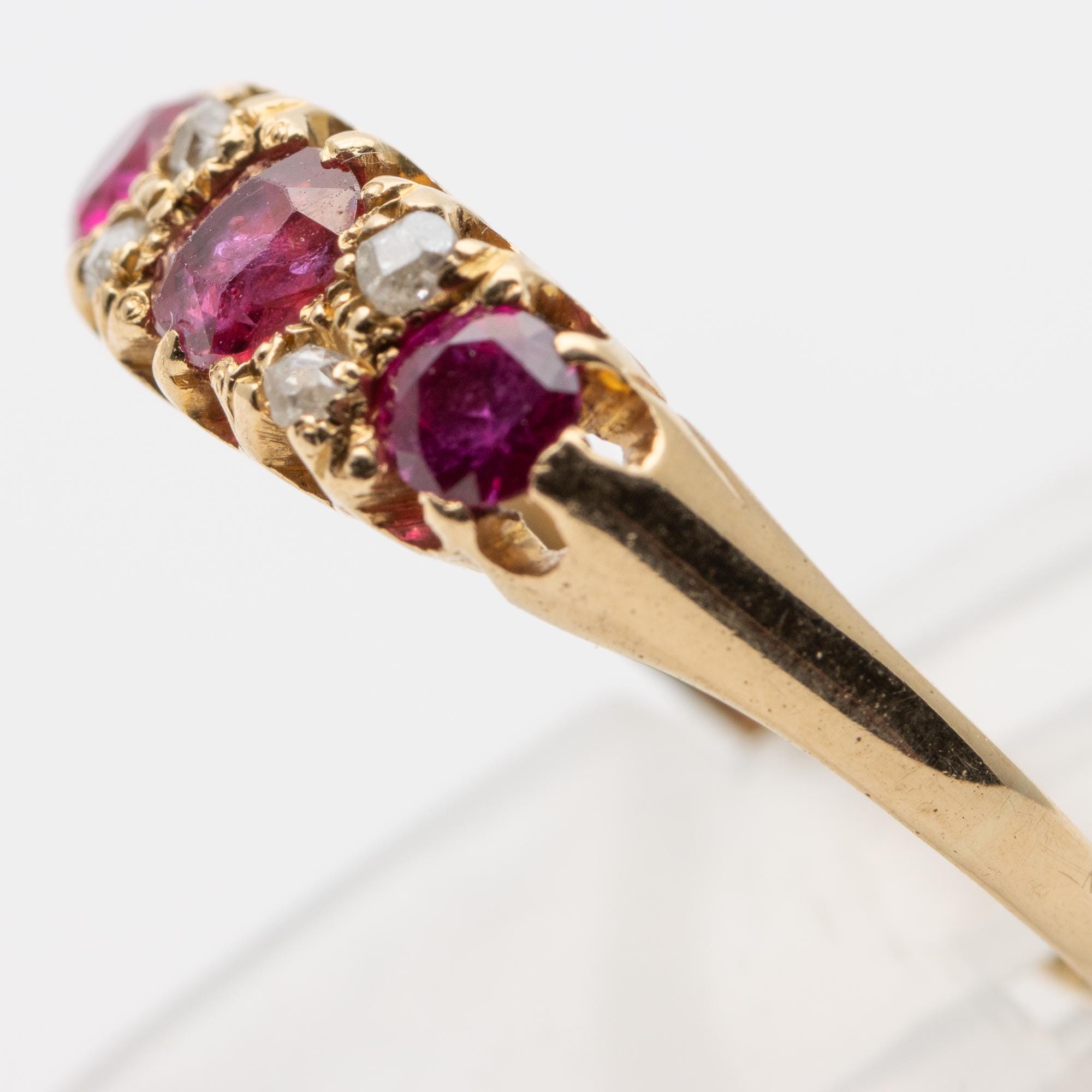 Pretty Antique Edwardian 1907 Ruby & Diamond 18ct Boat Ring