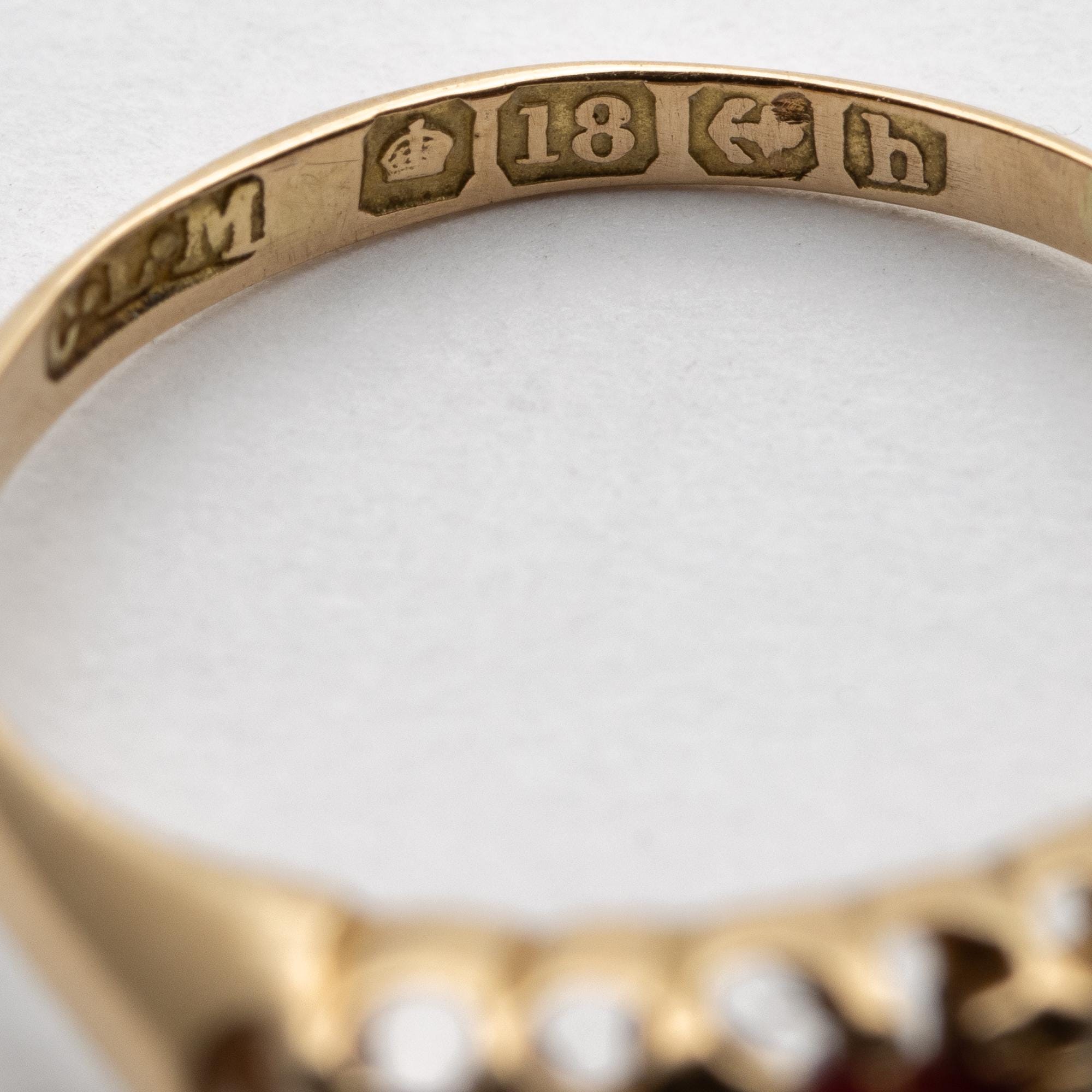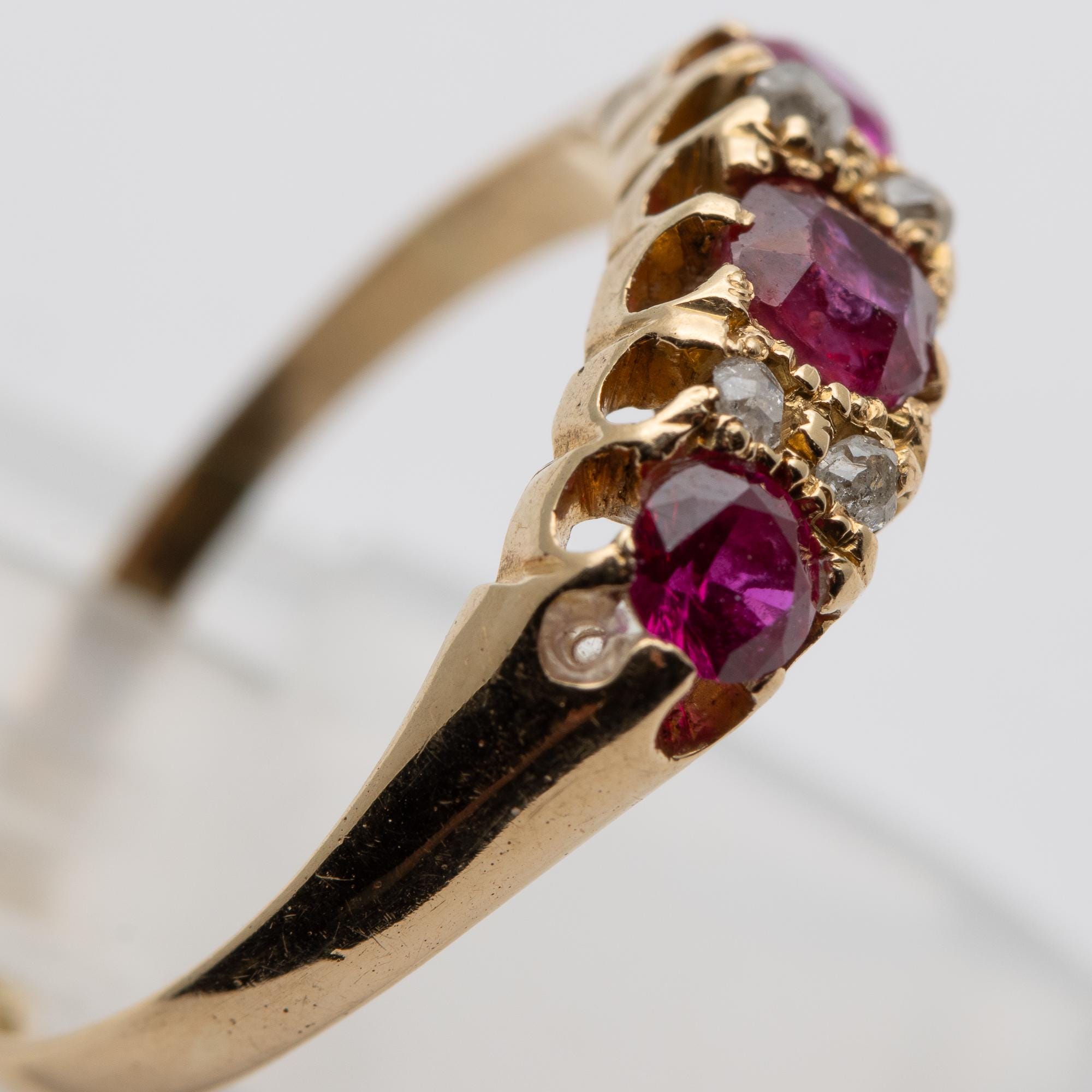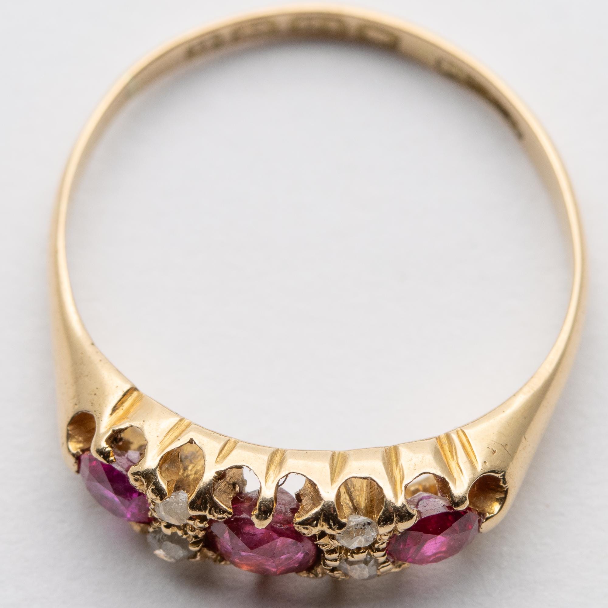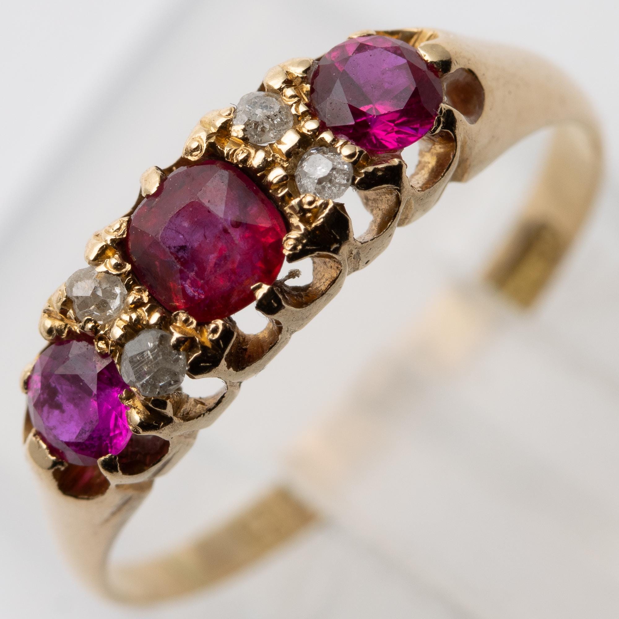 Pretty Antique Edwardian 1907 Ruby & Diamond 18ct Boat Ring