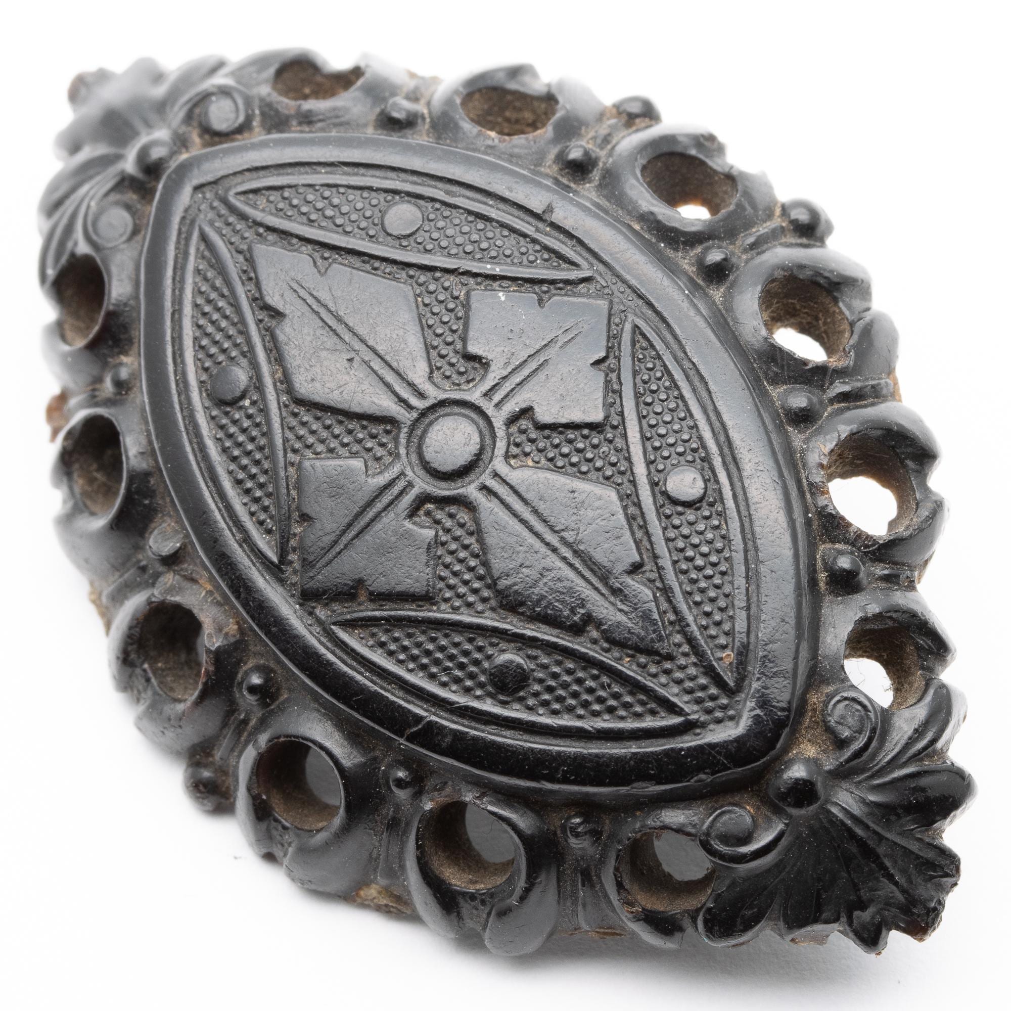 Classic Antique Victorian Pressed Horn Mourning Brooch