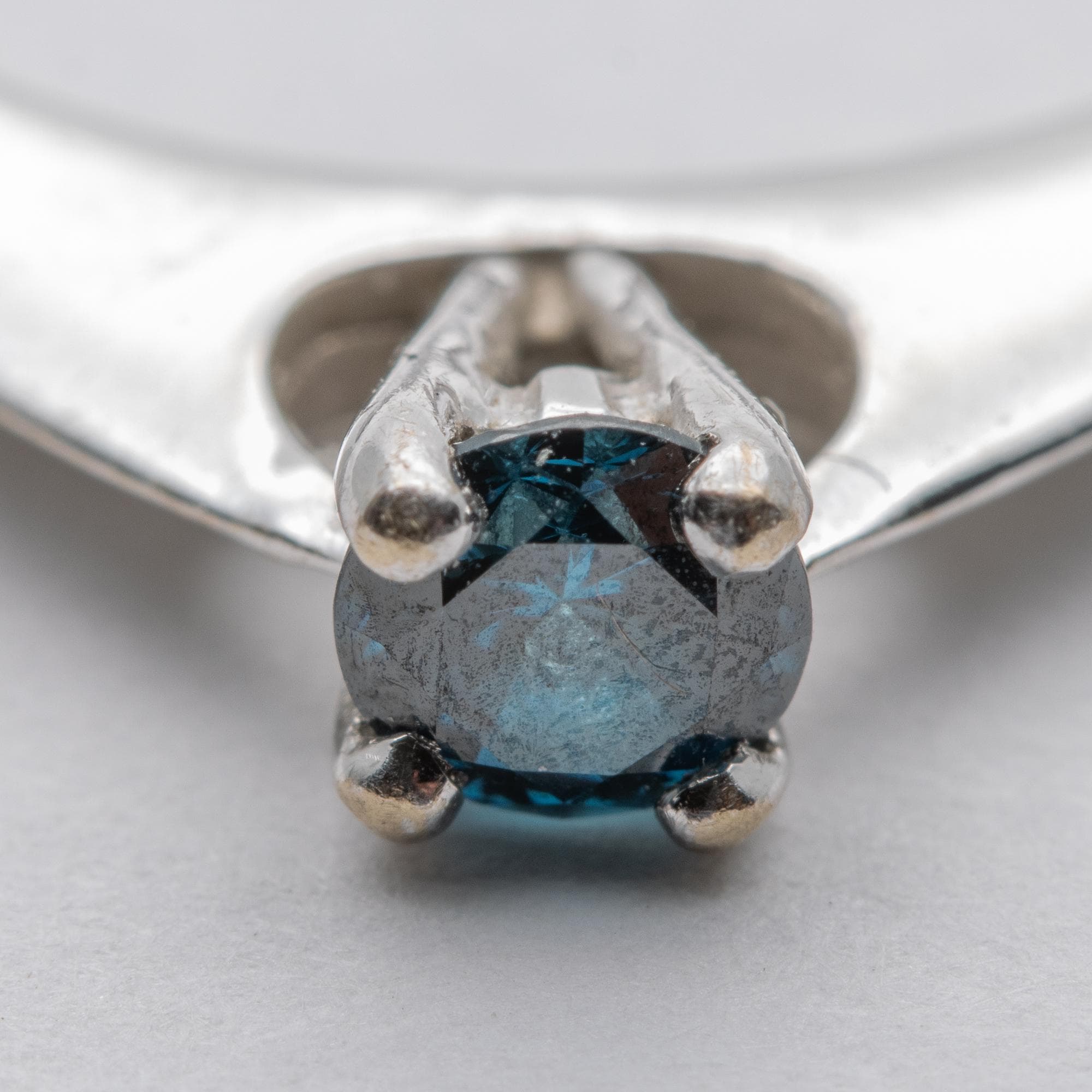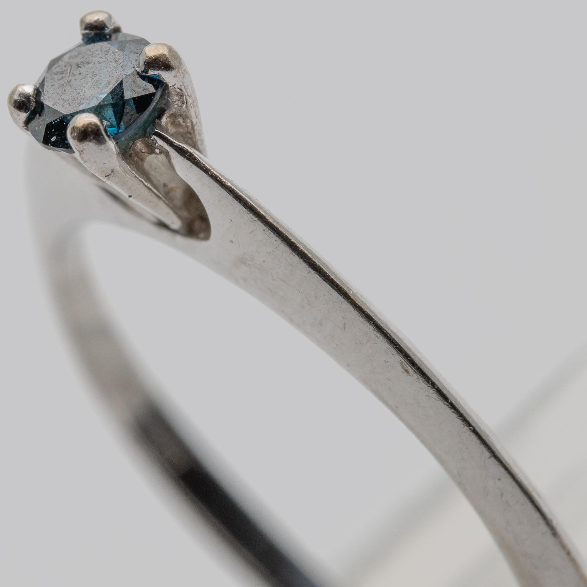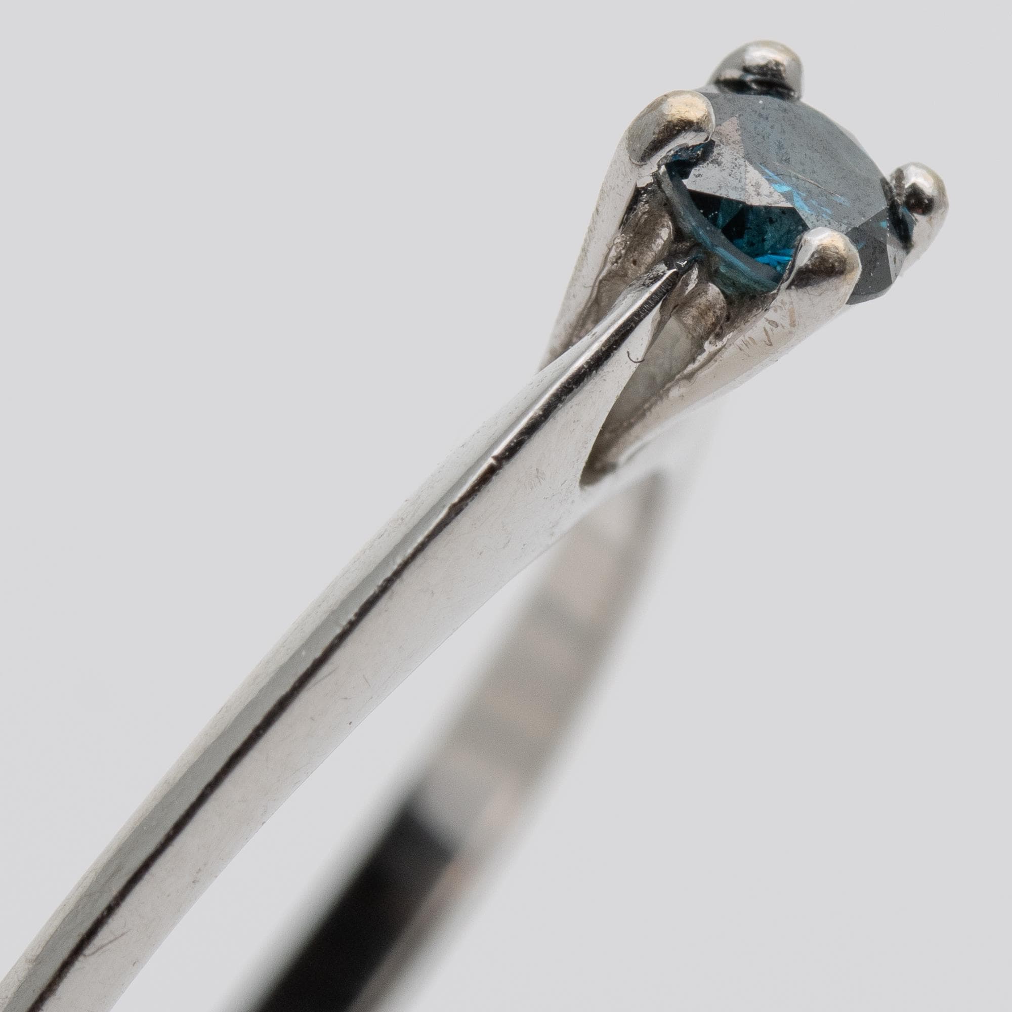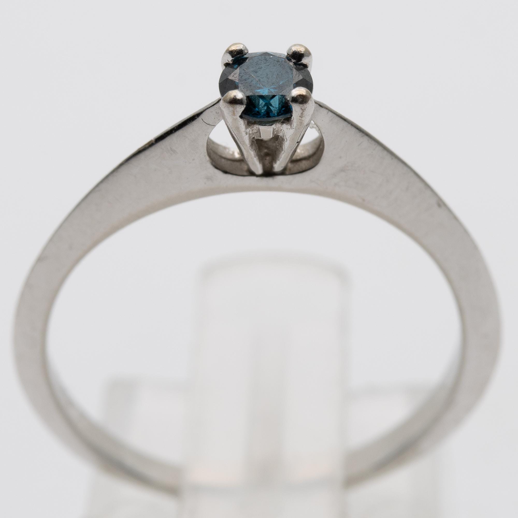 Unusual 18ct White Gold Blue Diamond Solitaire Engagement Ring – Size N