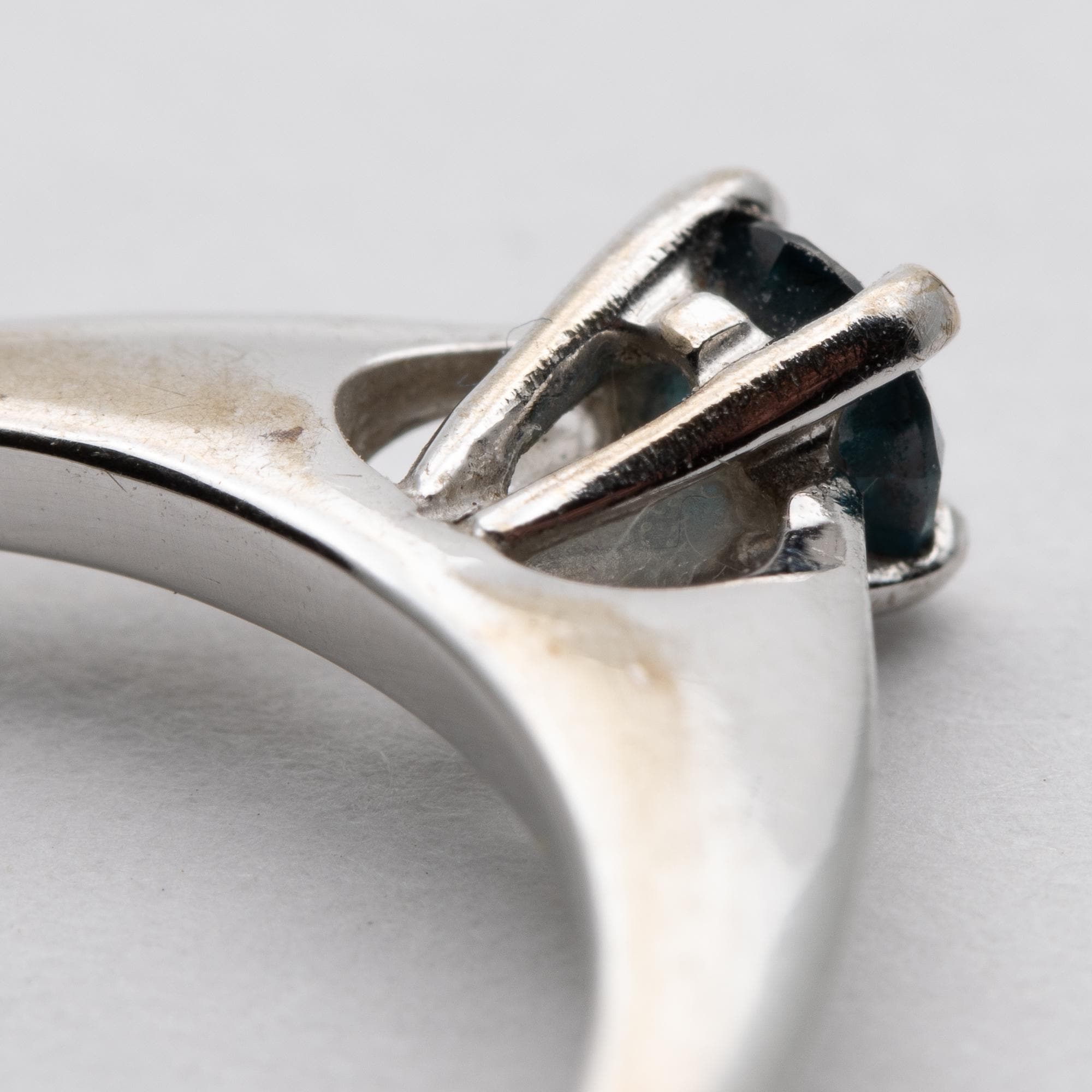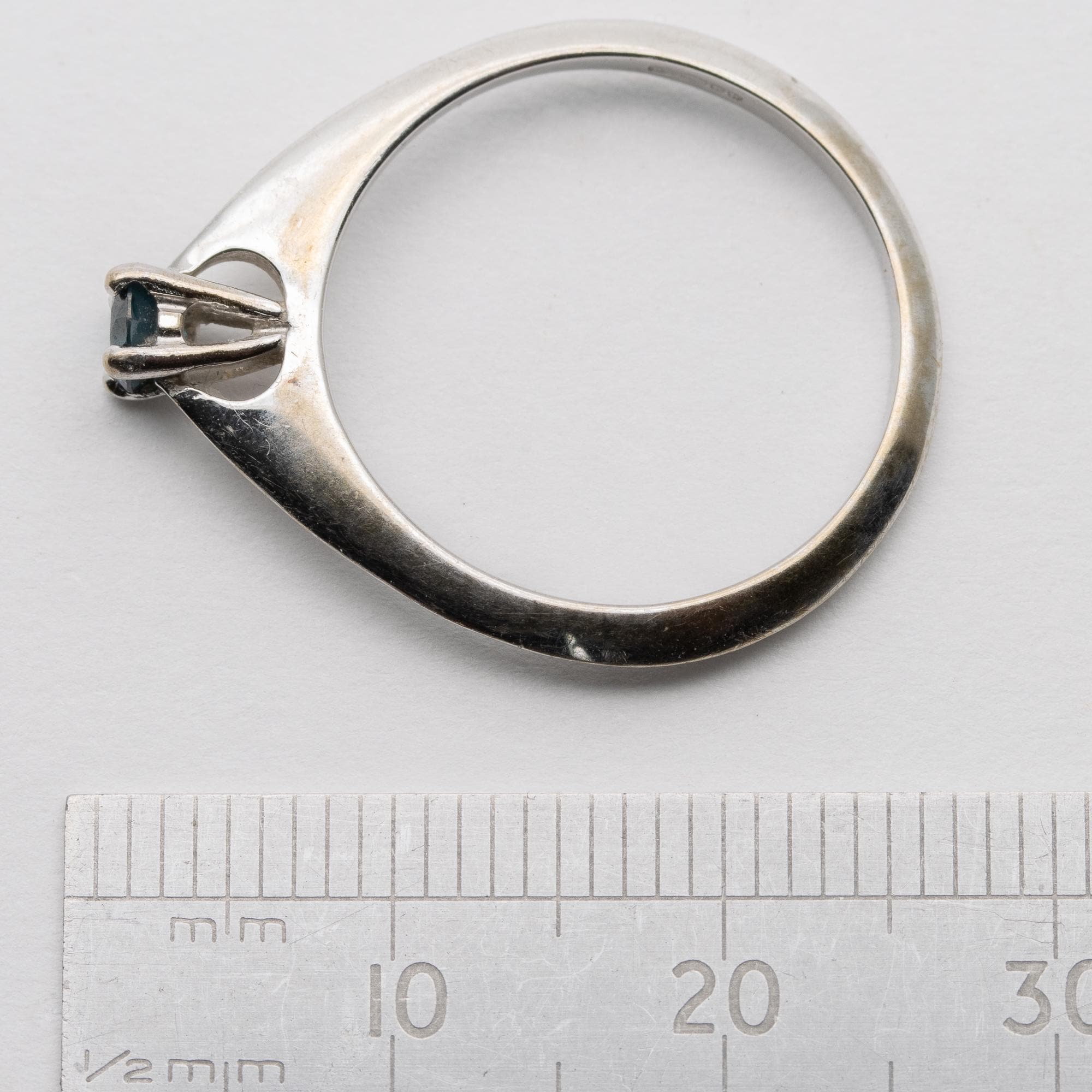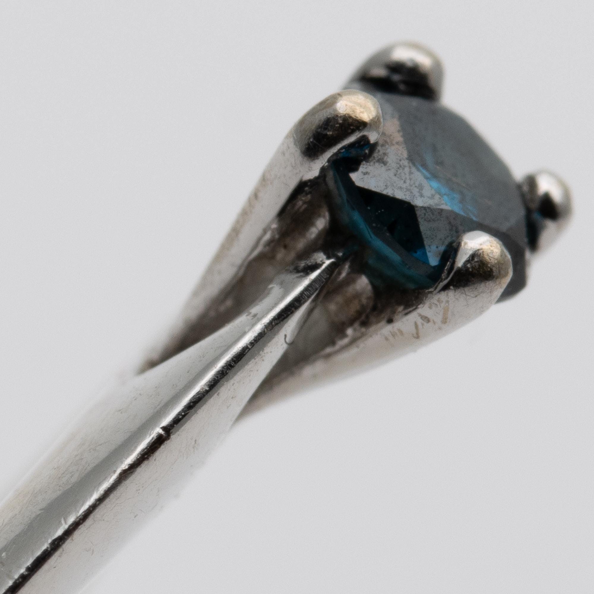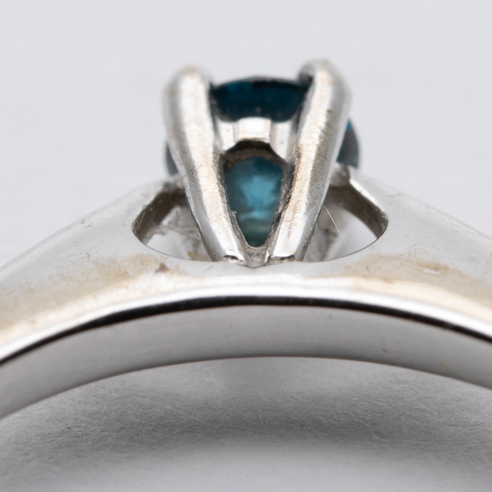 Unusual 18ct White Gold Blue Diamond Solitaire Engagement Ring – Size N