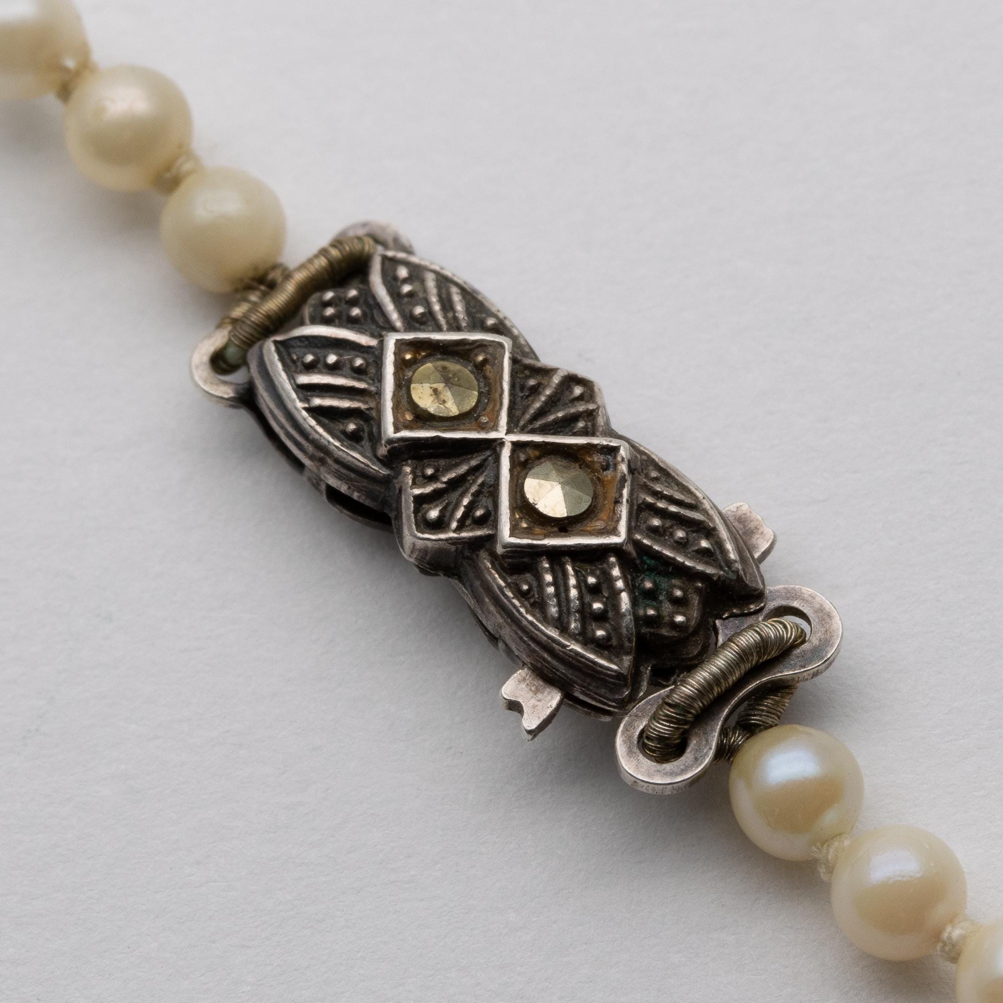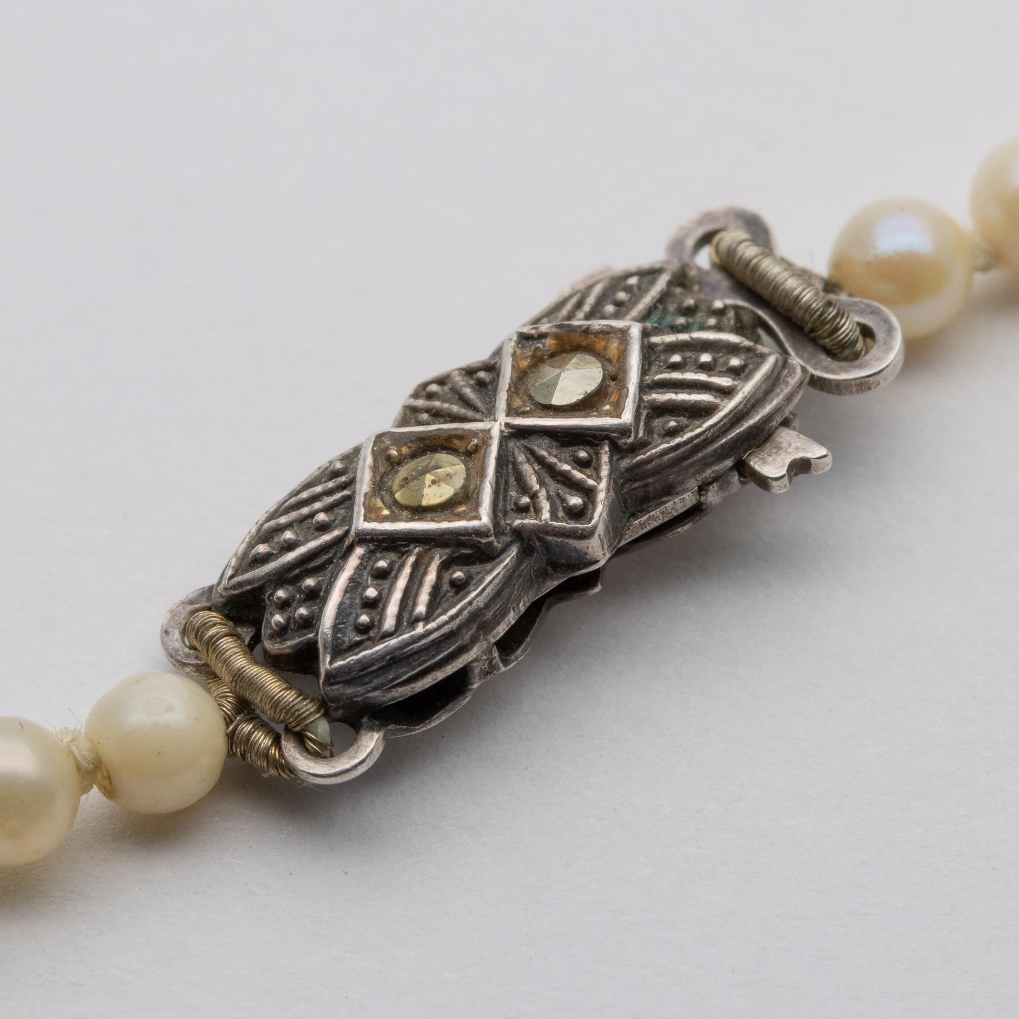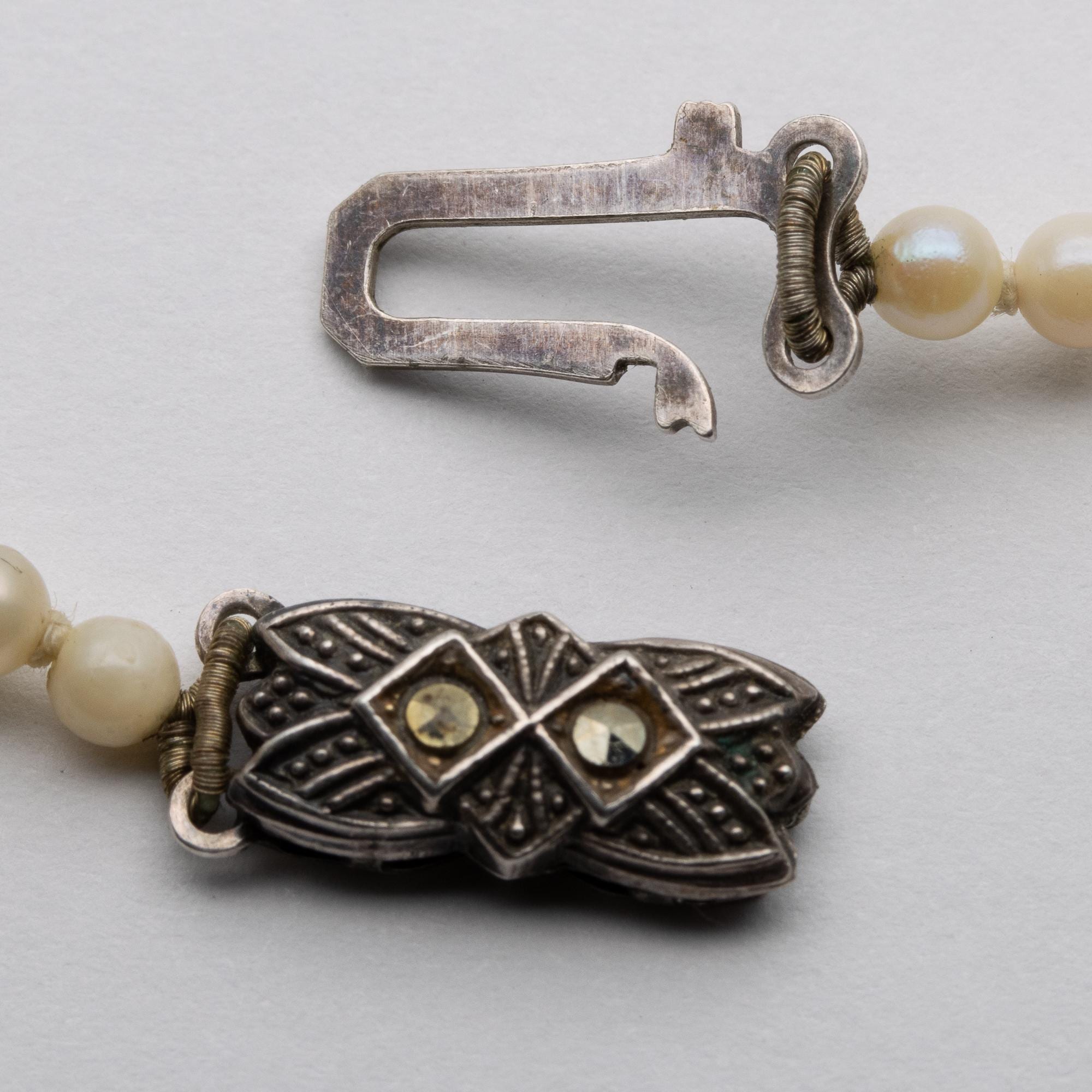 Pretty Vintage Art Deco Sterling Silver Marcasite Cultured Pearl Necklace