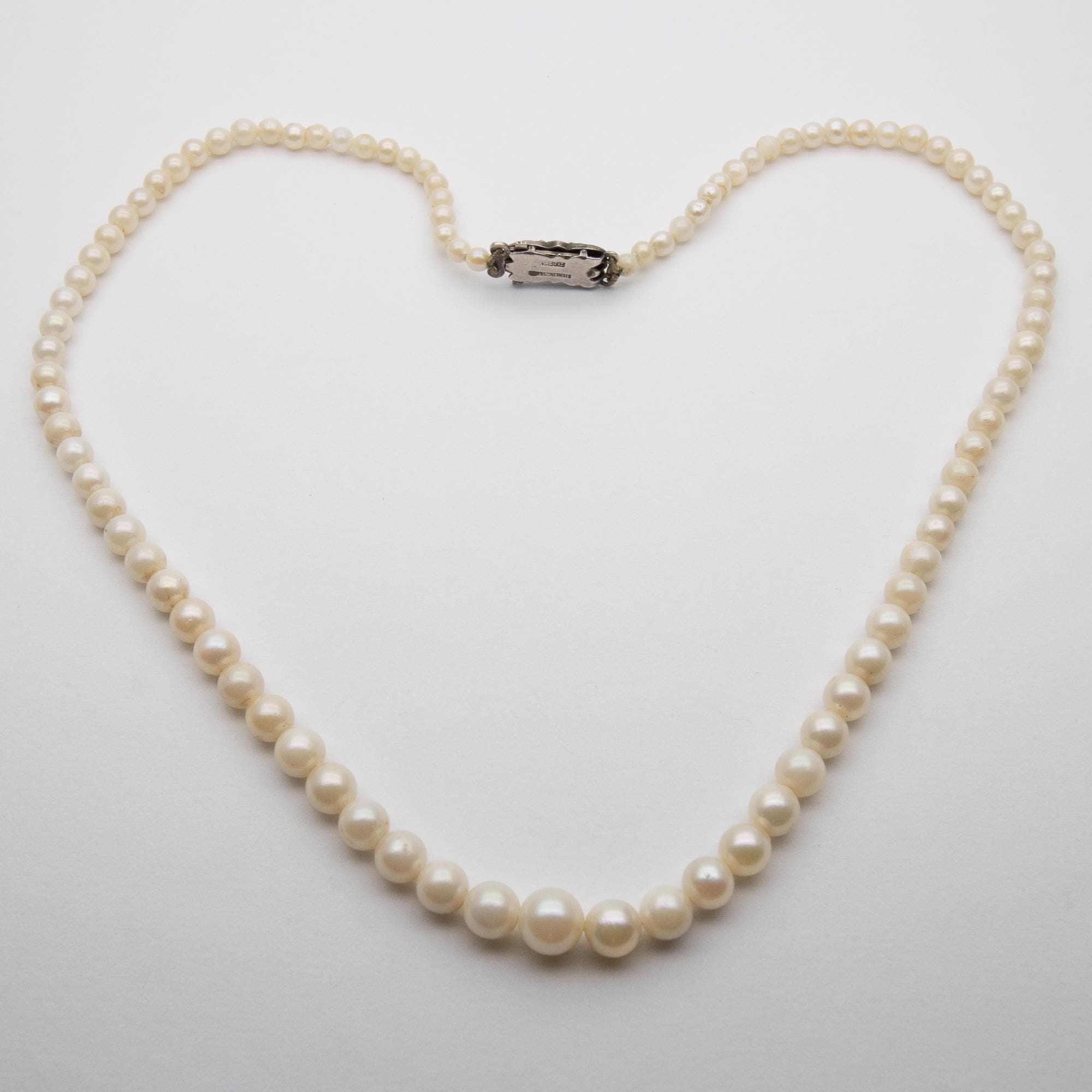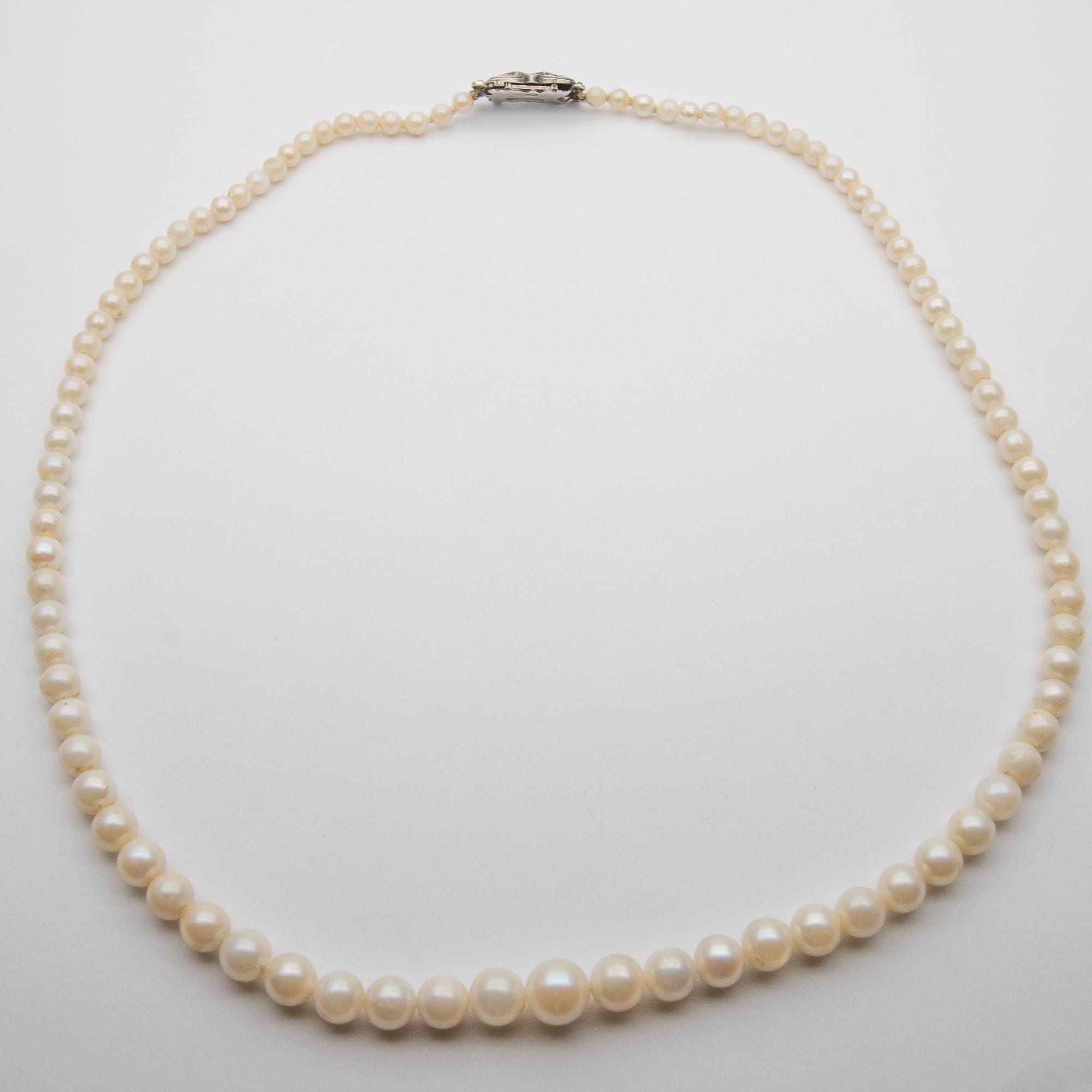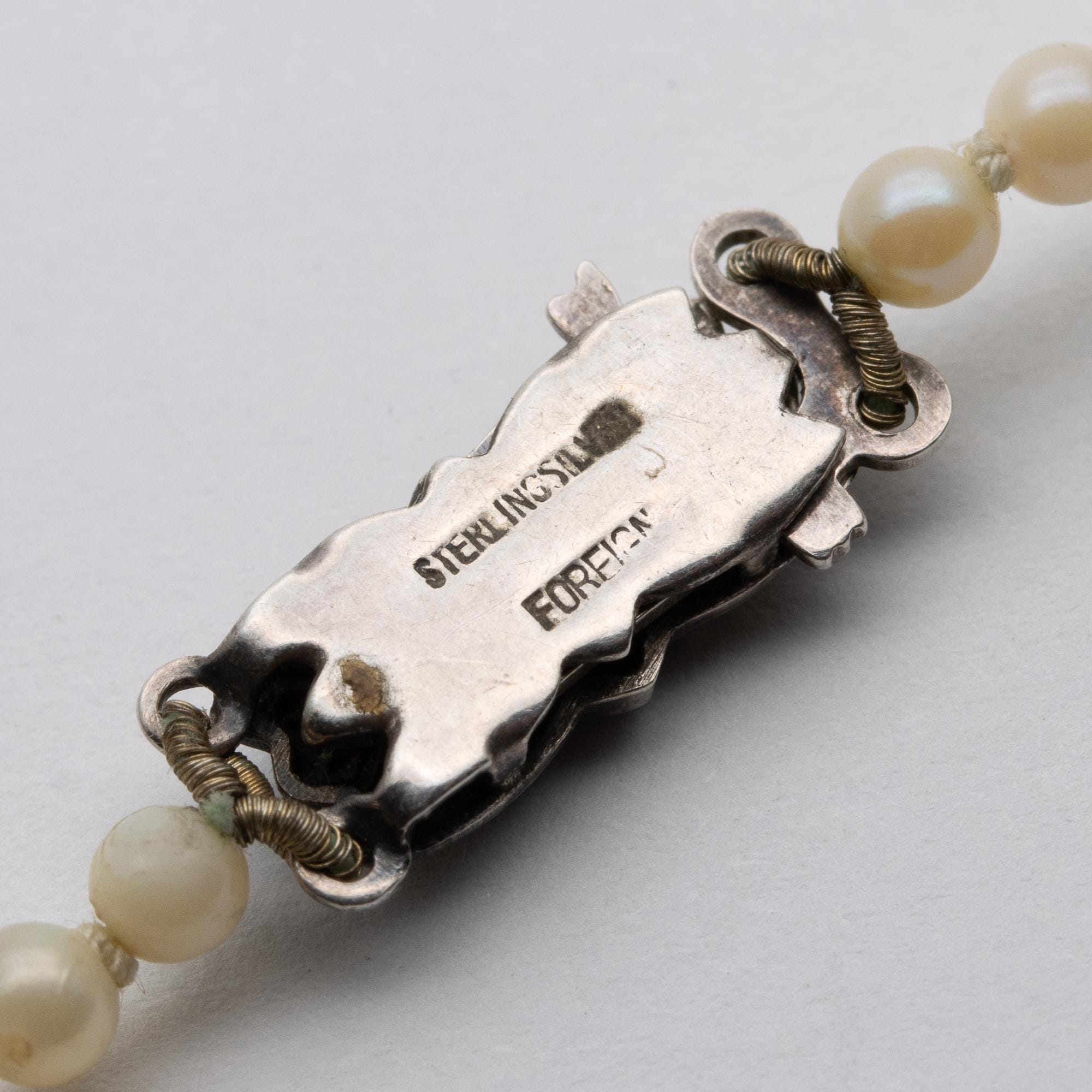 Pretty Vintage Art Deco Sterling Silver Marcasite Cultured Pearl Necklace