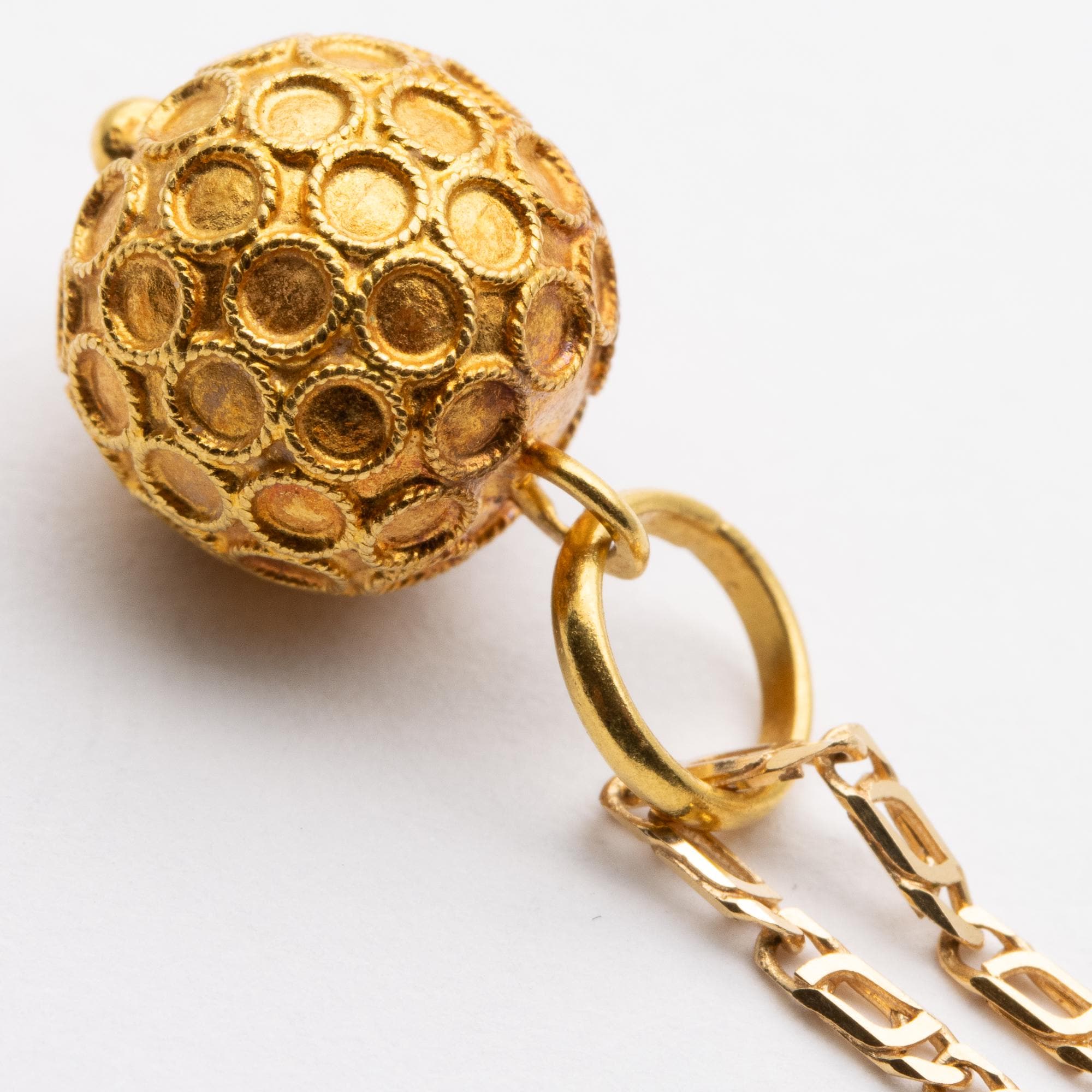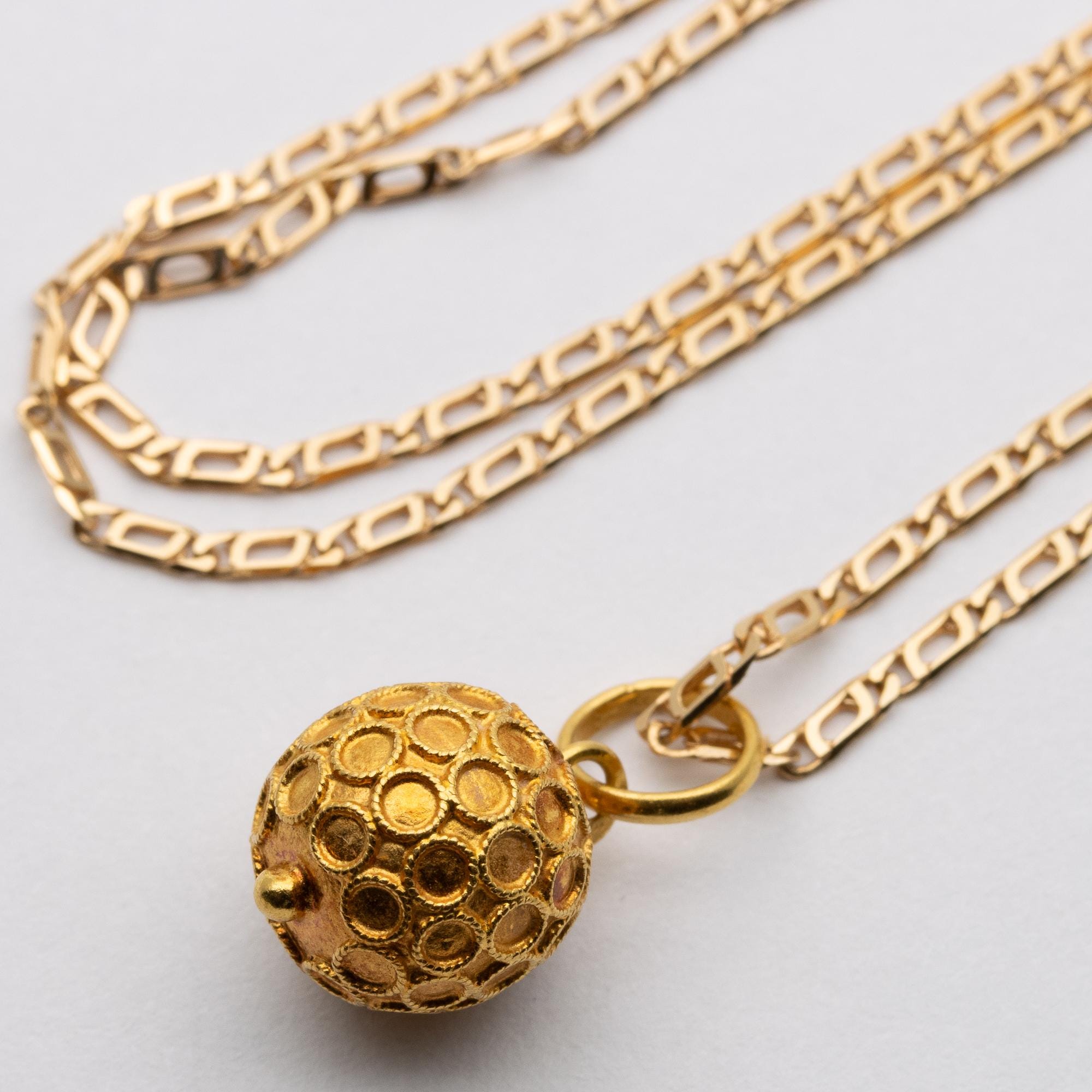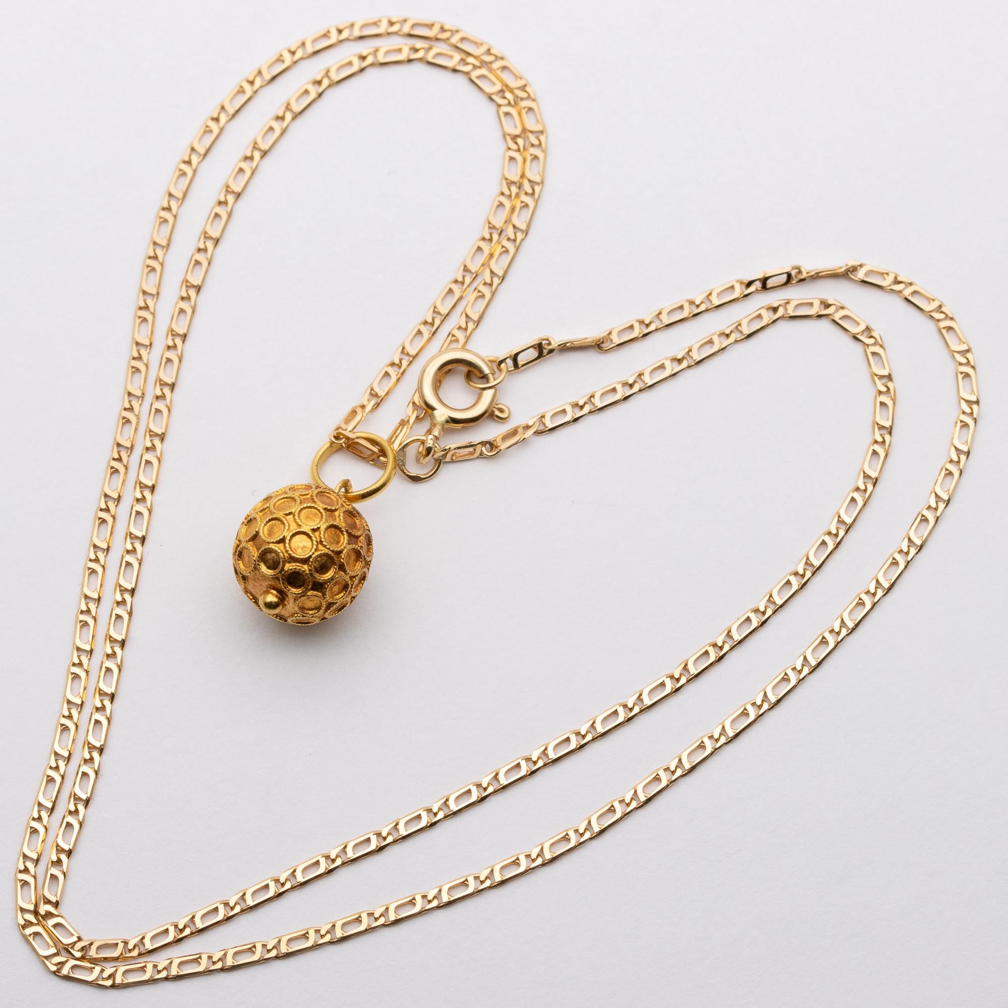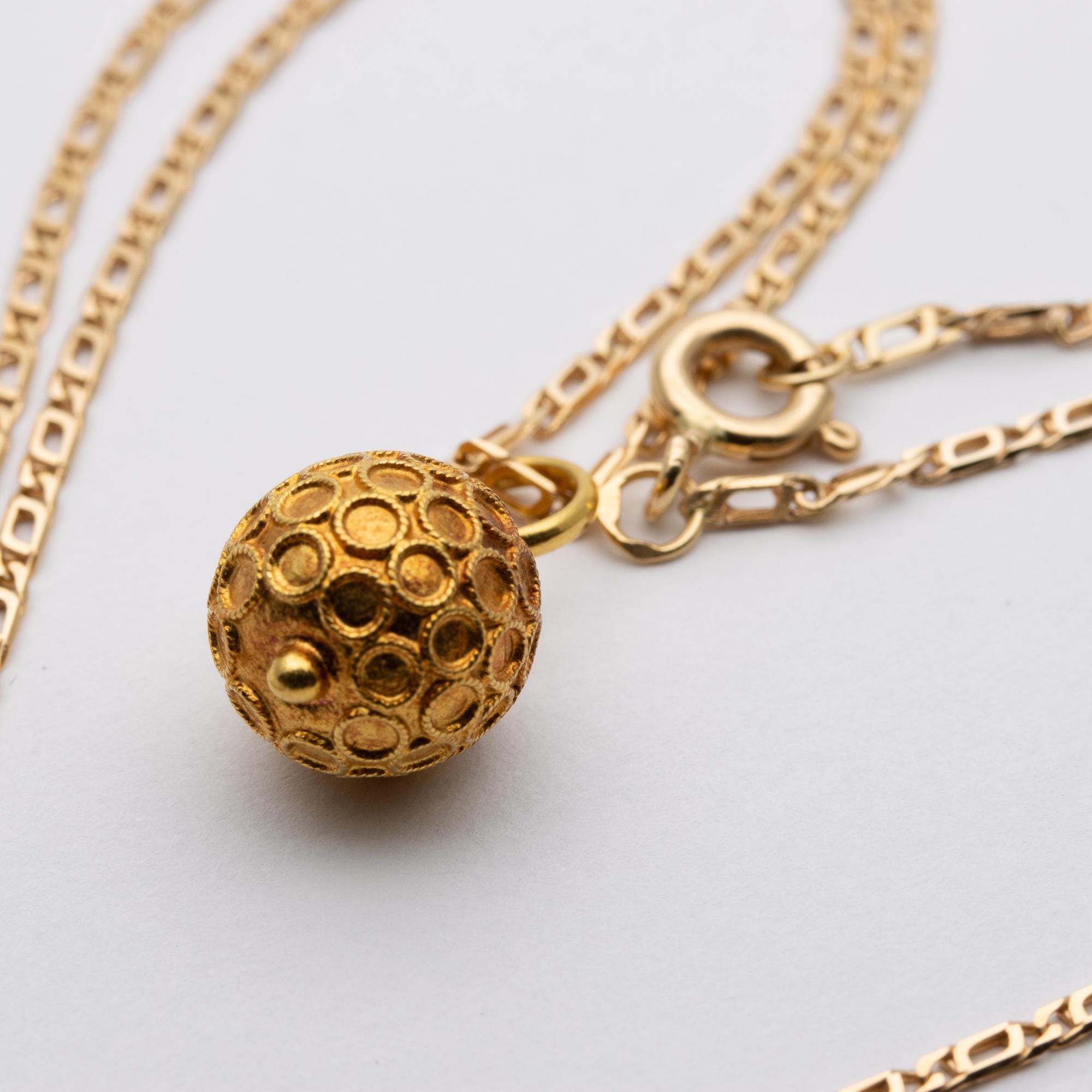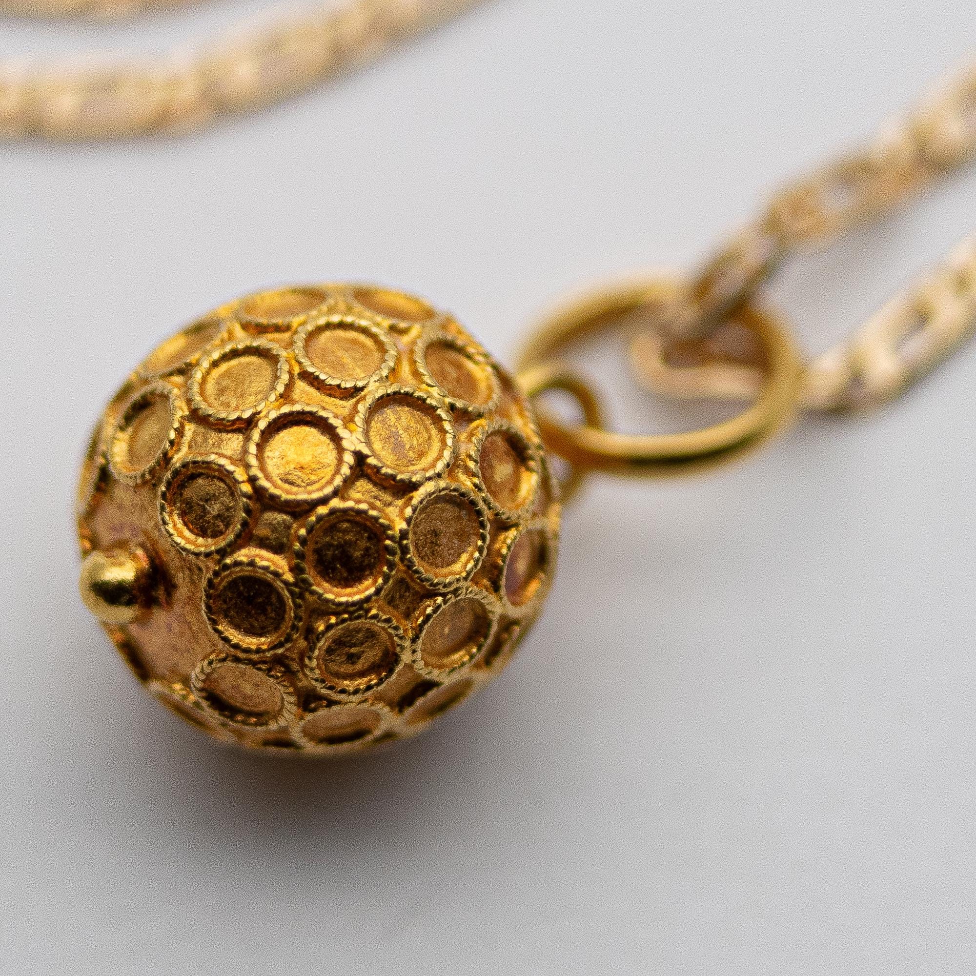 Cute Vintage Portuguese 800 Gold (19ct) Cannetille Ball Pendant Necklace