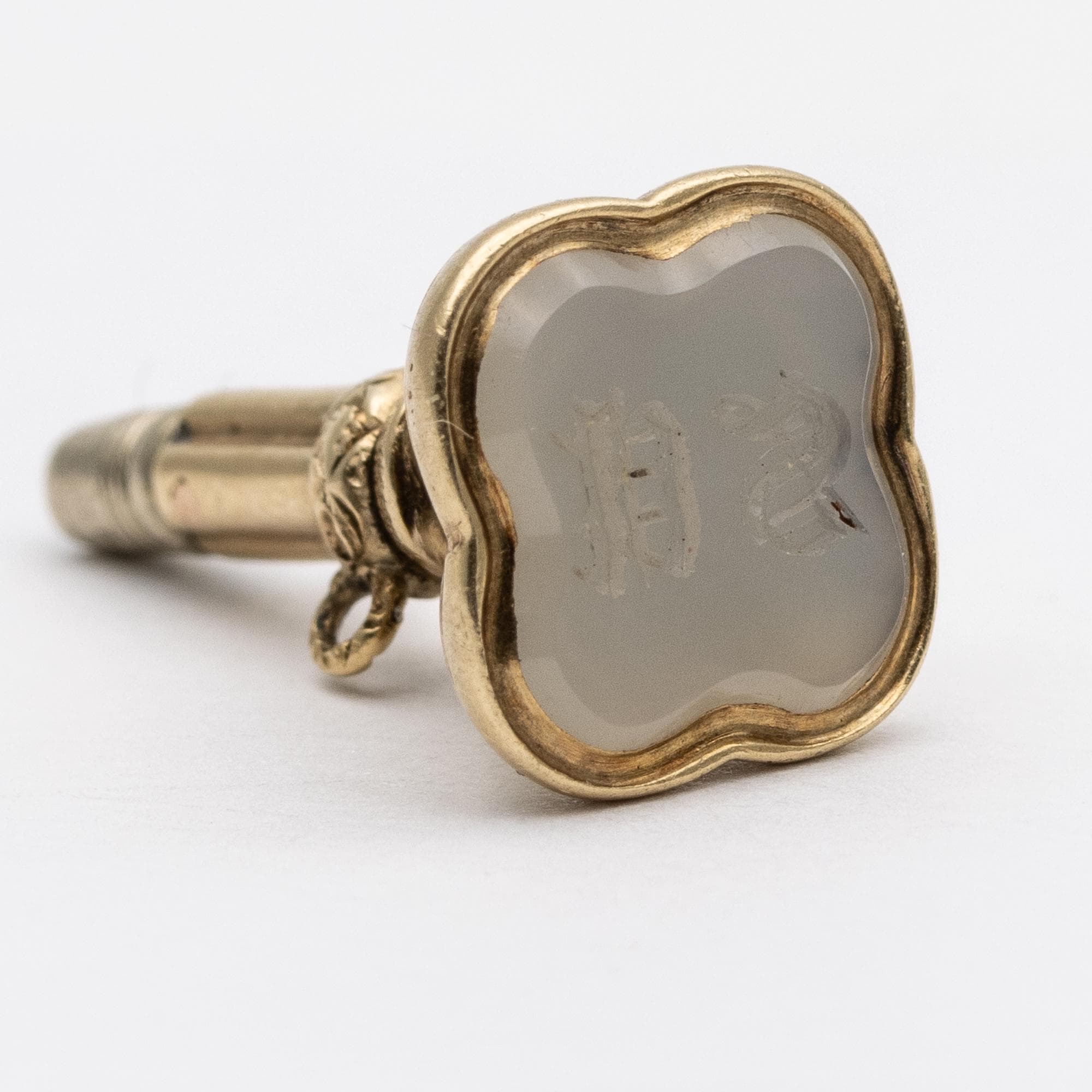 Pretty Antique Victorian Gold Cased White Chalcedony Agate Set Watch Key