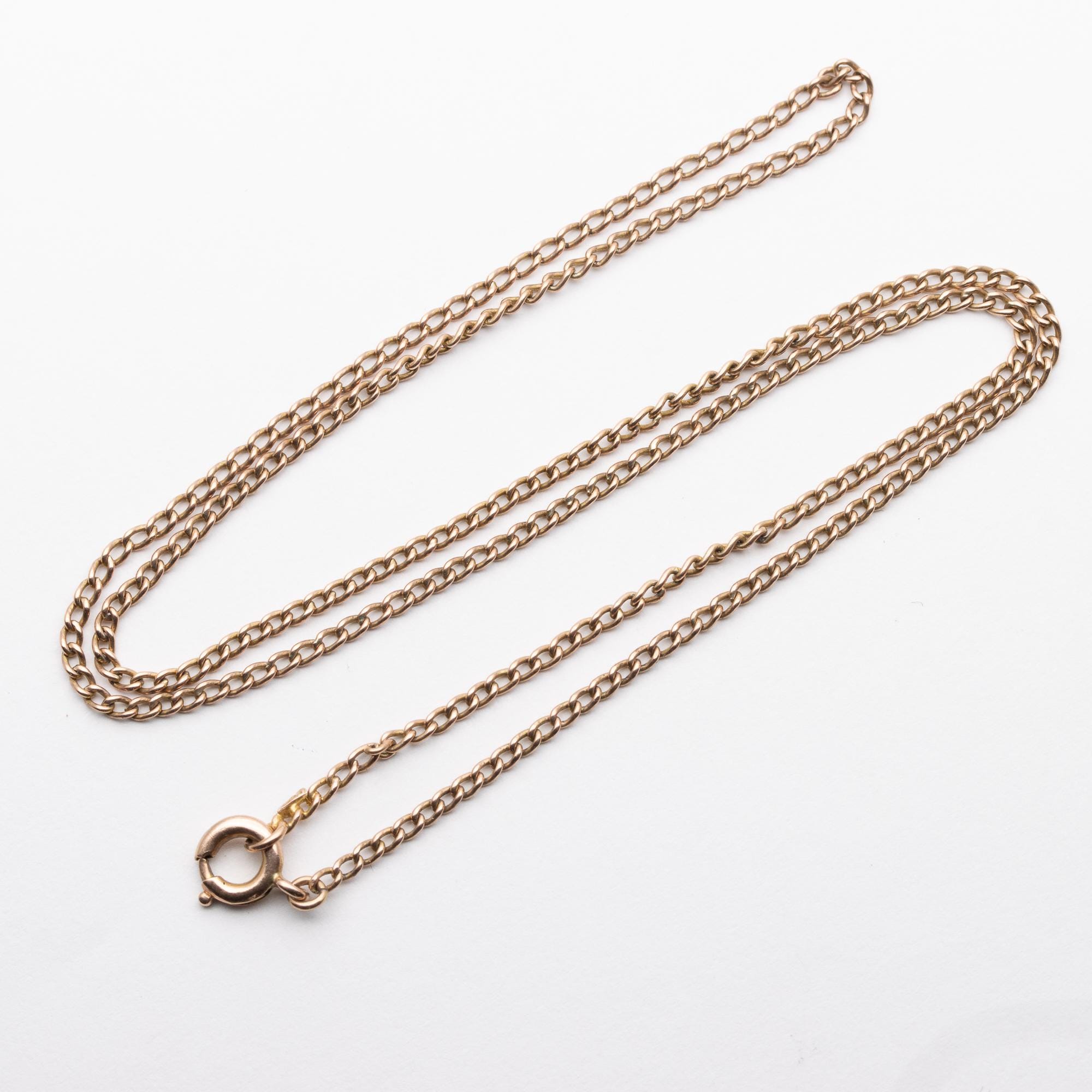 Classic Antique Art Deco 9ct Rose Gold Curb Chain Necklace – 17.5”