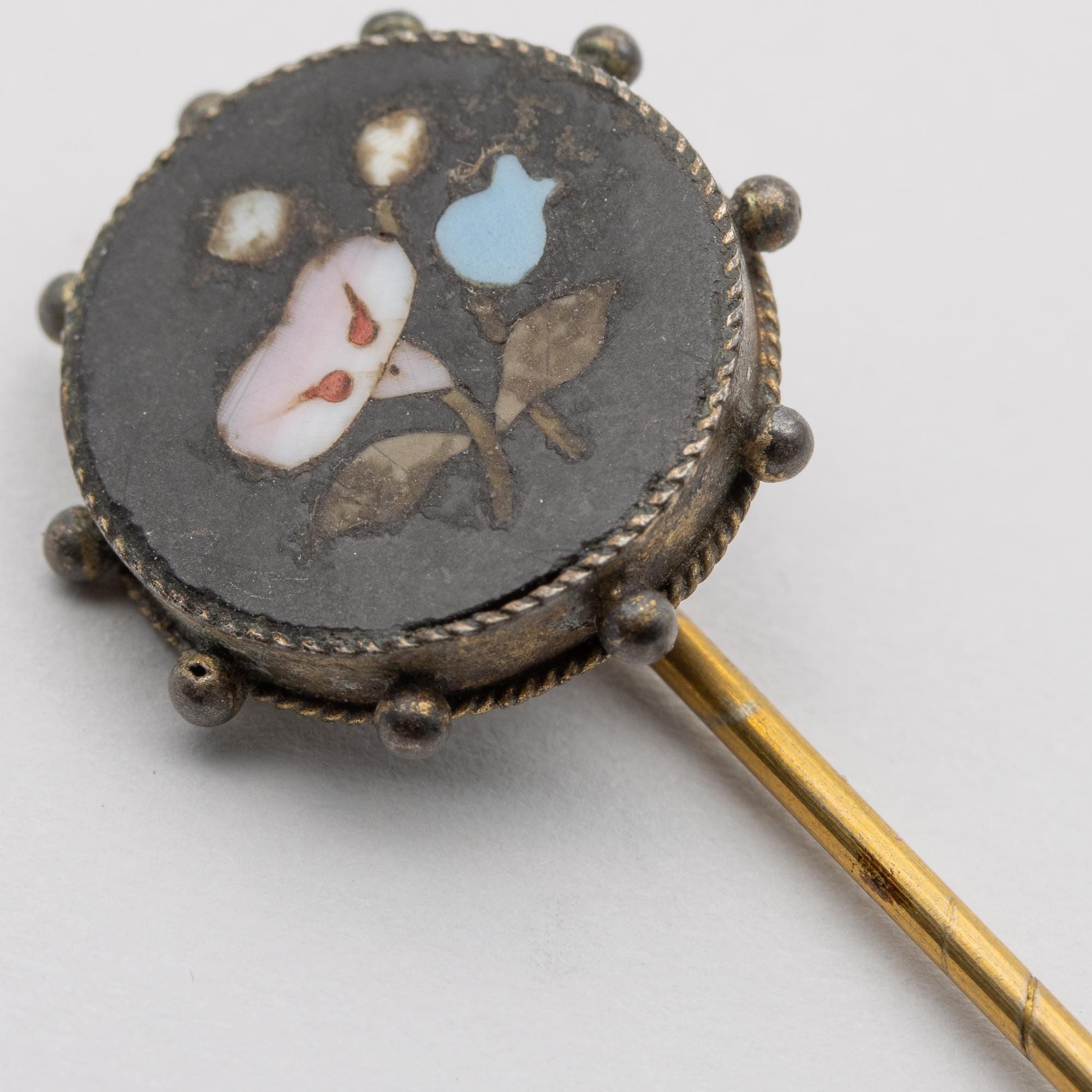 Pretty Antique Italian Victorian Pietra Dura Hardstone Stick Cravat Tie Pin