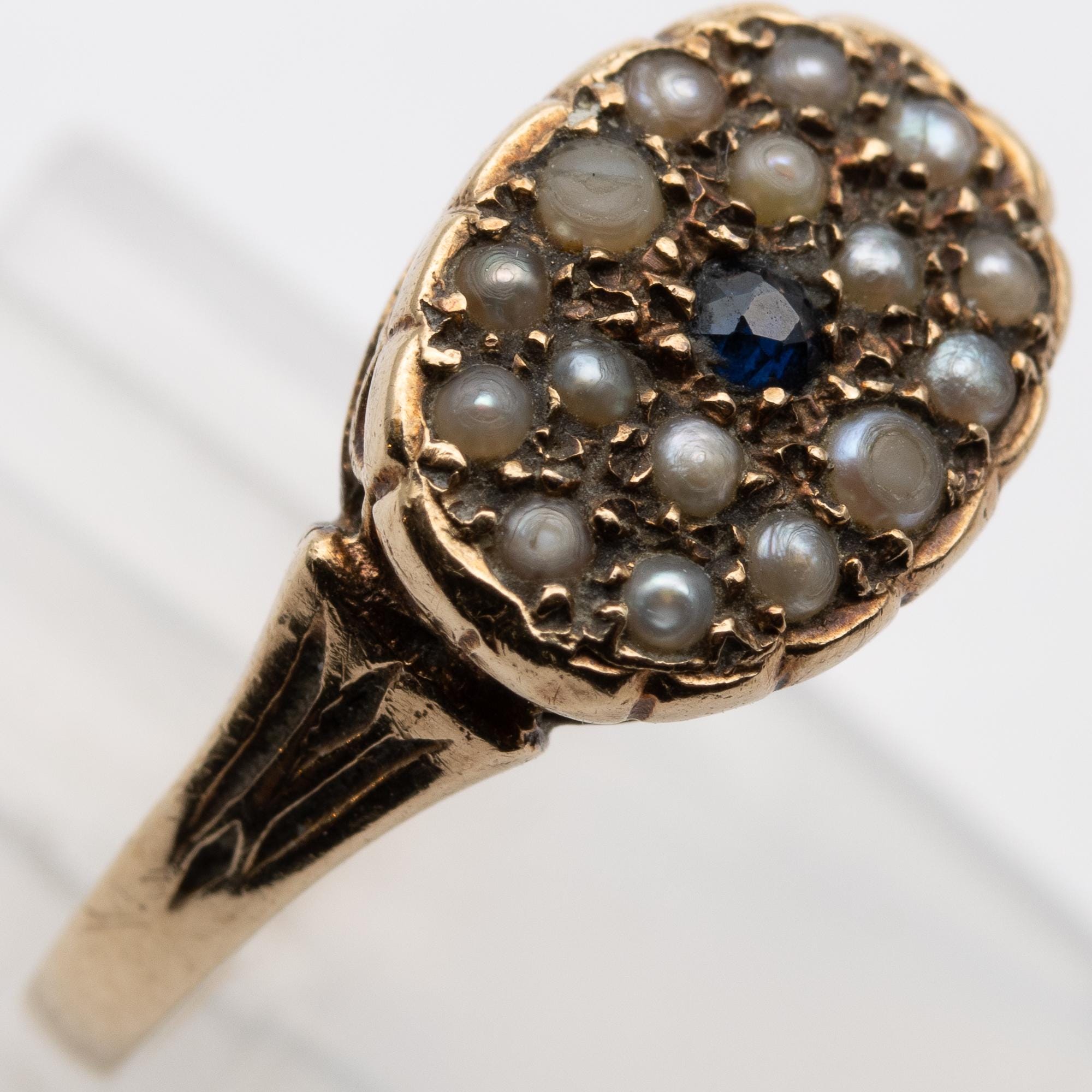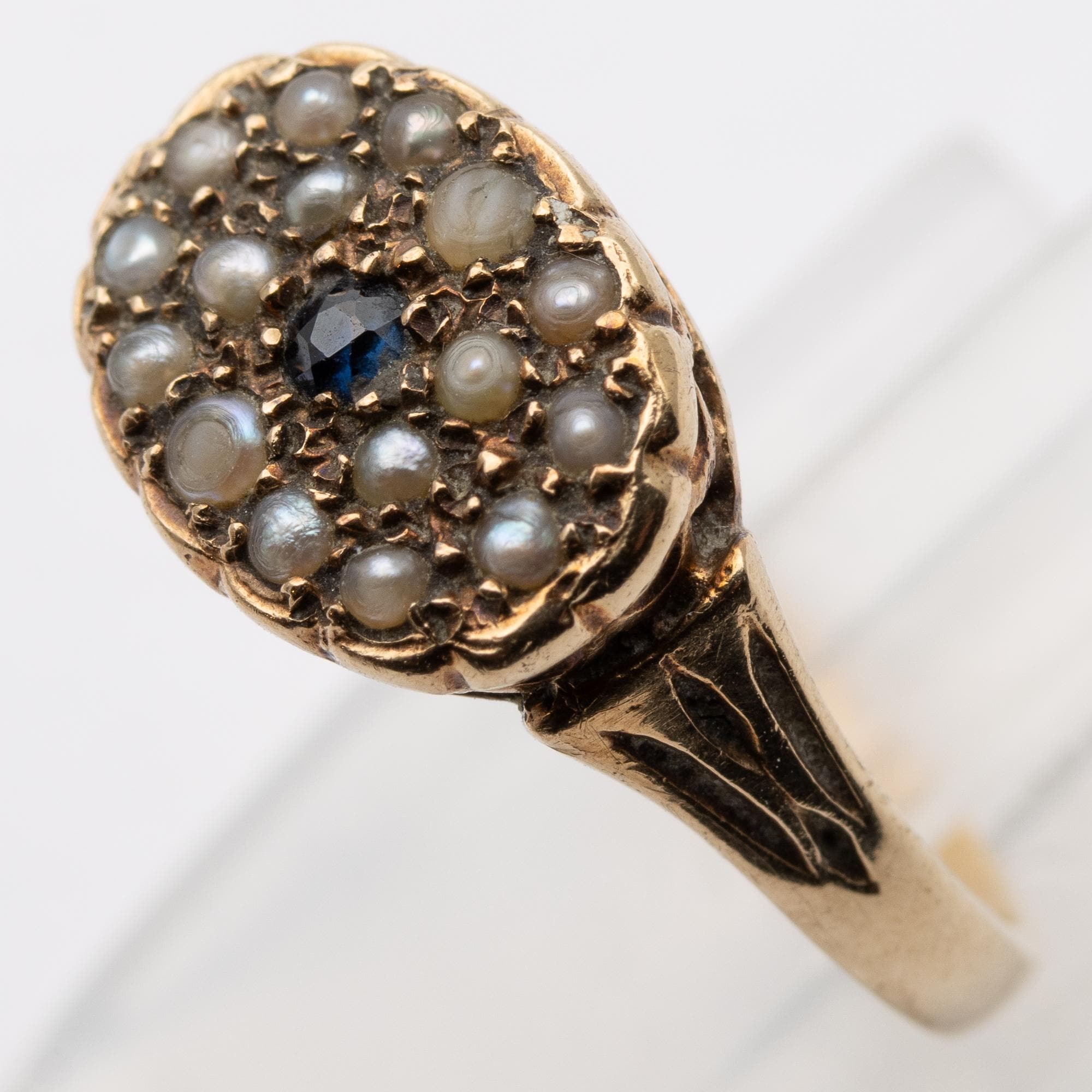 Pretty Antique Victorian 15ct Yellow Gold Seed Pearl Sapphire Ring – Size N