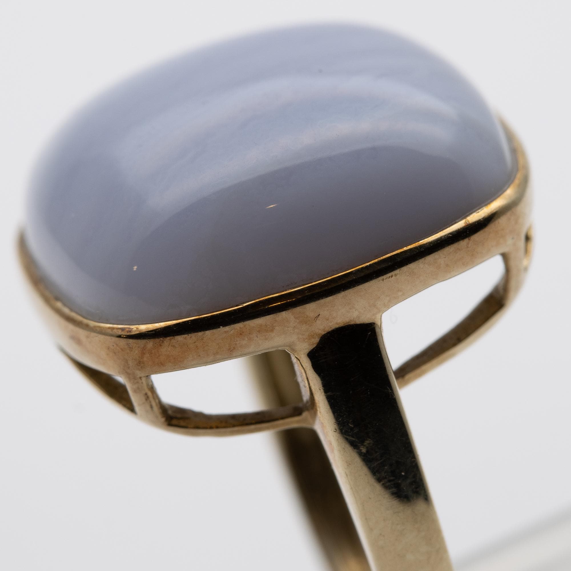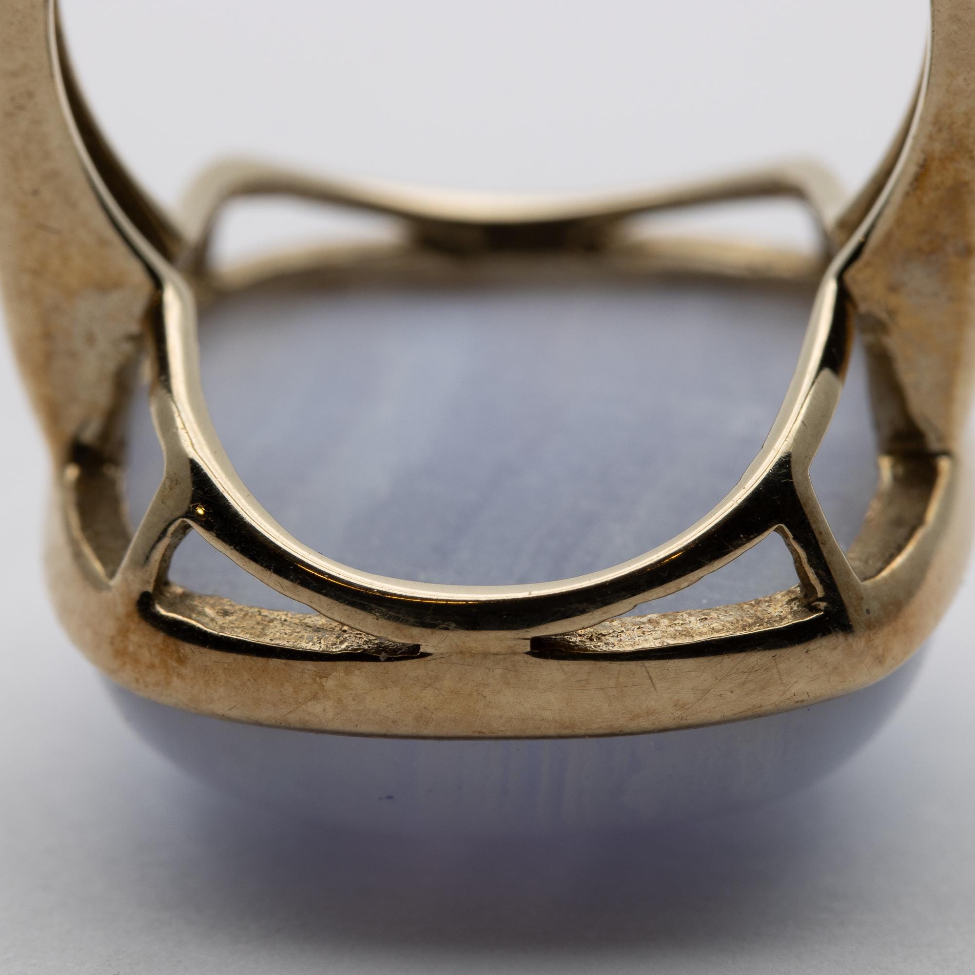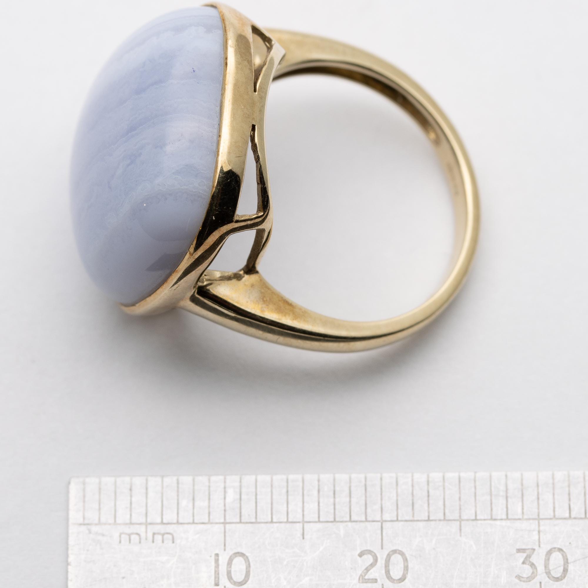 Pretty 9ct Yellow Gold Blue Lace Chalcedony Dress Ring – Size O