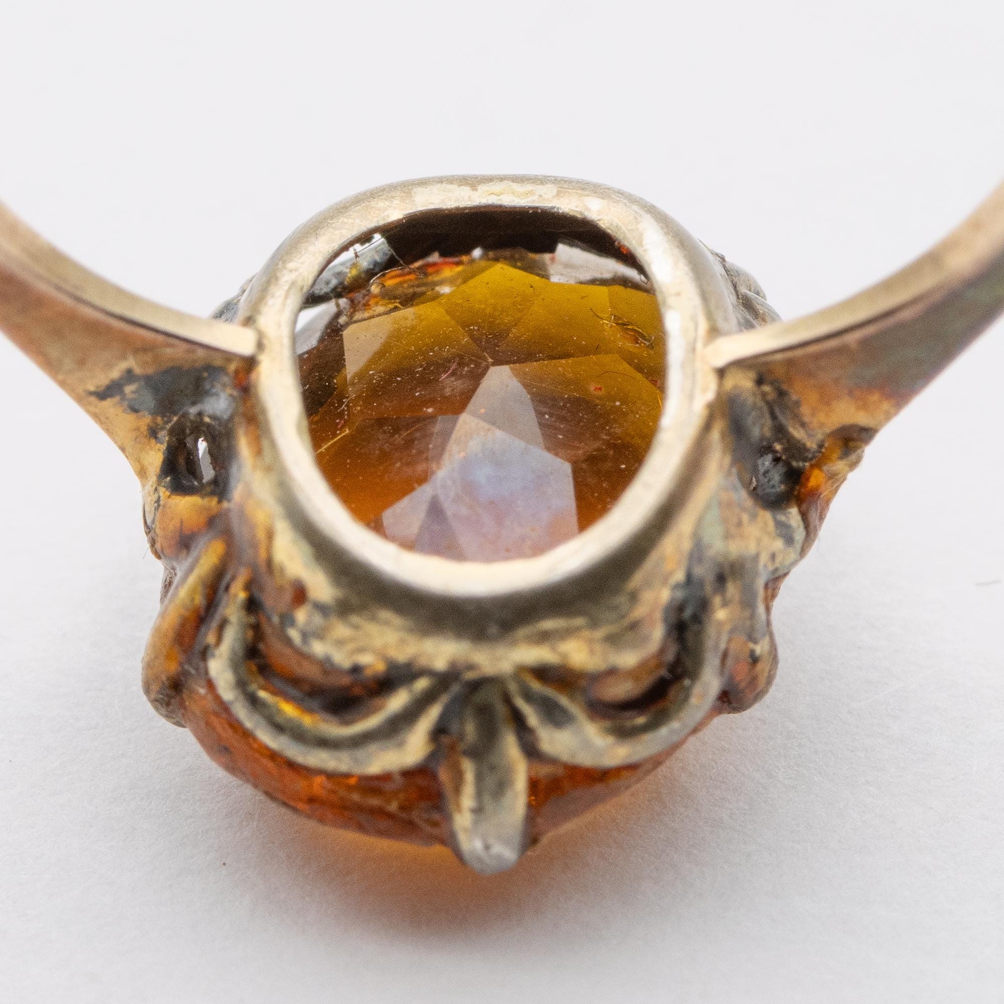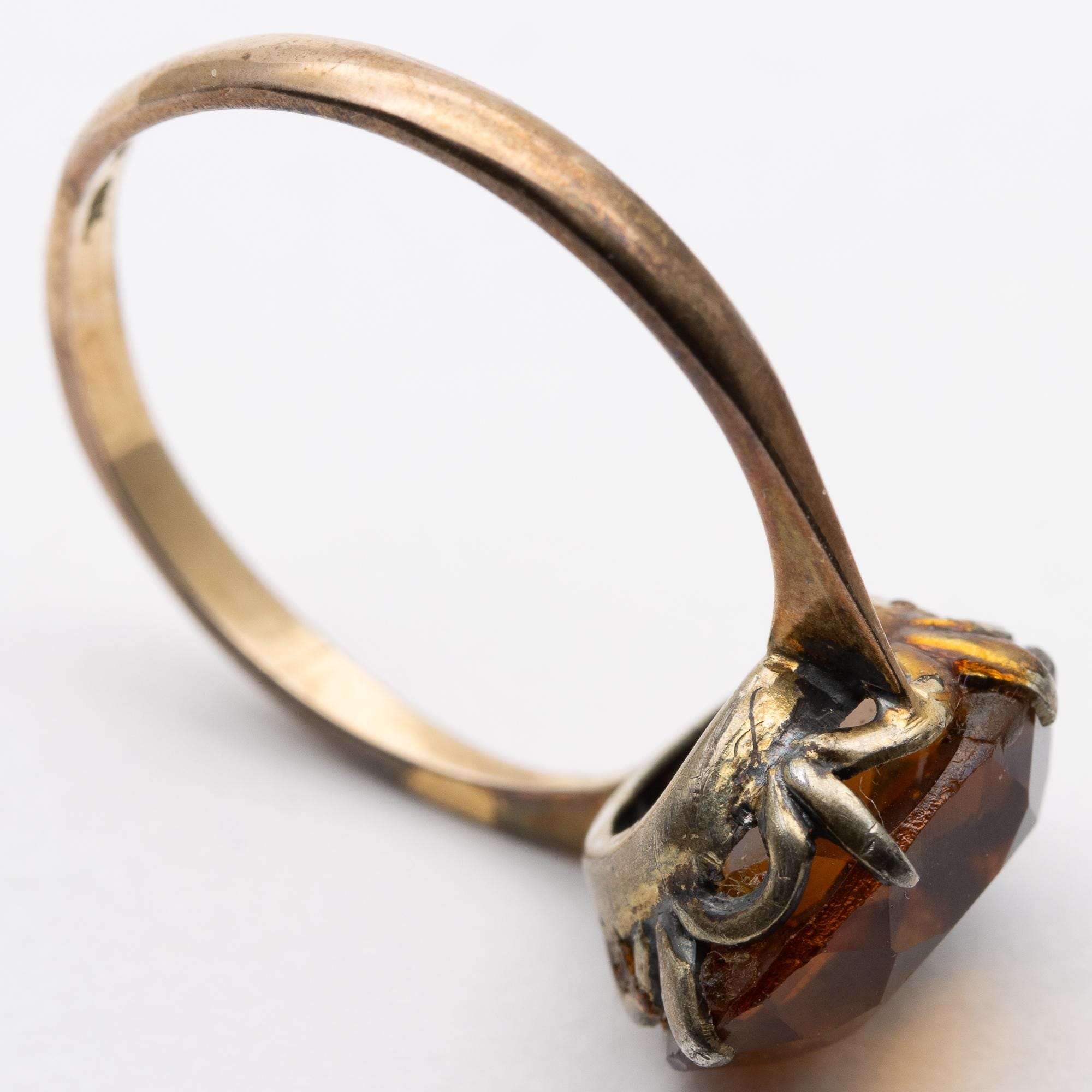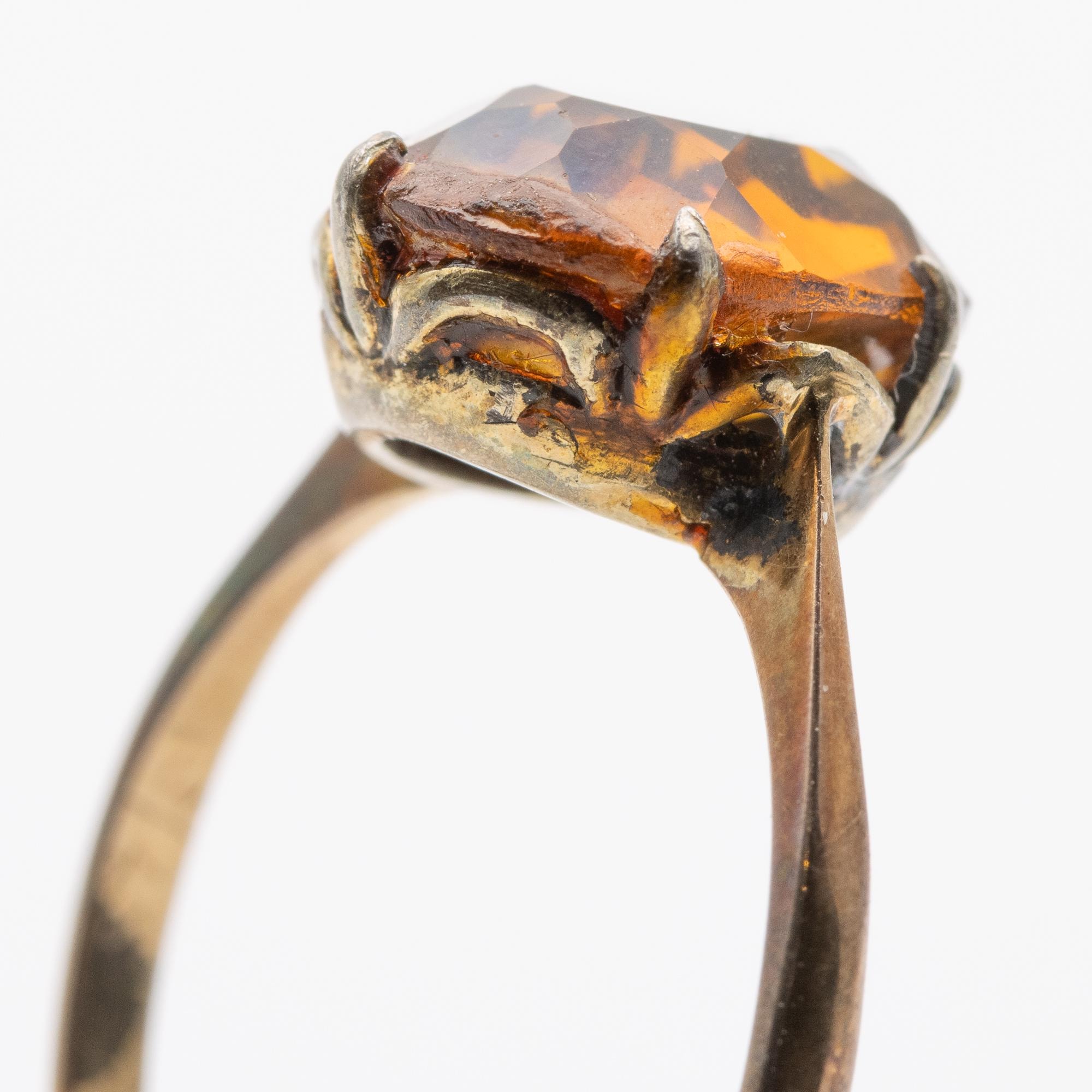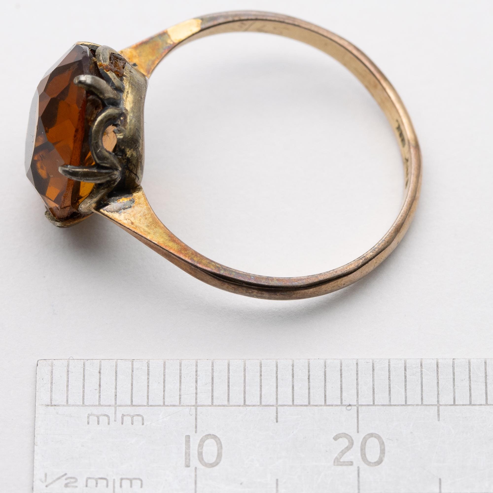 Sweet Vintage 9ct Gold & Silver Citrine Glass Paste Ring