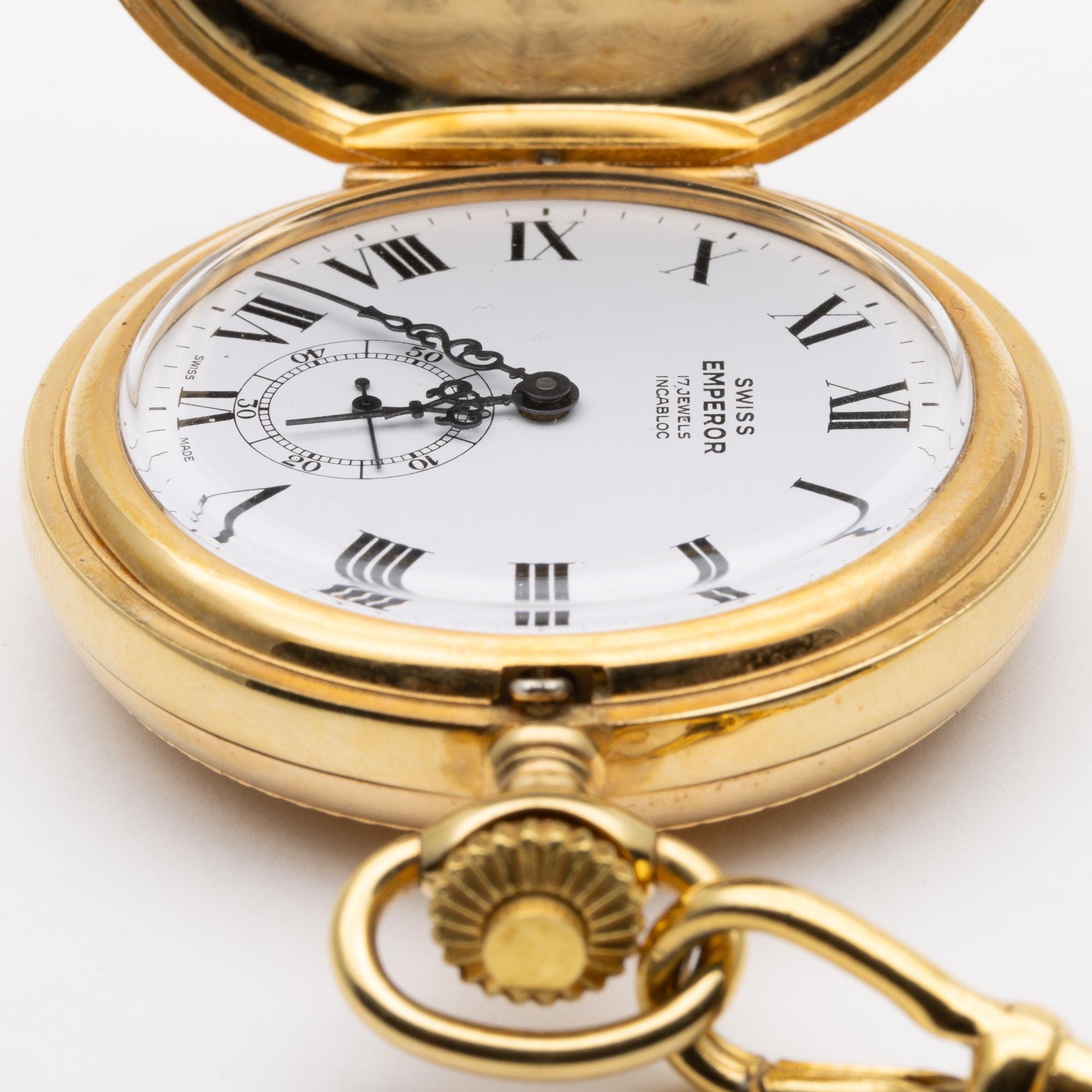 Handsome Vintage Swiss Emperor Full Hunter 17 Jewels Inclabloc Pocket Watch & Chain