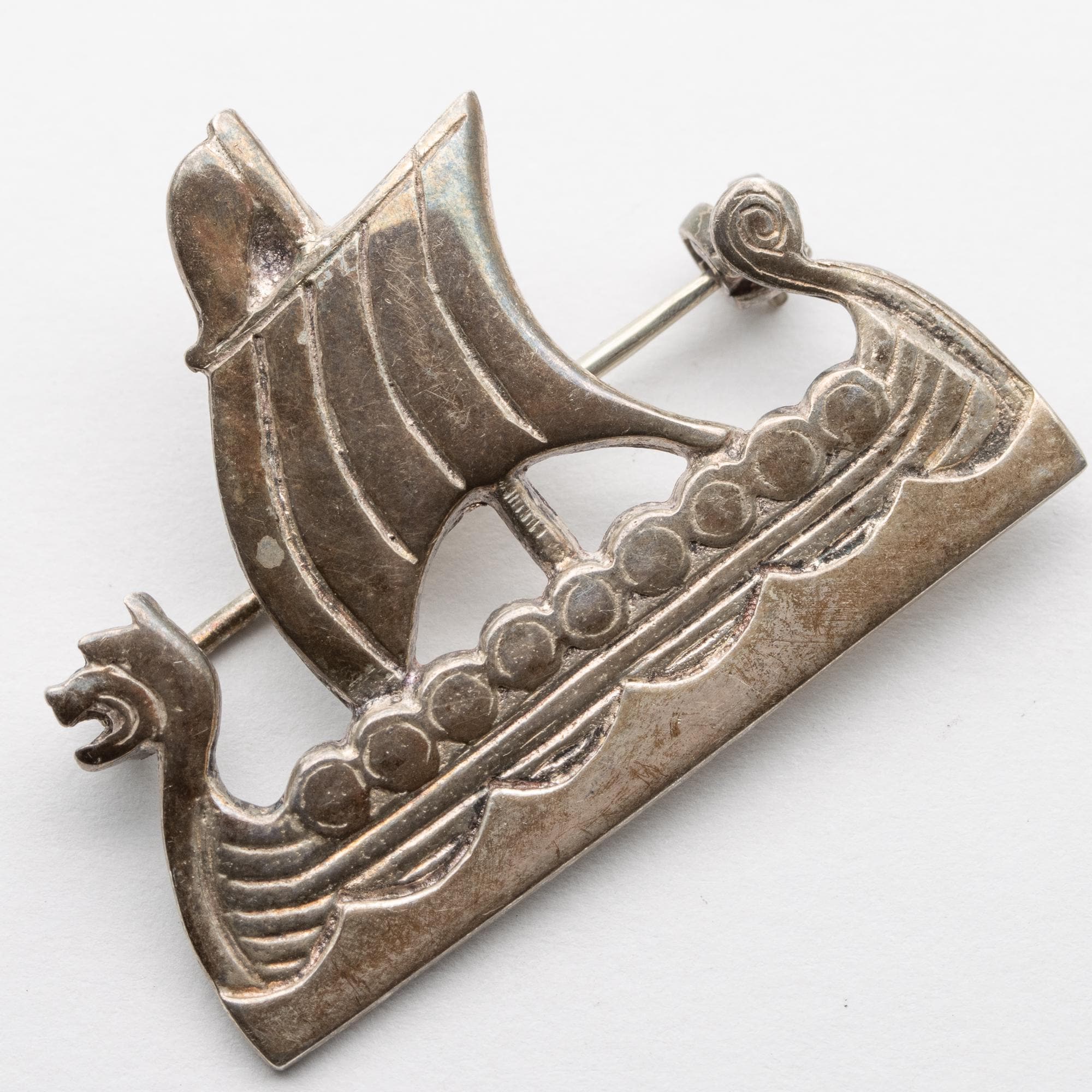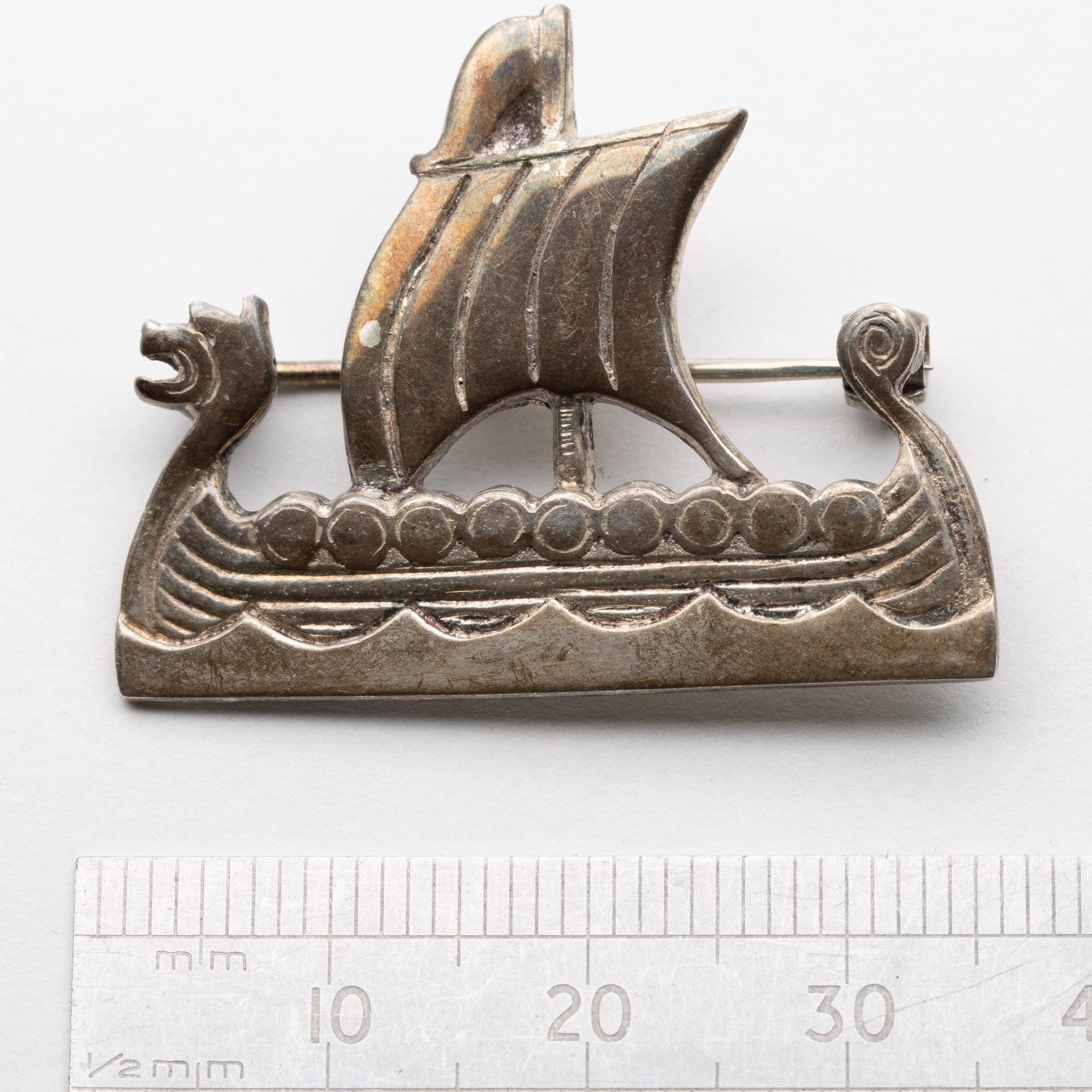 Good Vintage Scottish Shetland Silver Viking Ship Brooch