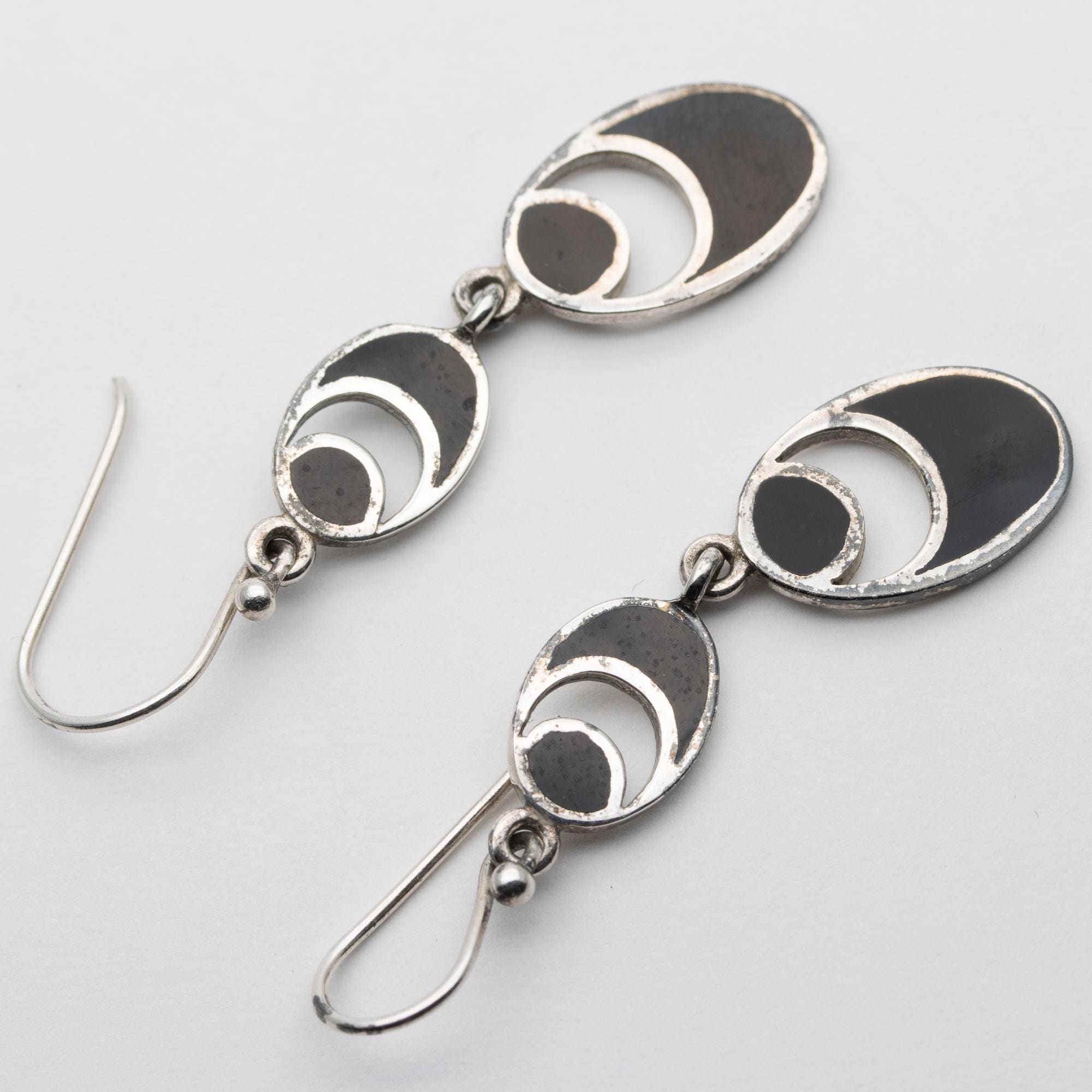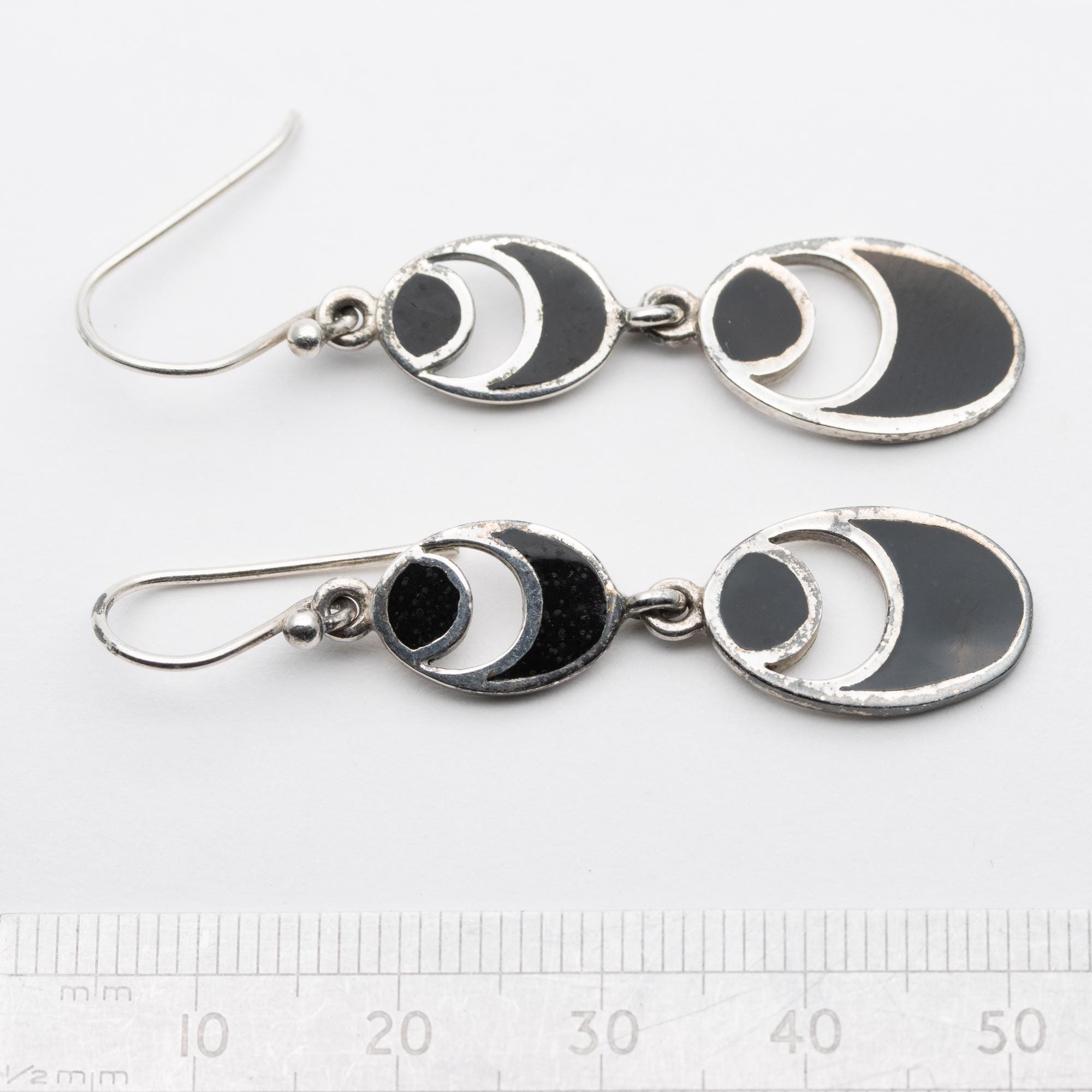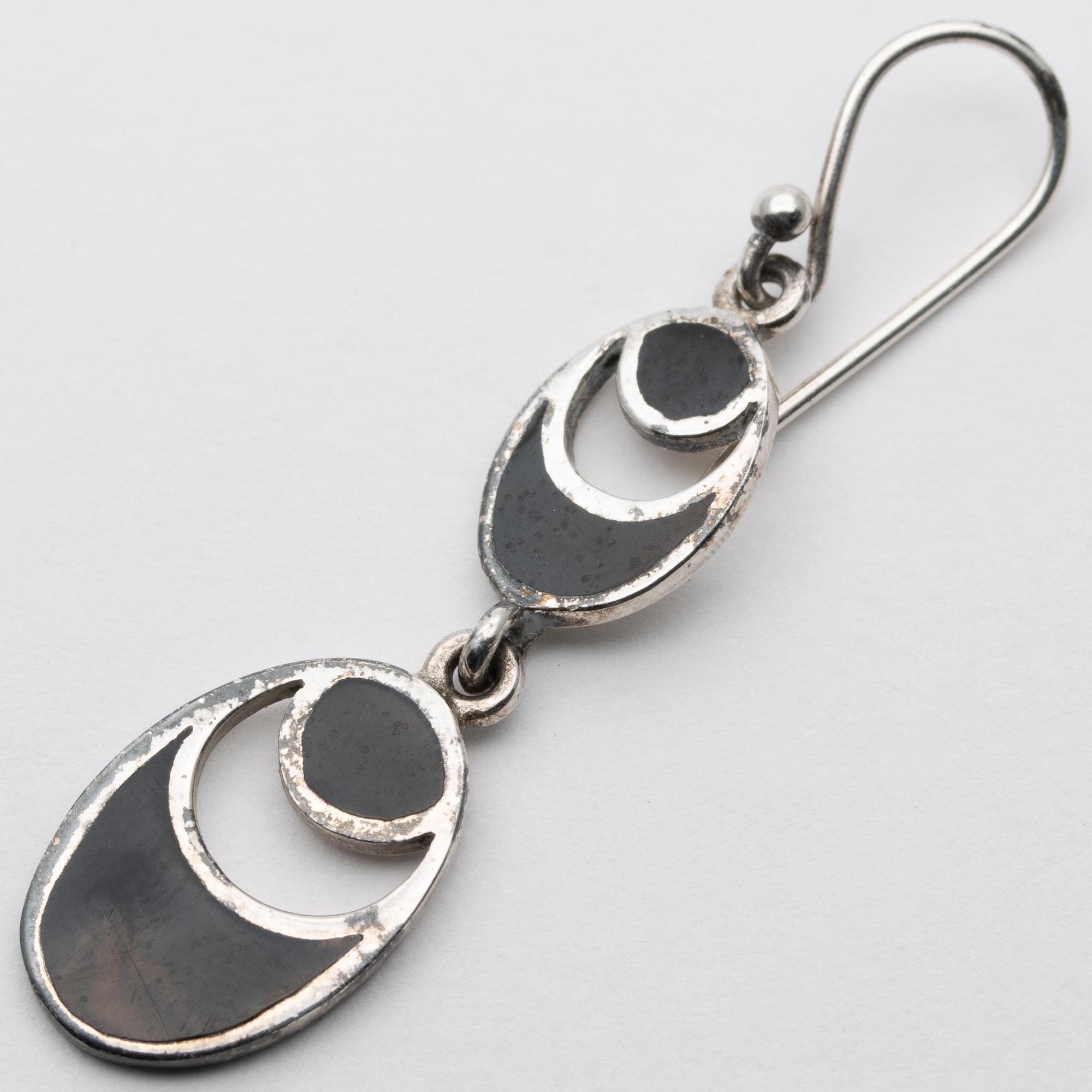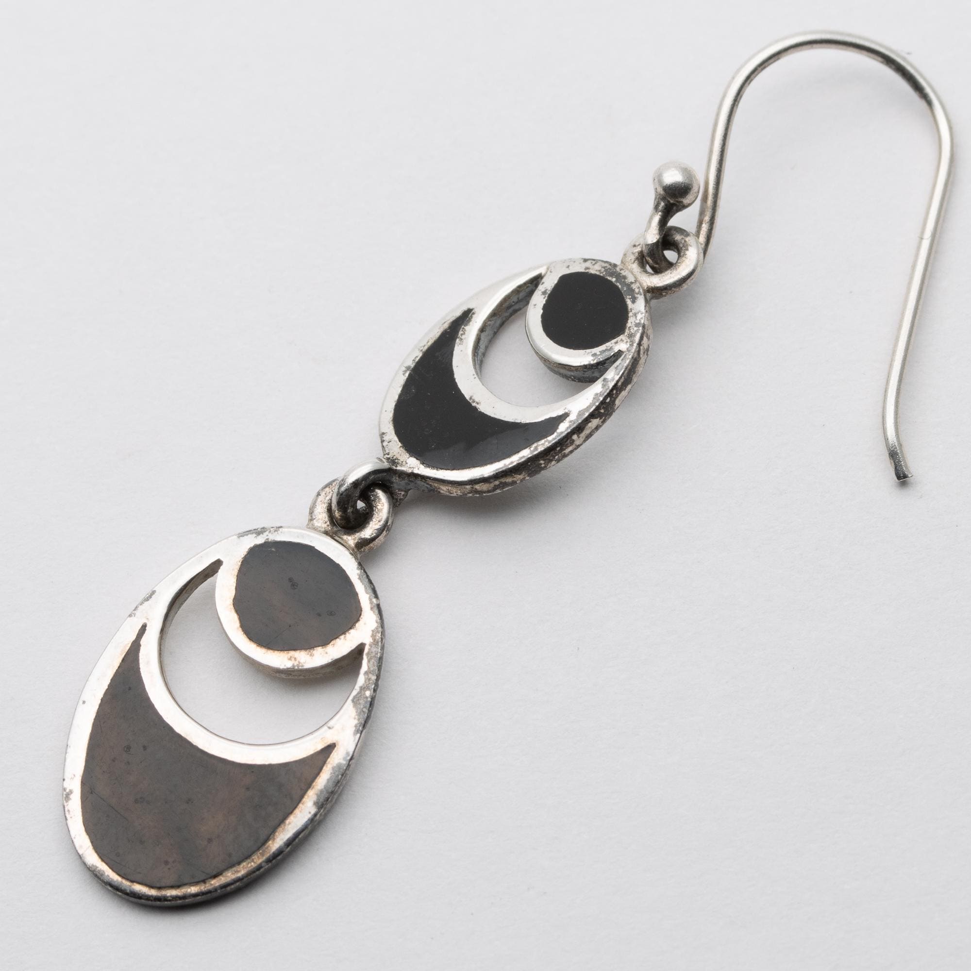 in good used condition. Onyx in silver with fish hooks for pierced ears.