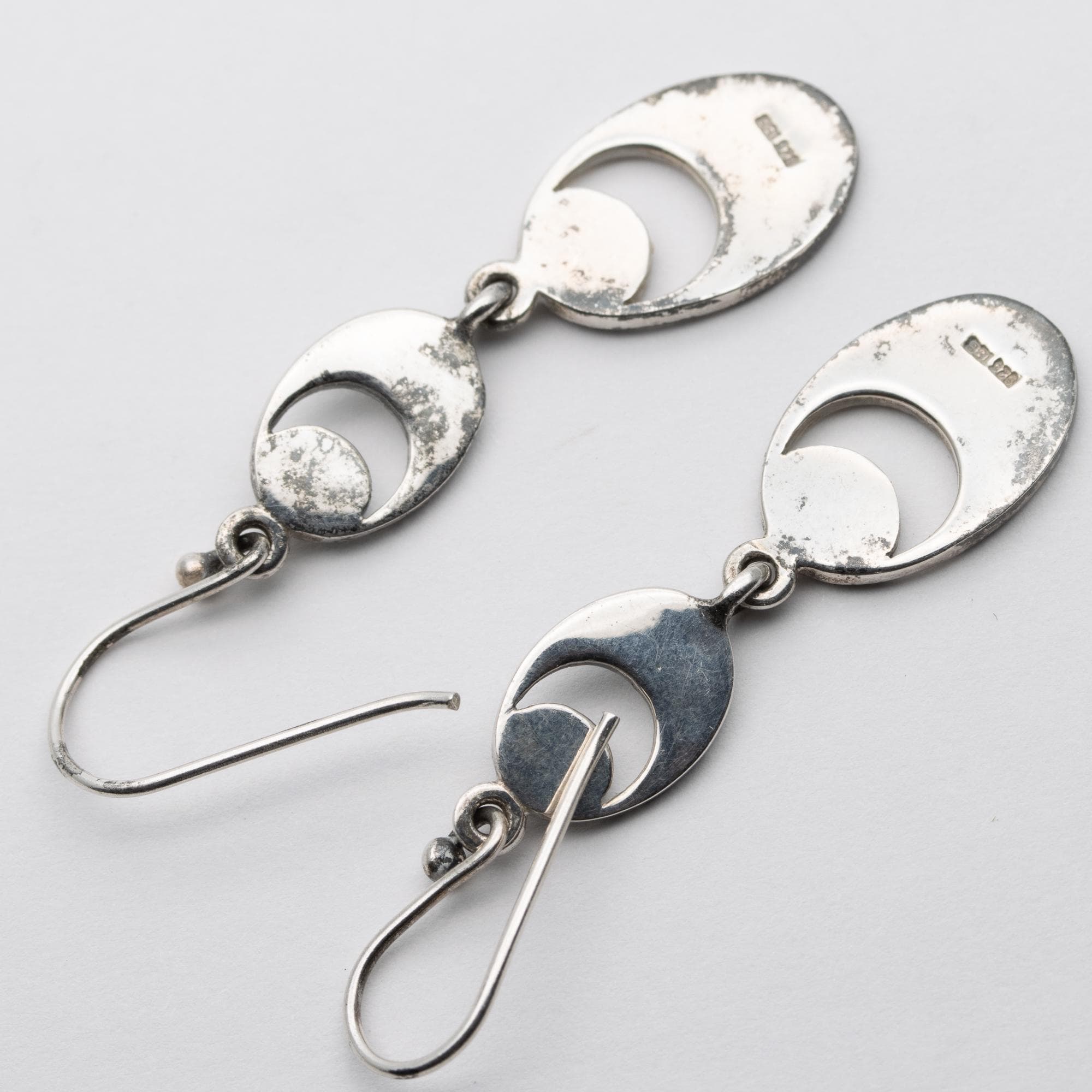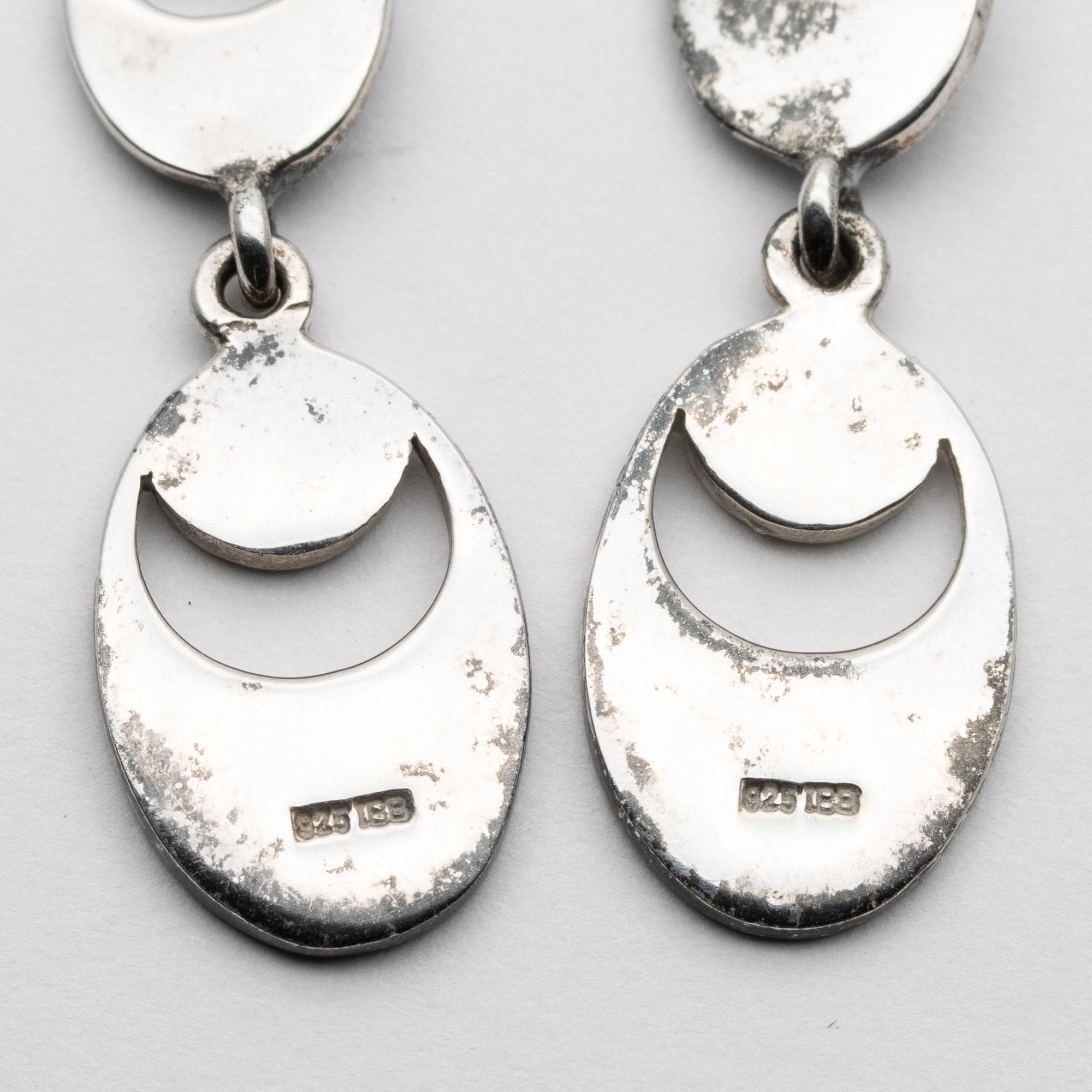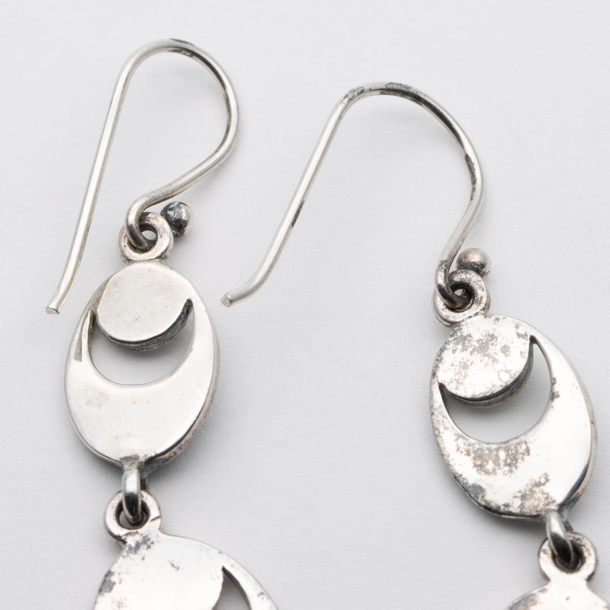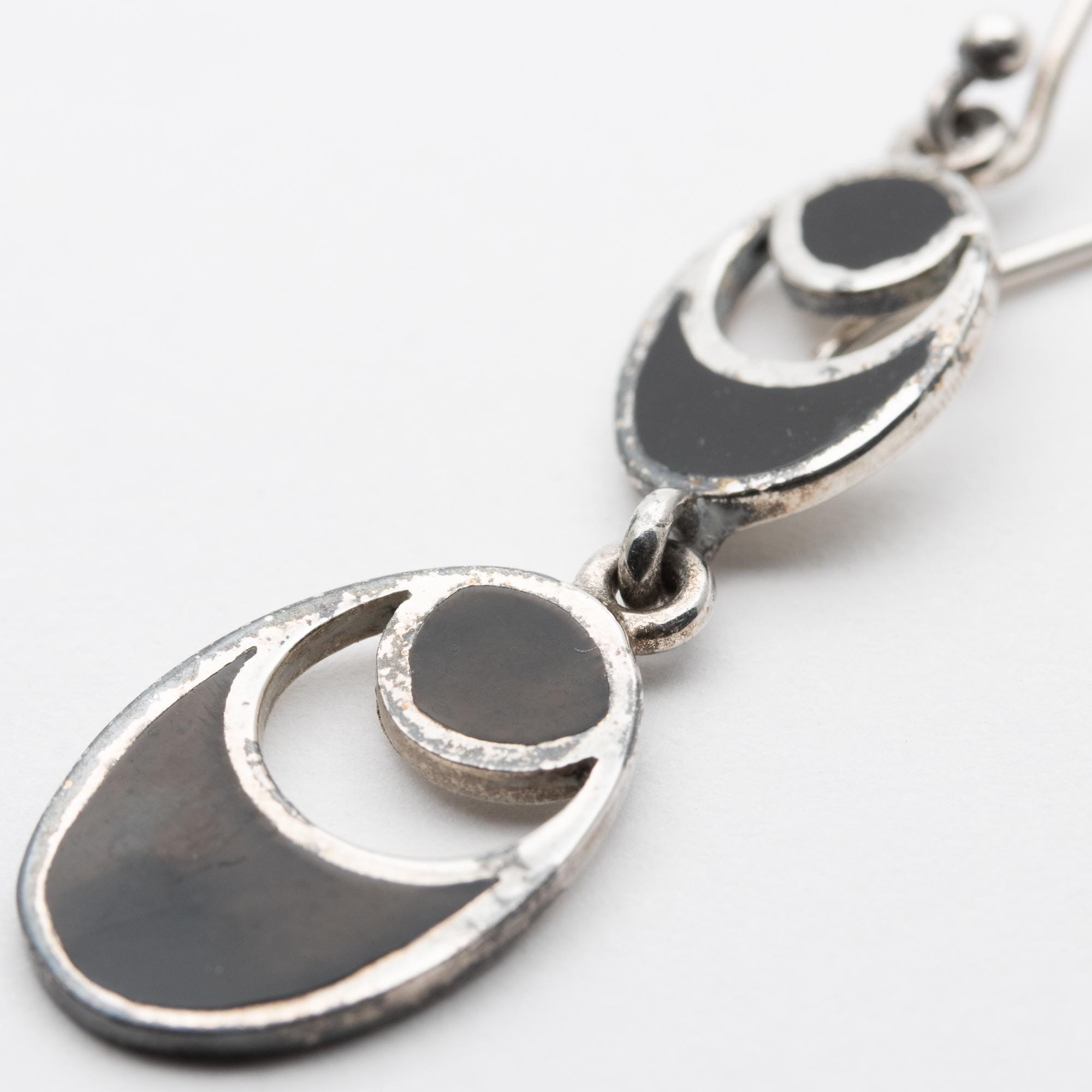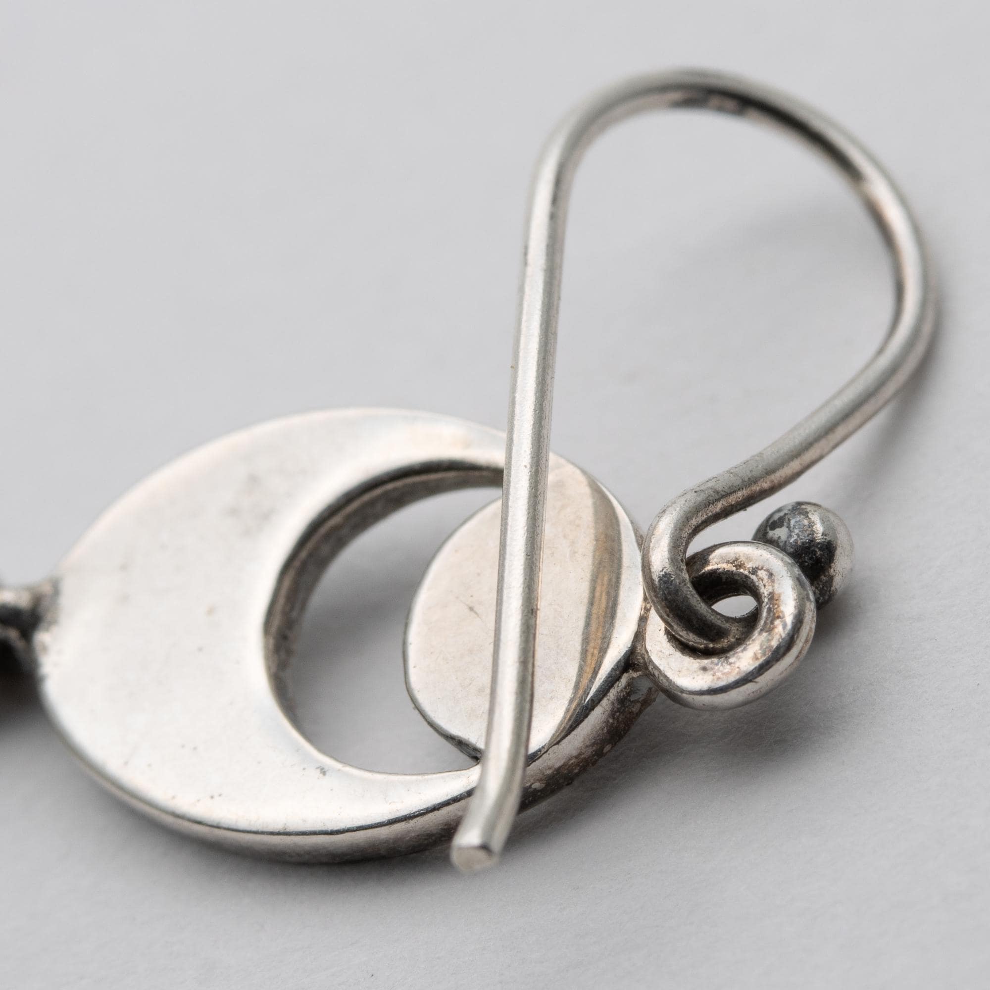in good used condition. Onyx in silver with fish hooks for pierced ears.