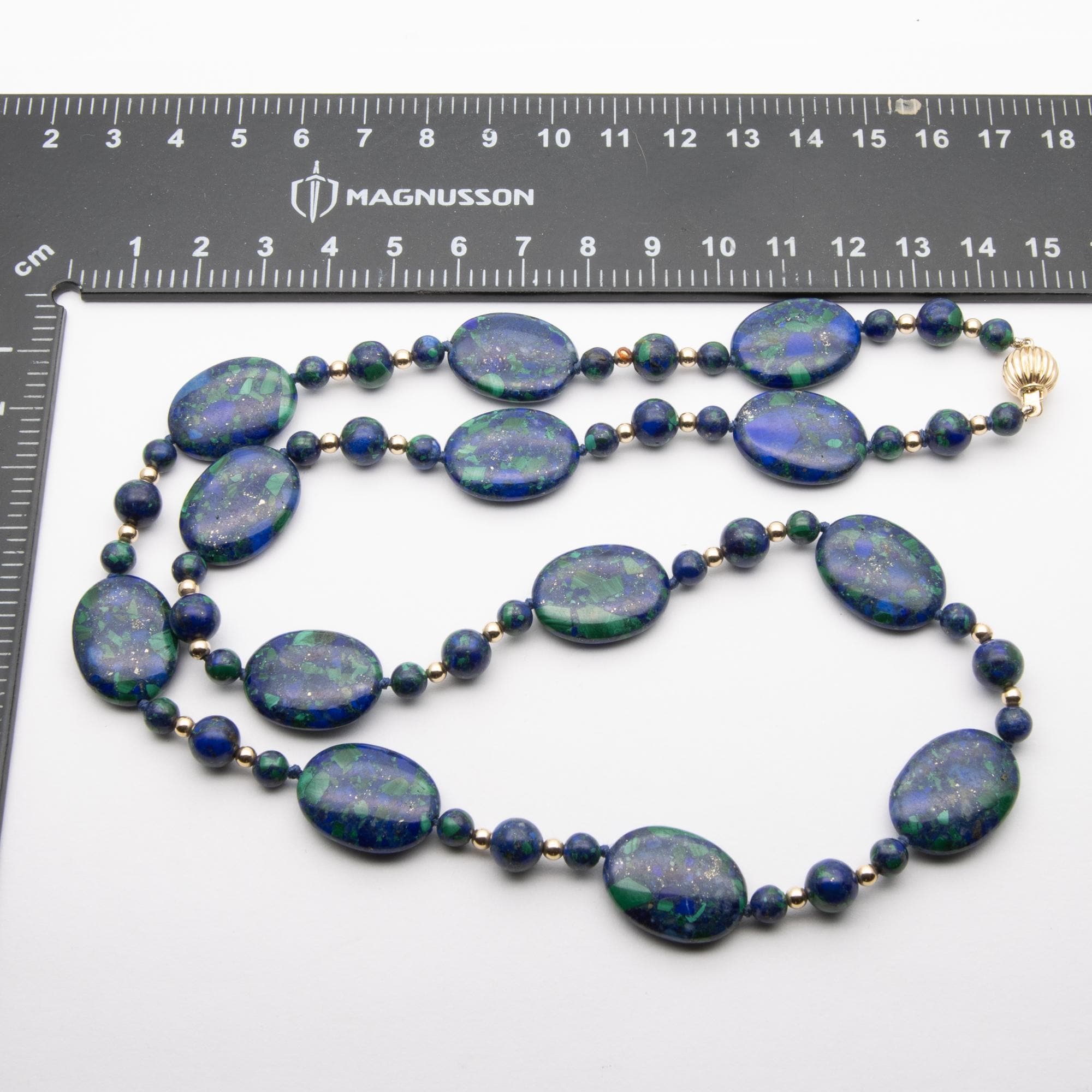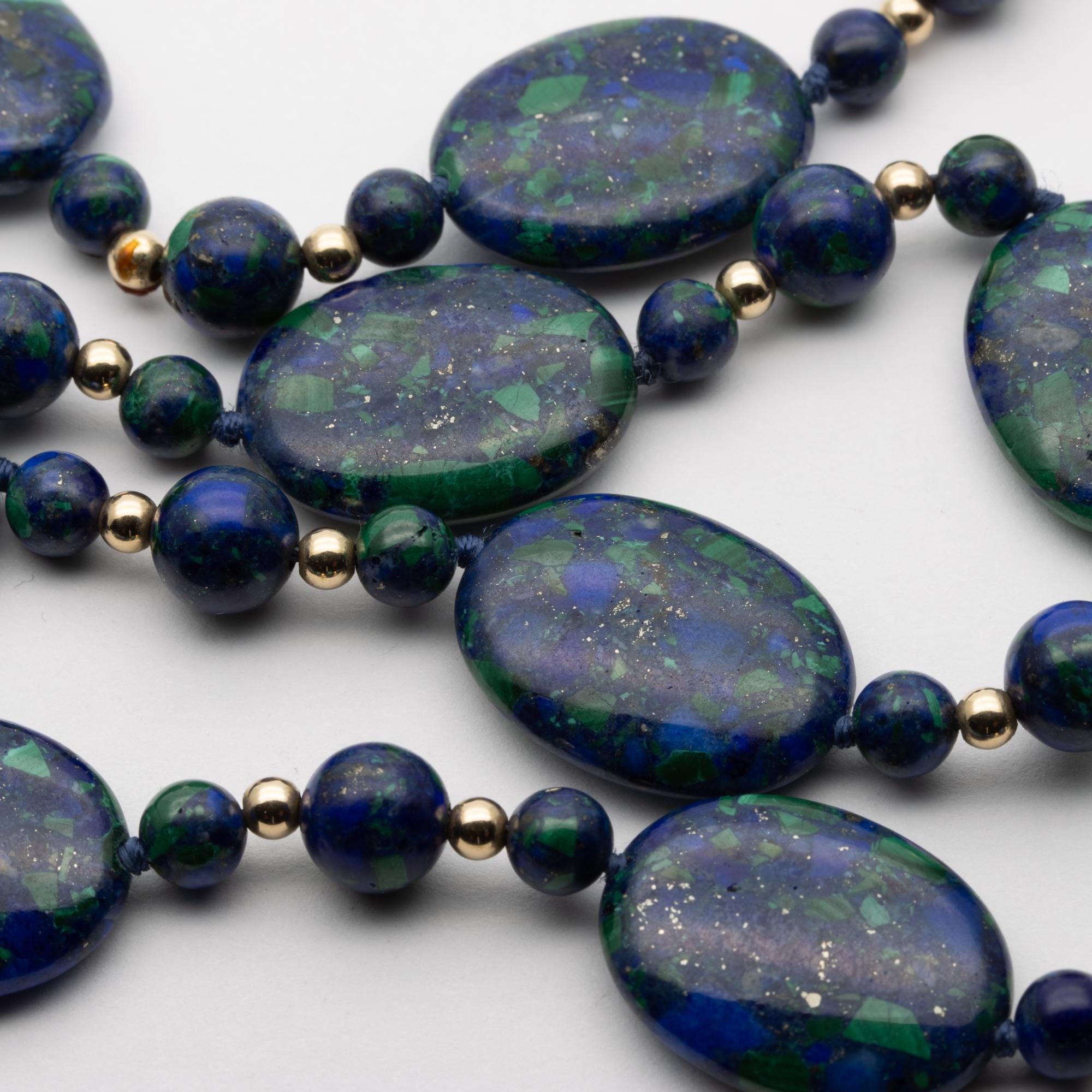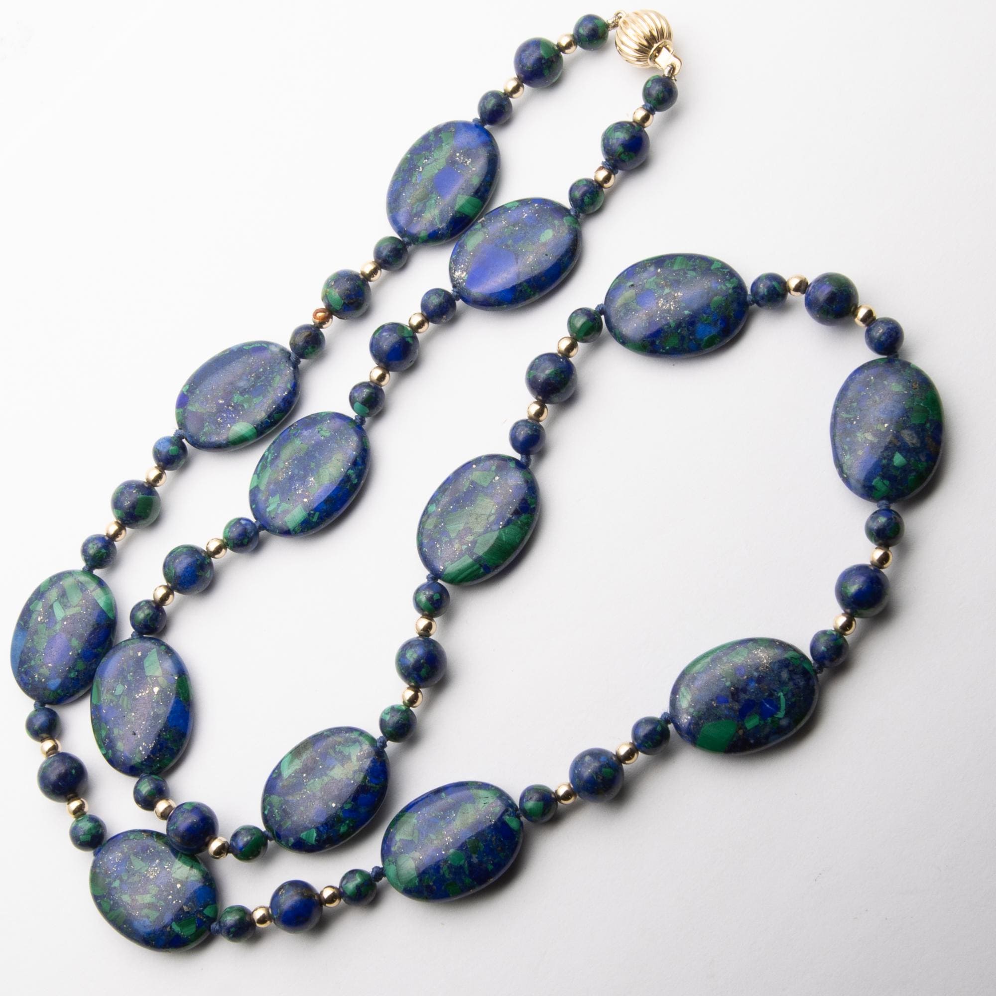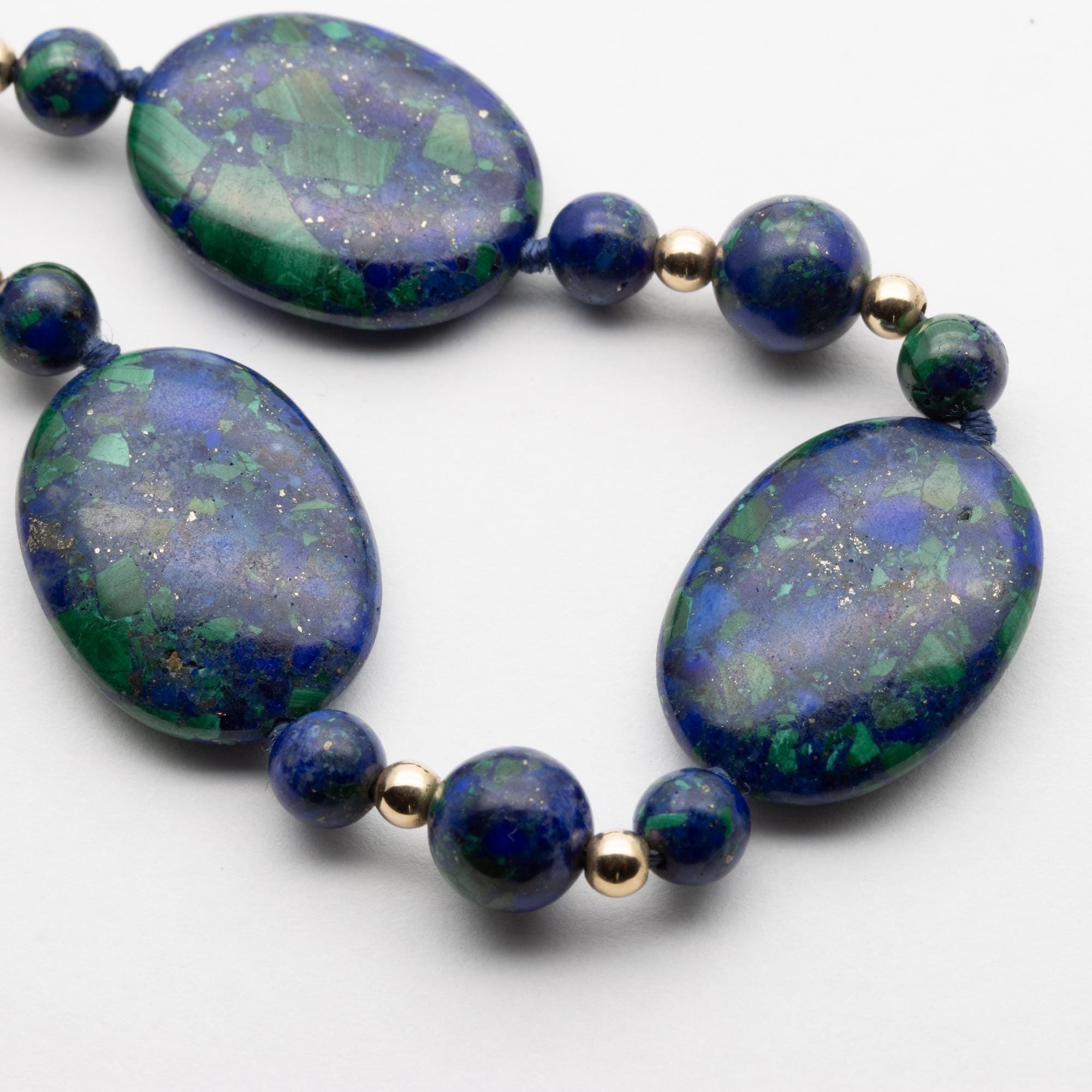 Gorgeous Vintage 14ct Yellow Gold Lapis Lazuli & Malachite Bead Necklace