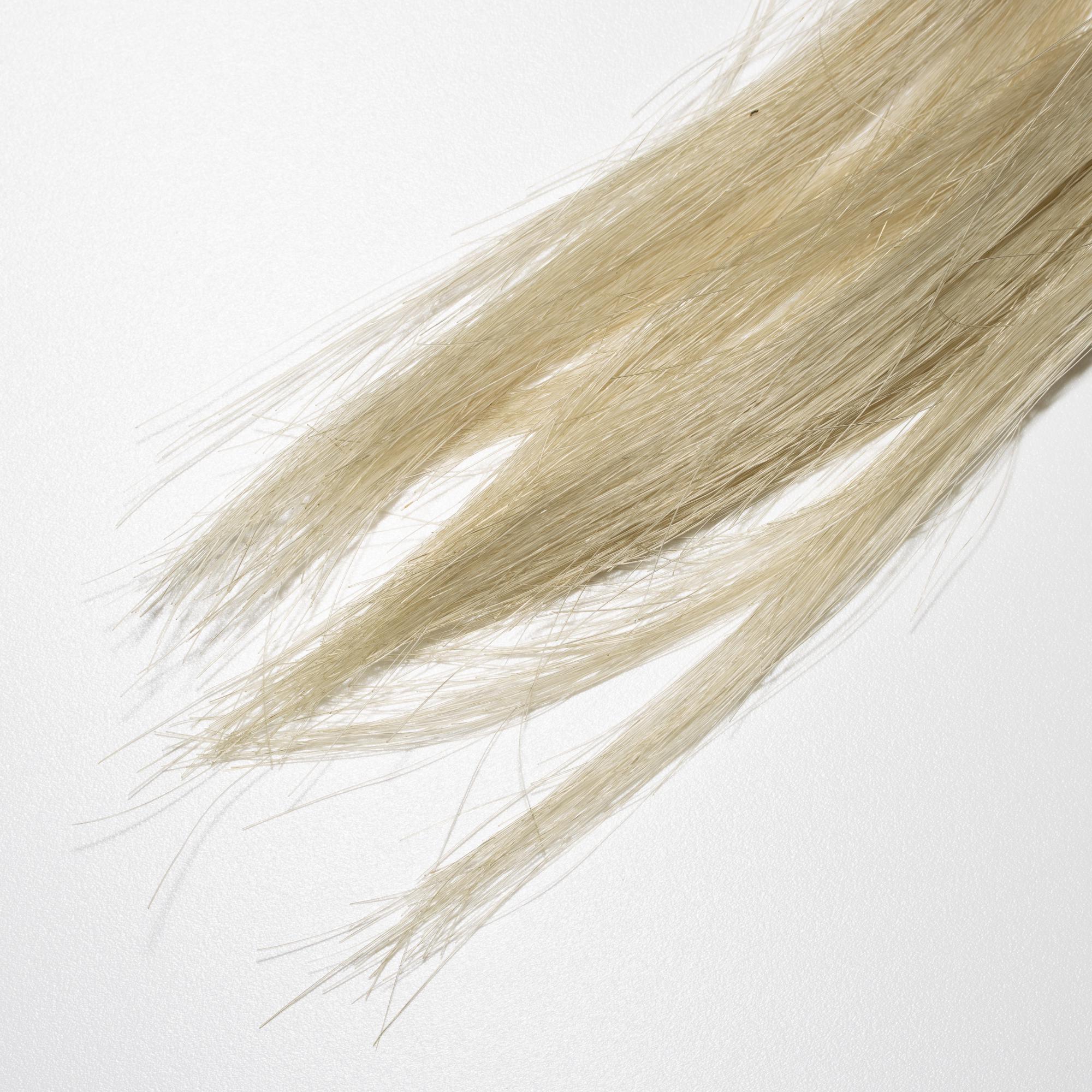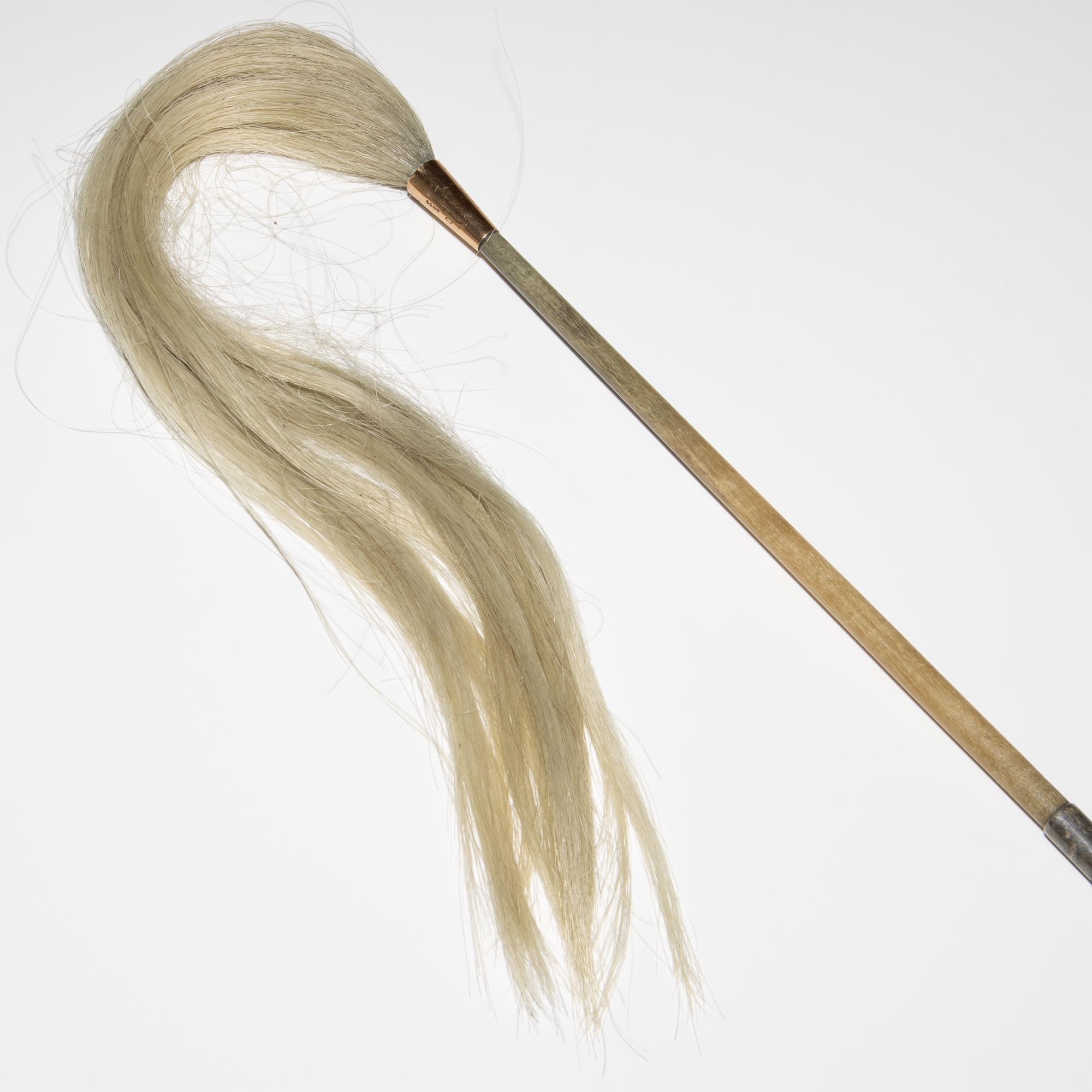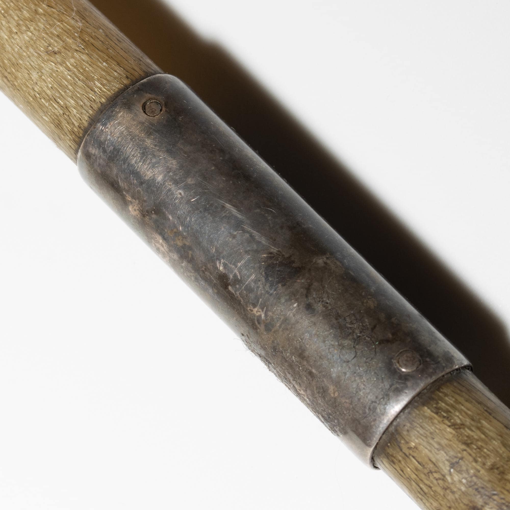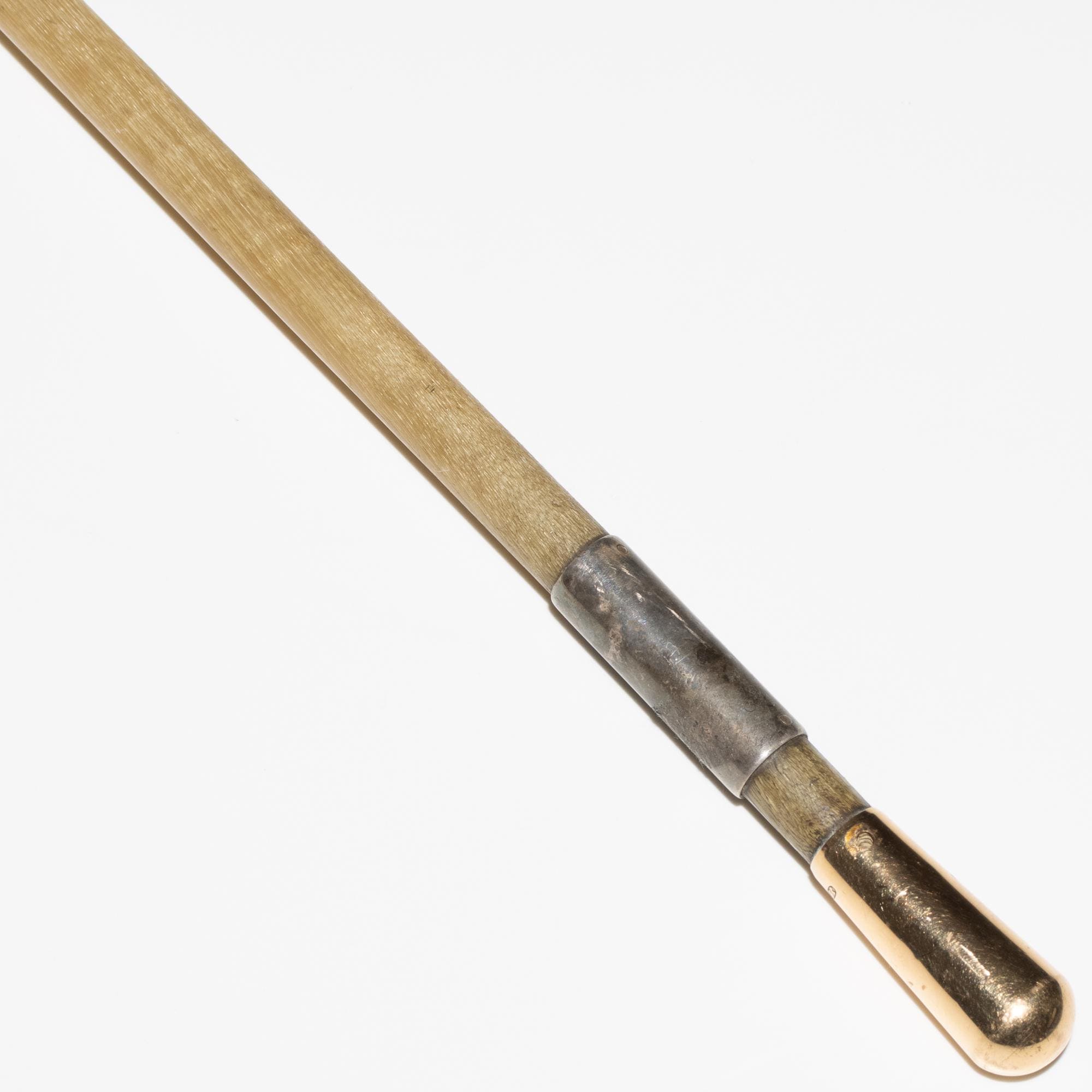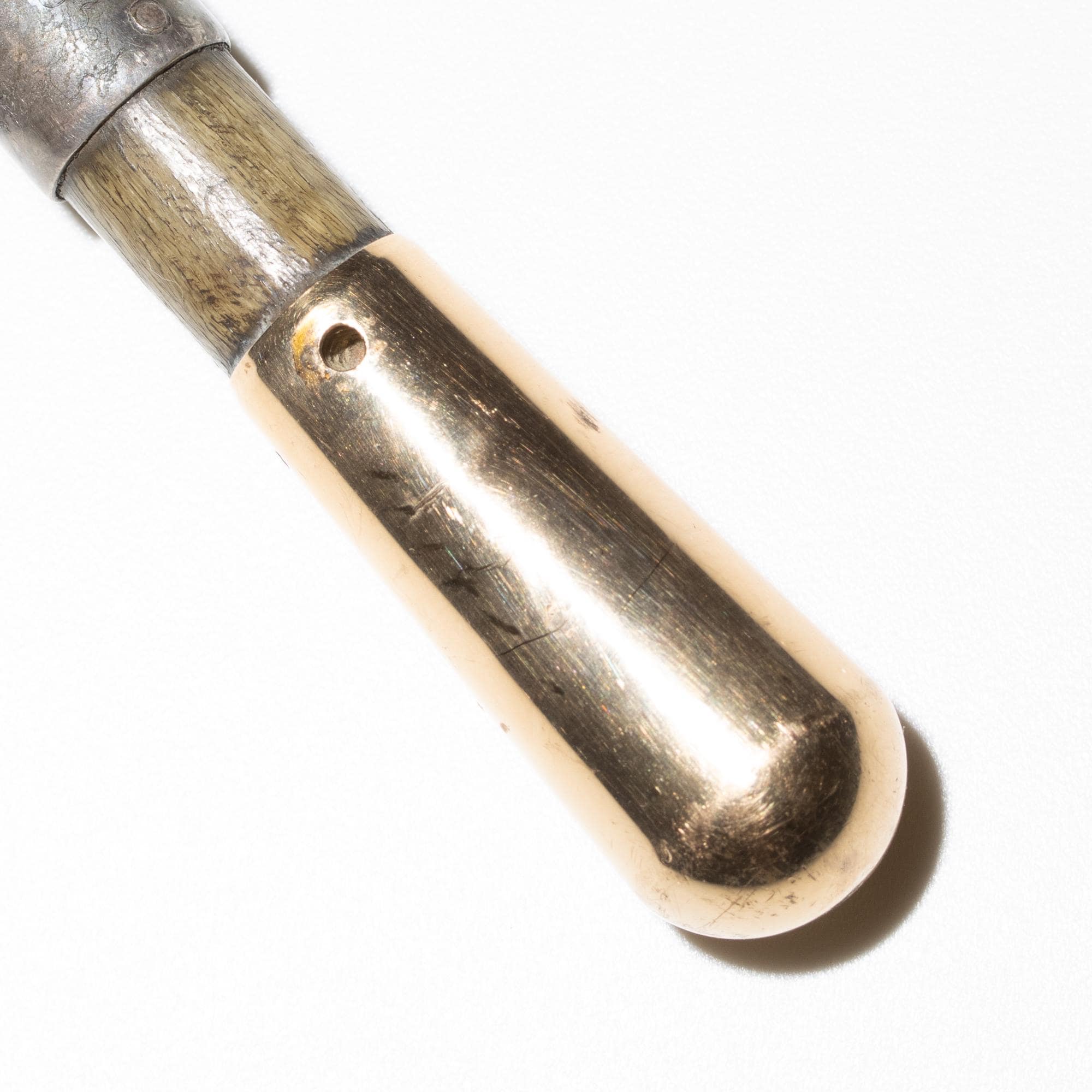 in good used condition. Handle is made of keratinous material, finials are hallmarked 15ct rose gold, possibly horse hair.