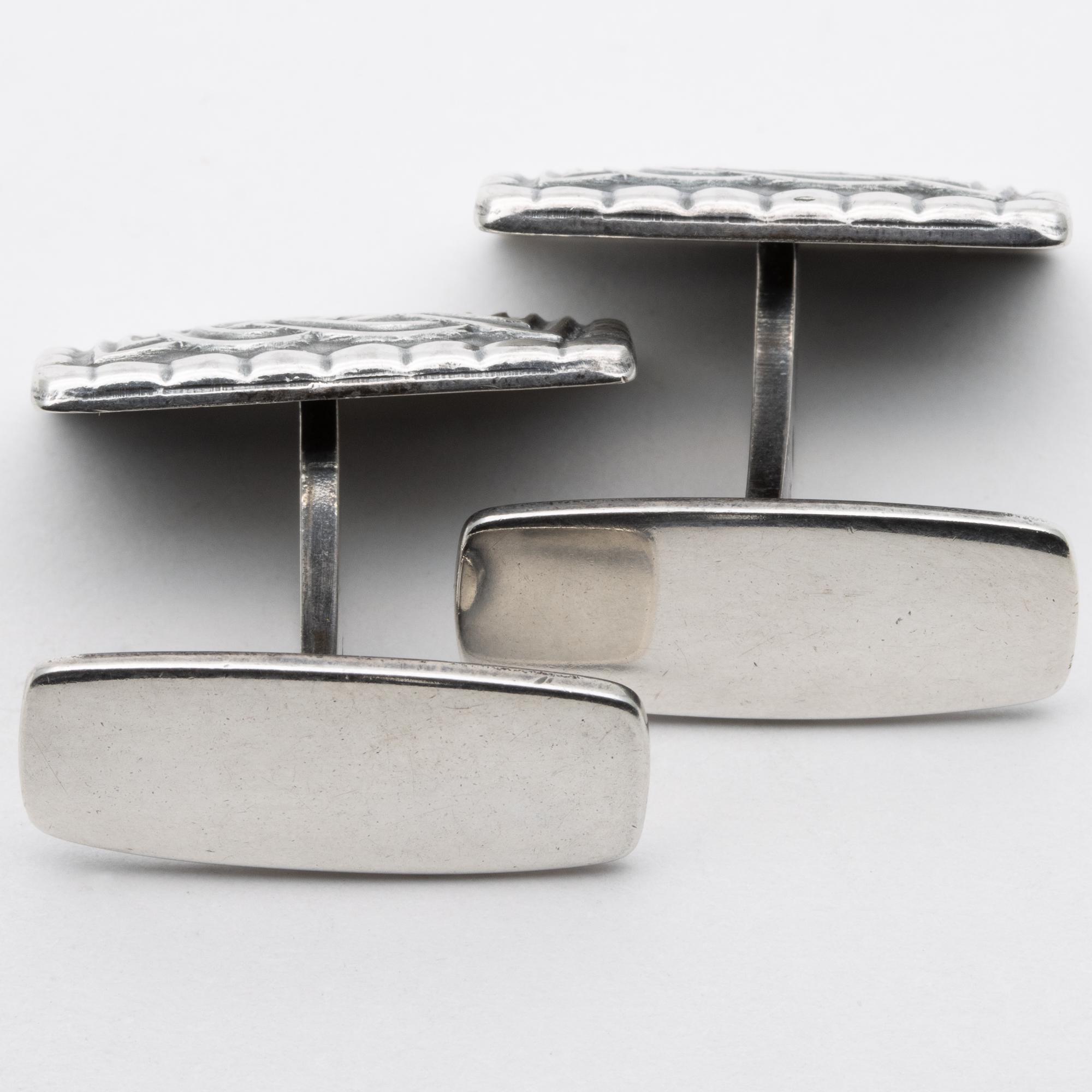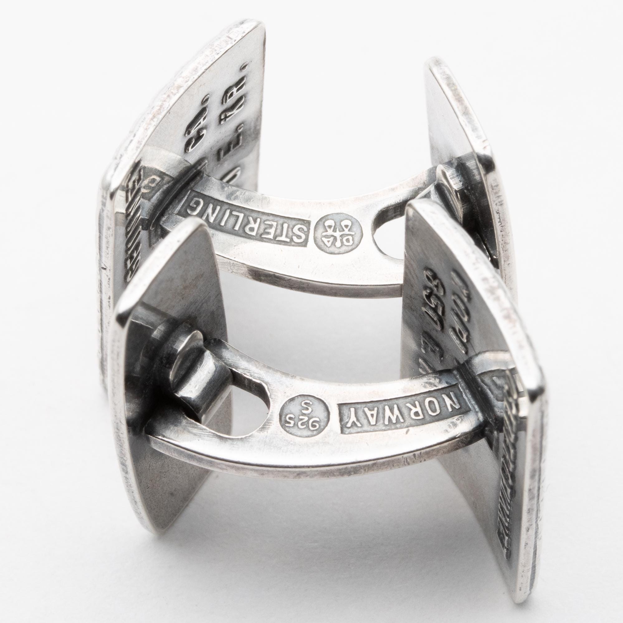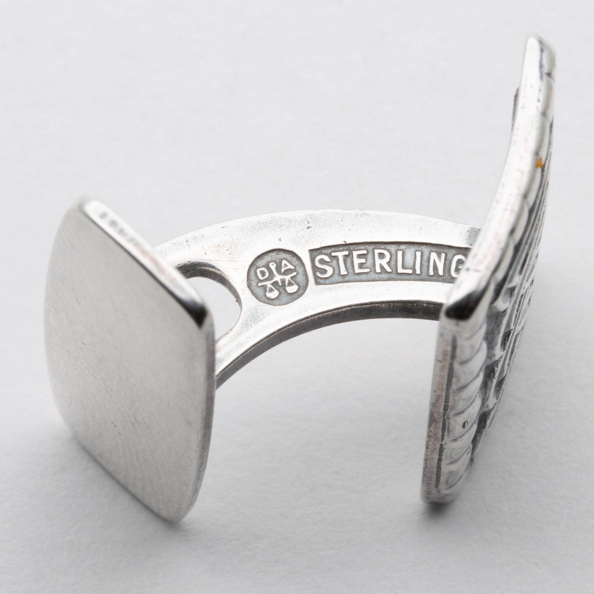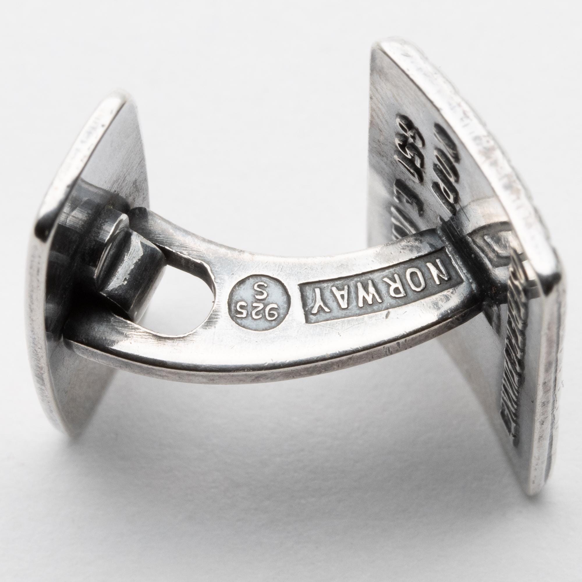 in good used condition. Nice quality cufflinks by Norwegian master Silversmith Dabid Andersen. Marked Osebergfunnet and stamped DA
