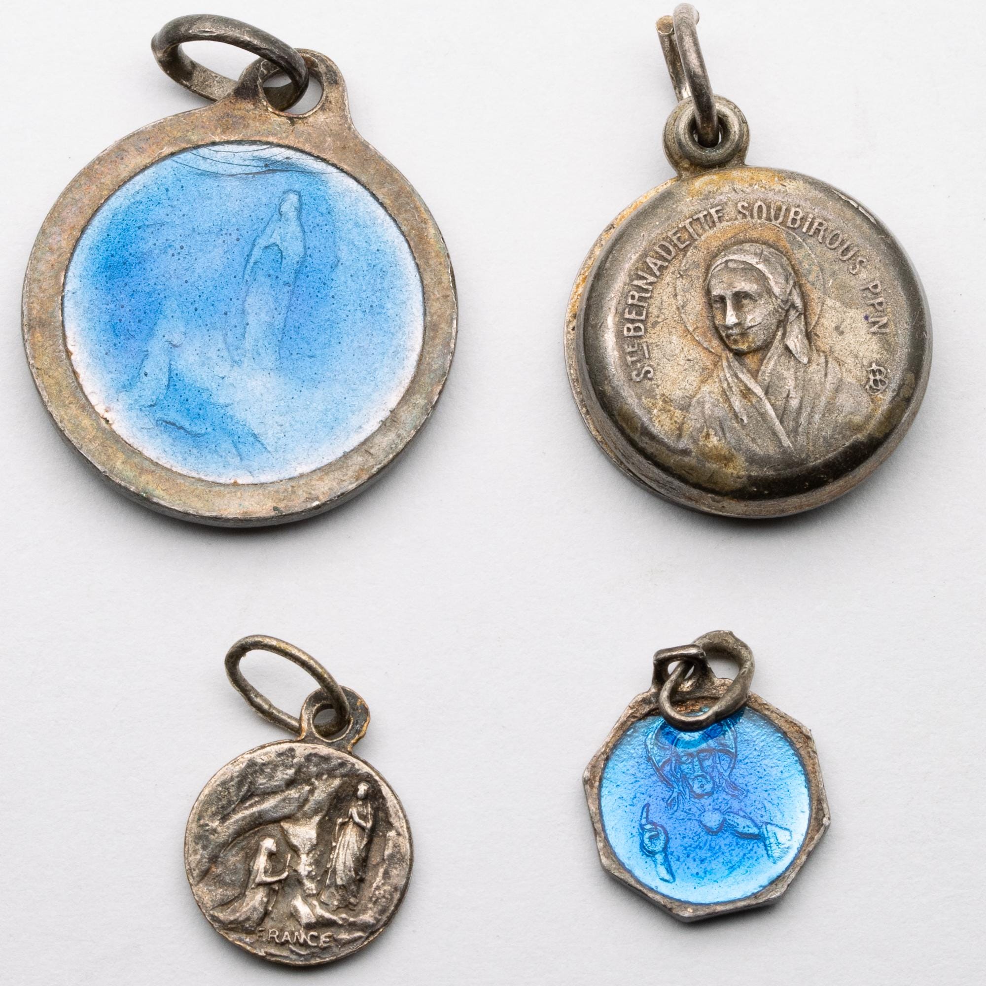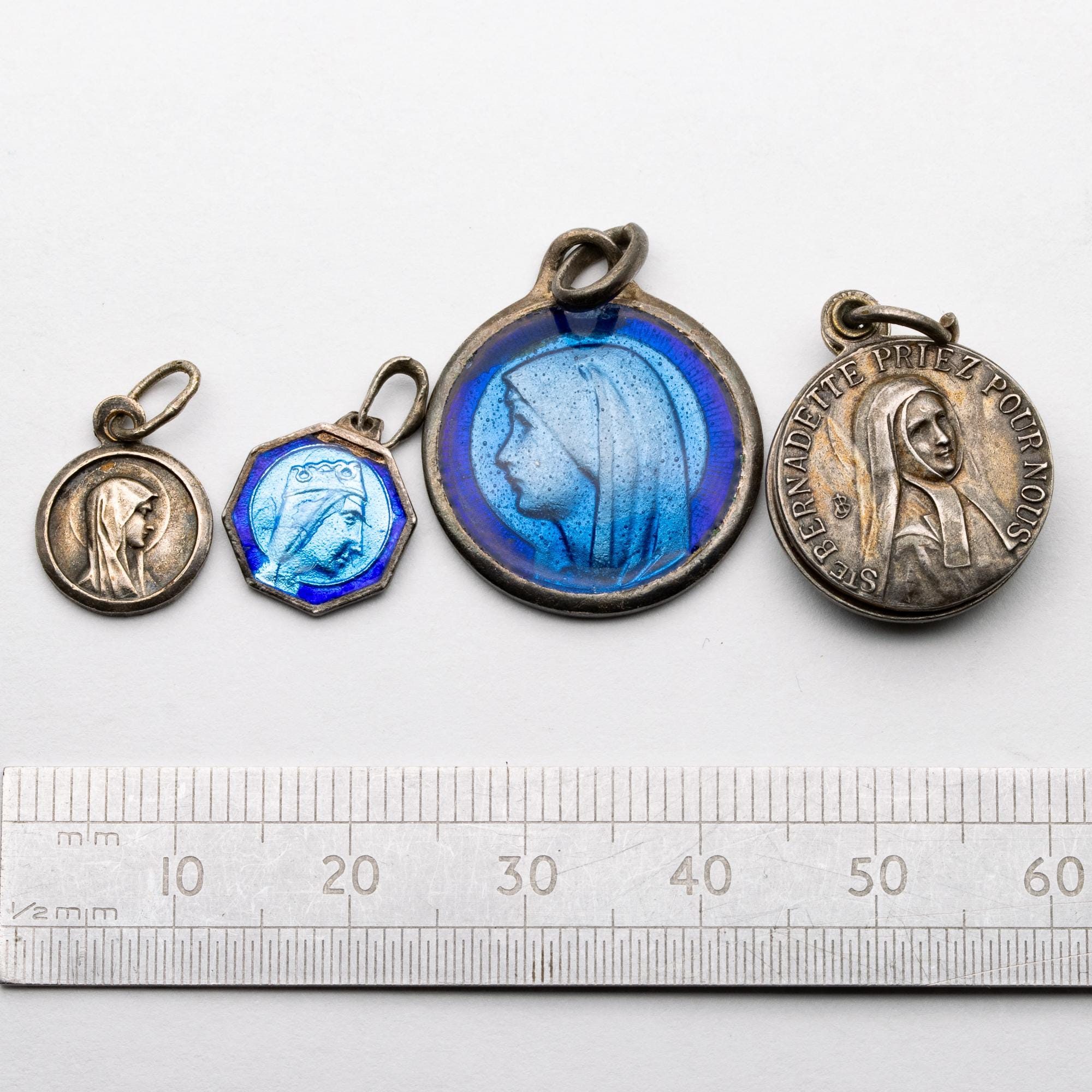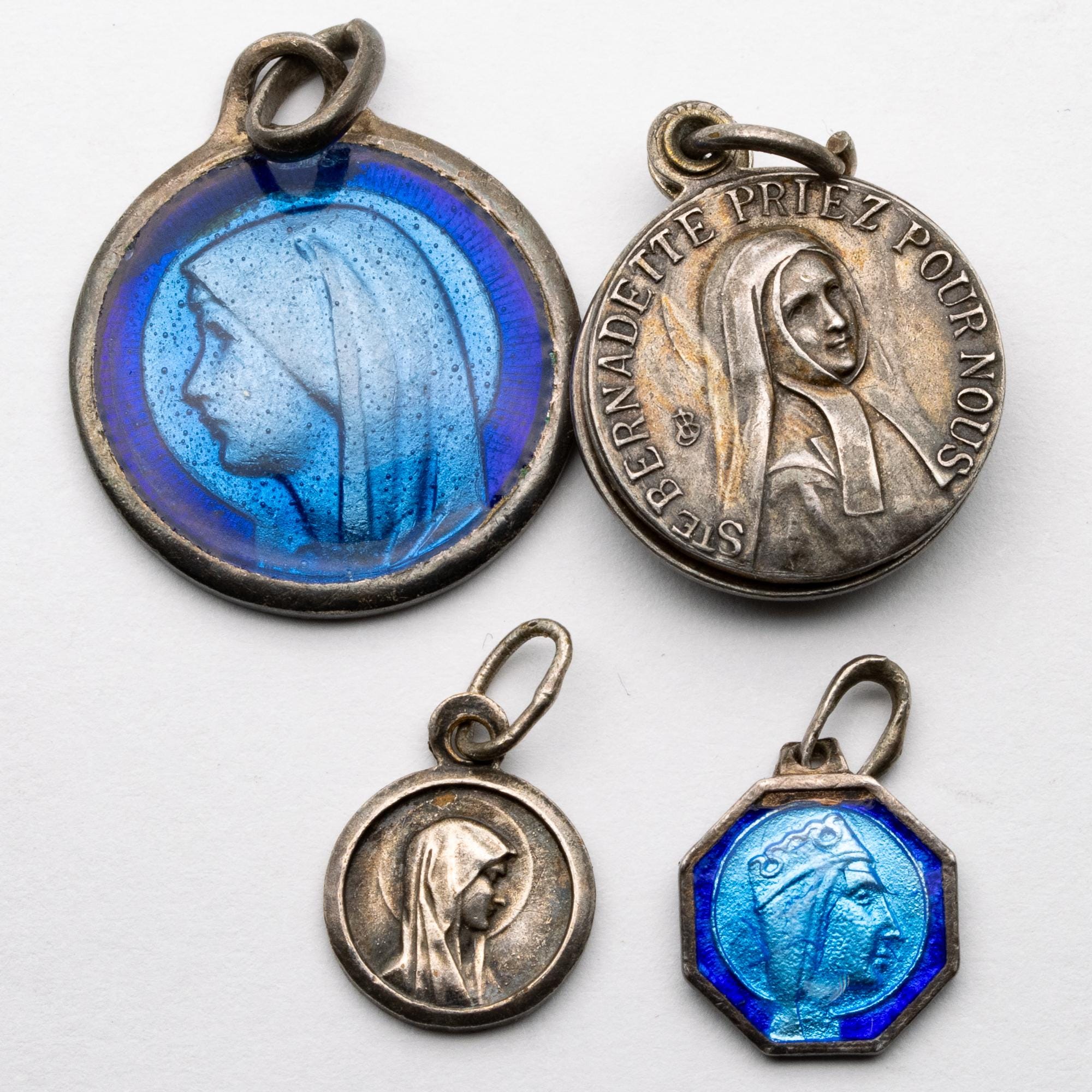 Pretty Collection of Silver Enamelled St Bernadette & Mary Madonna Pendants Tokens