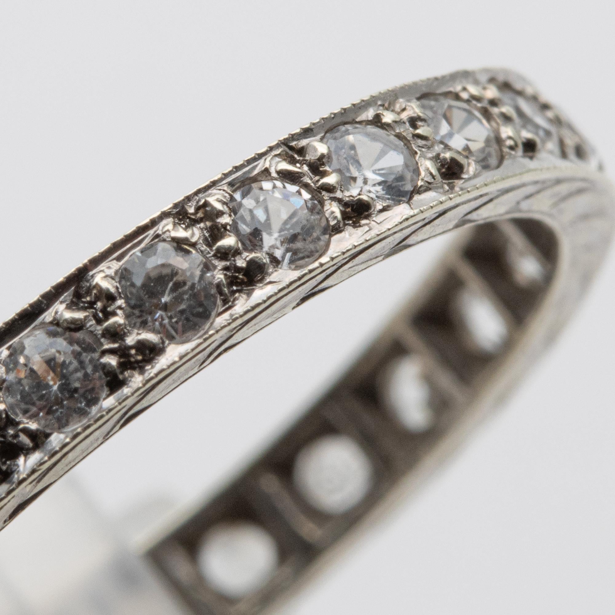 Pretty Vintage C1960s 9ct White Gold Spinel Full Eternity Ring – Size R
