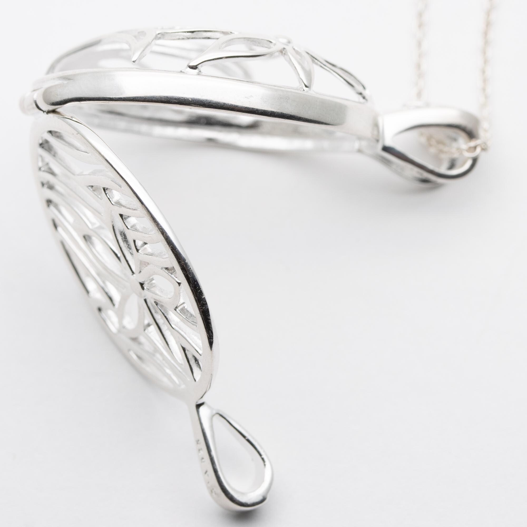 Pretty Vintage Sterling Silver QVC Cut Out Opening Cage Pendant Necklace