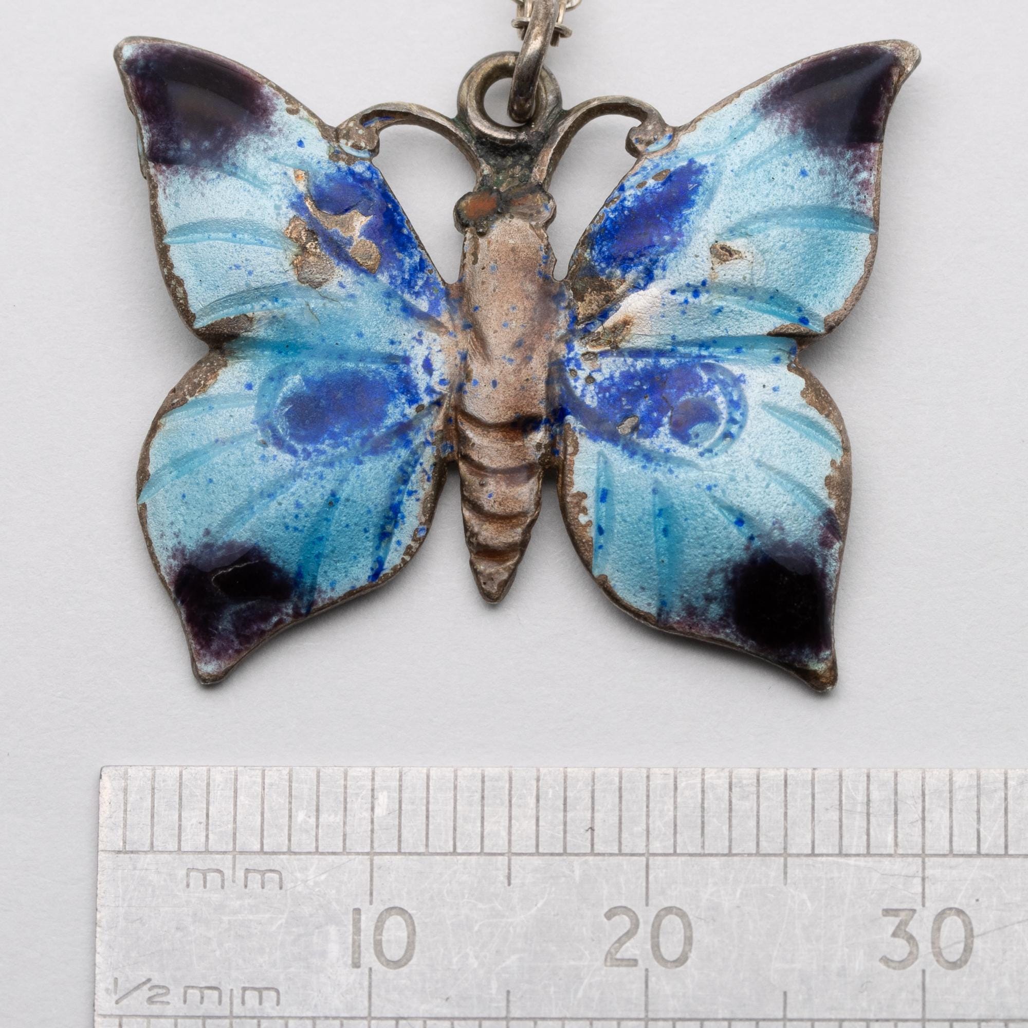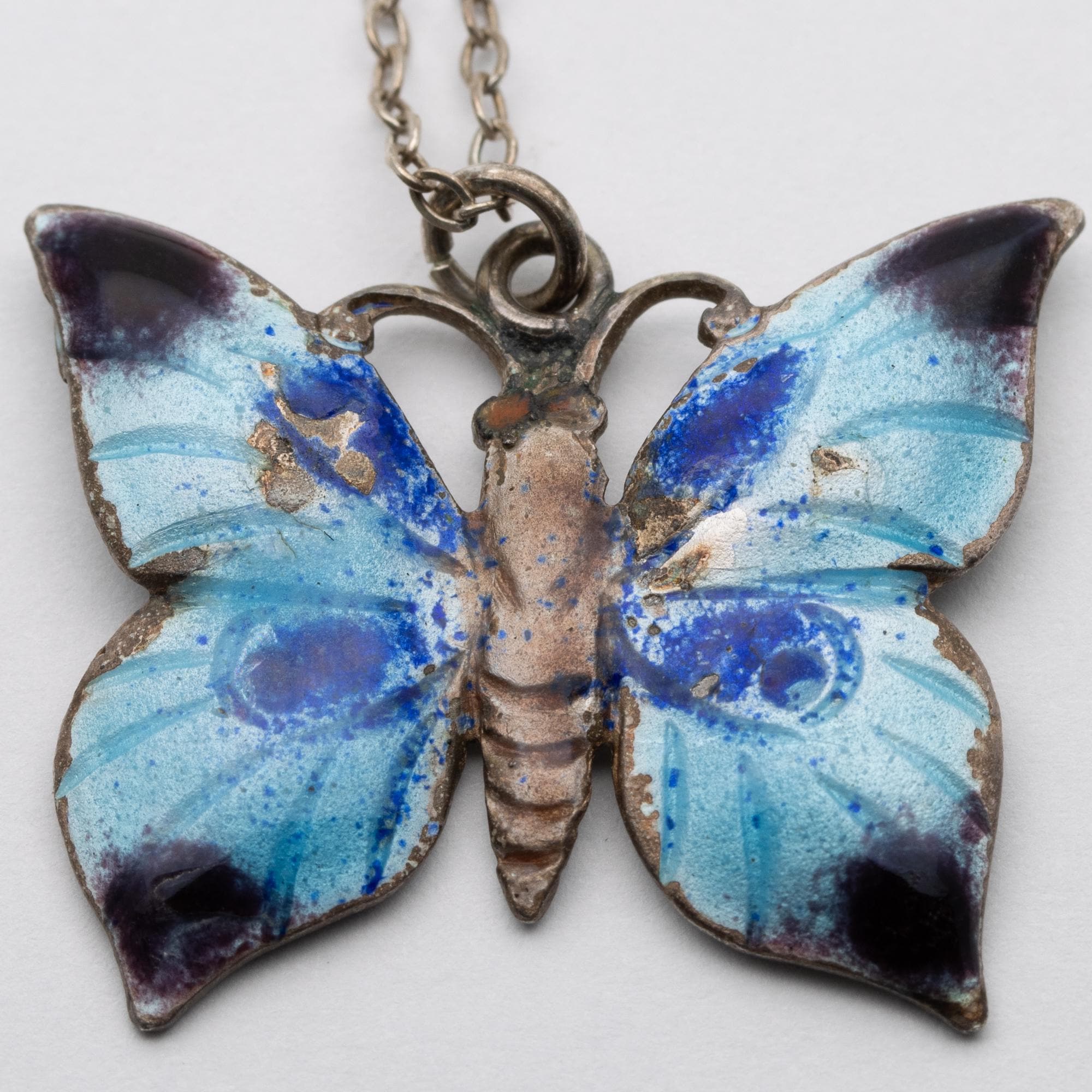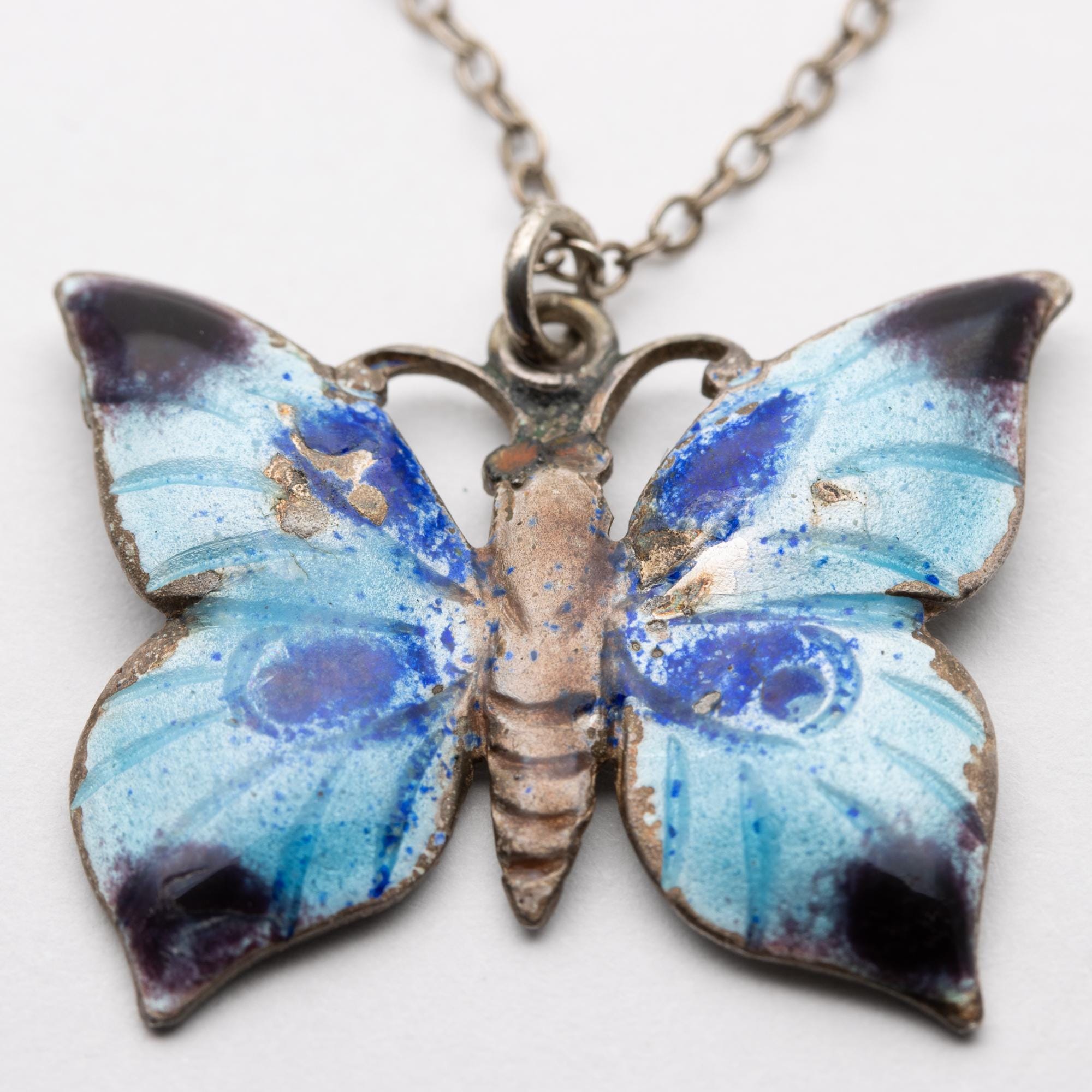 Sweet Vintage Sterling Silver Enamel Butterfly Pendant Necklace