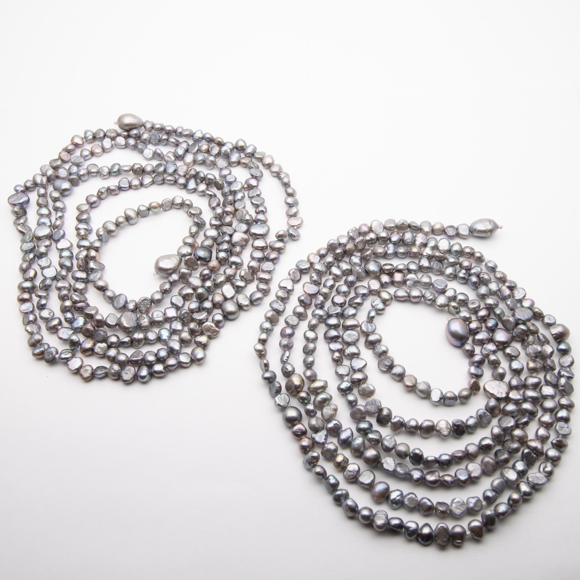 Pretty Double Strand Black Freshwater Cultured Pearl Tassel Opera Necklace