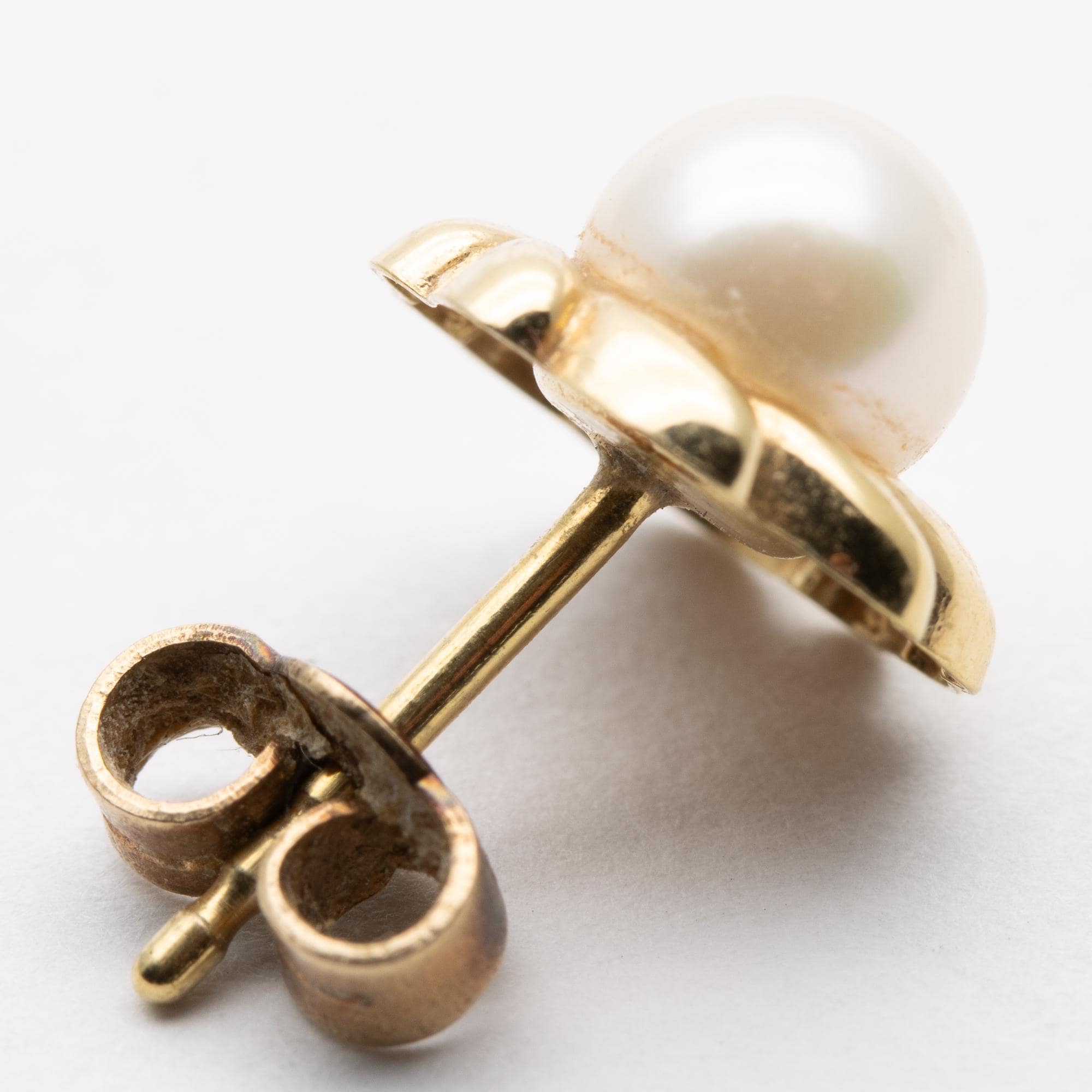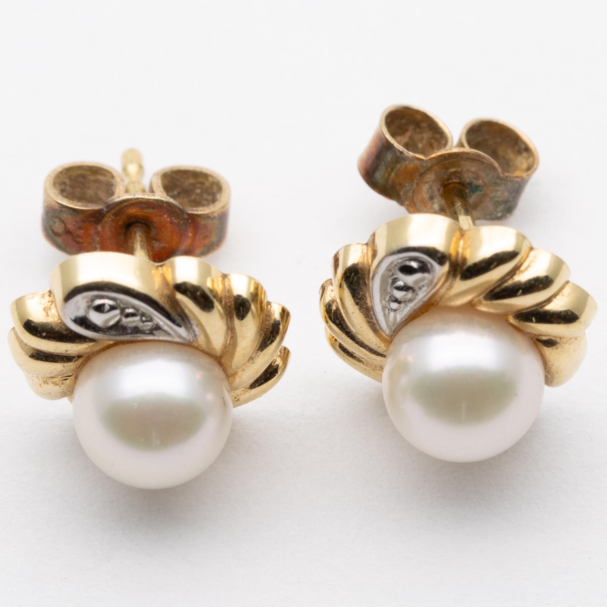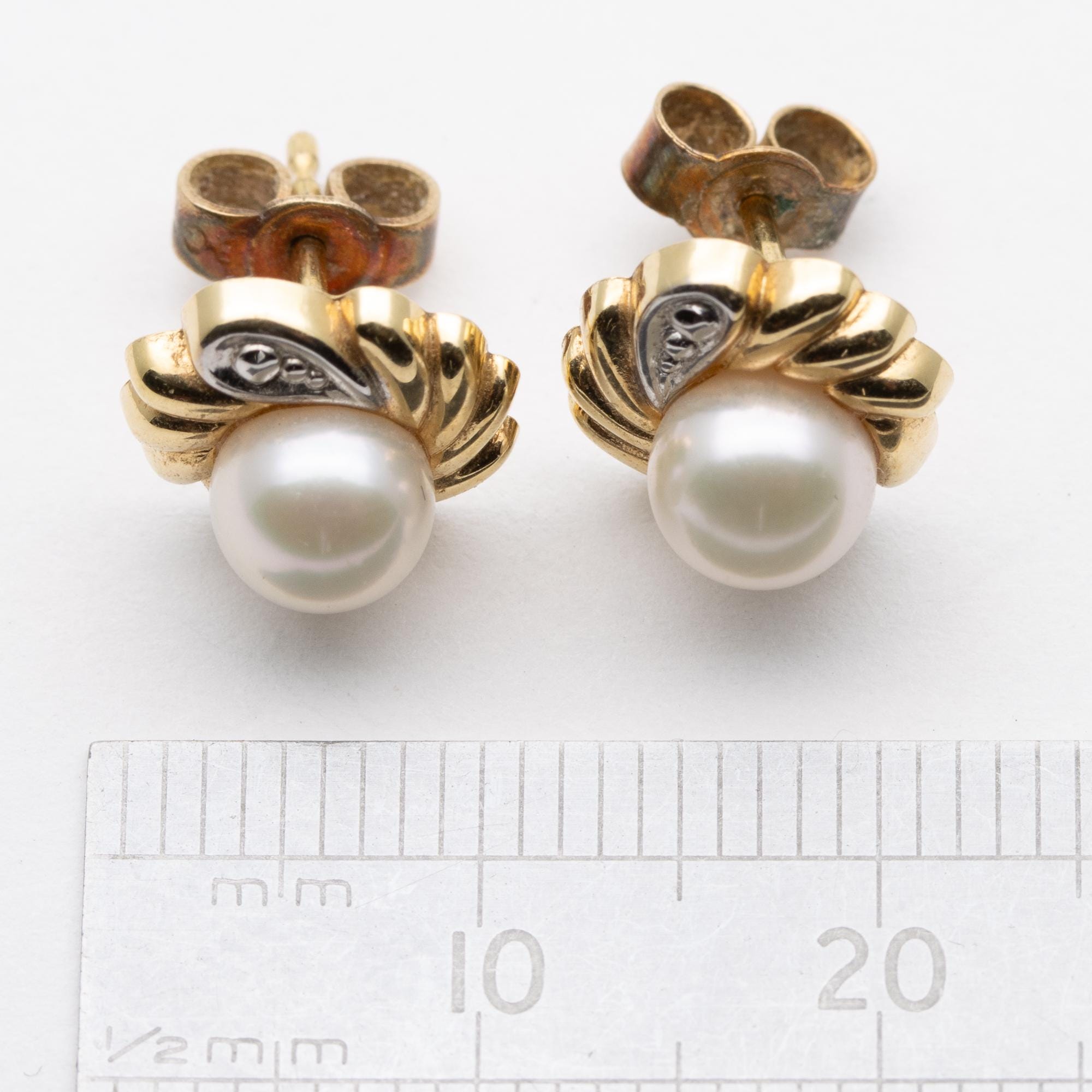 Pretty Vintage 9ct Yellow Gold Cultured Pearl Stud Earrings
